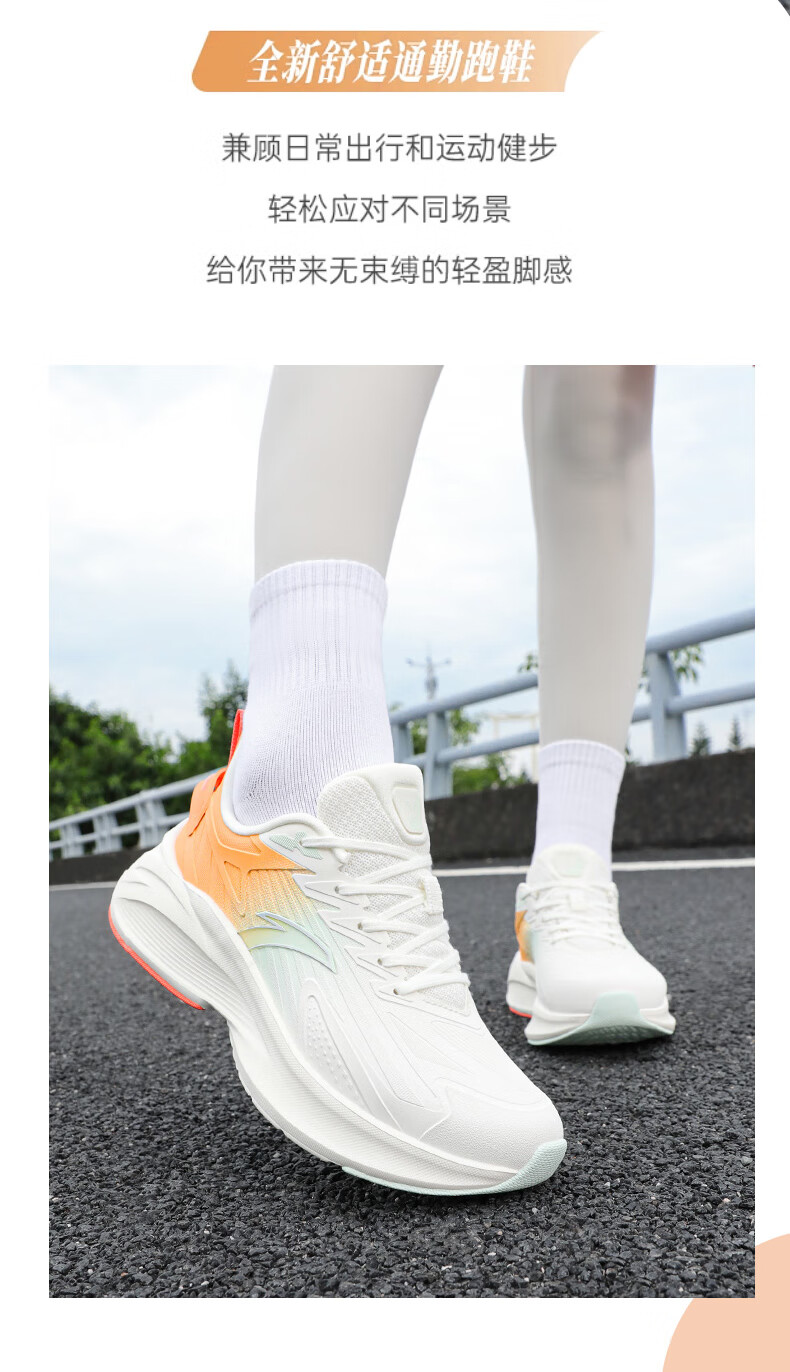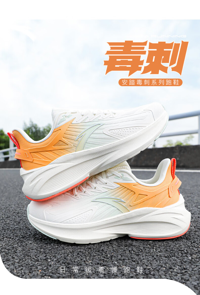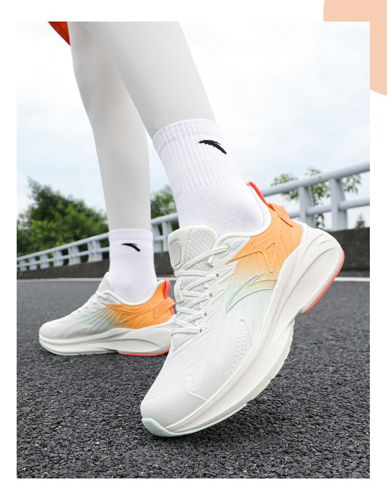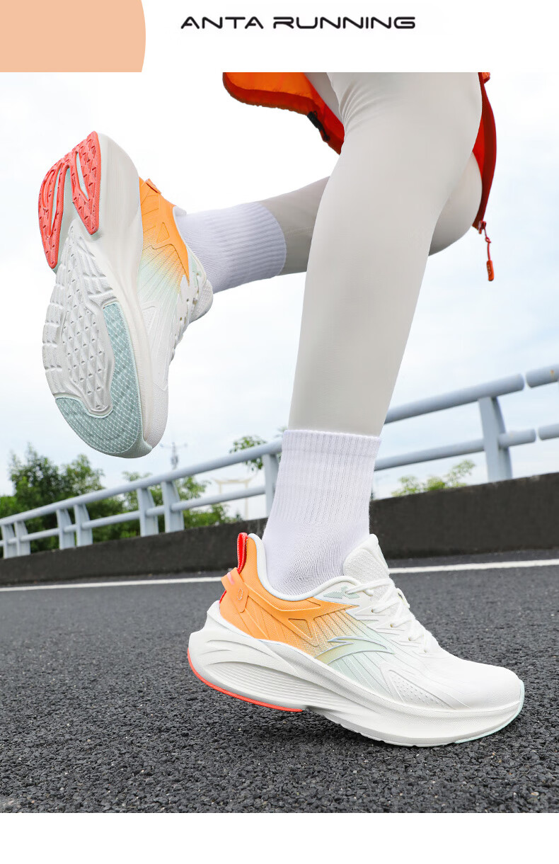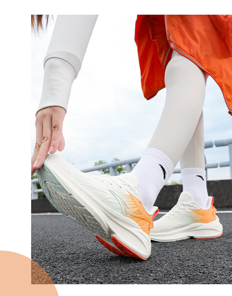 ANTA Stinger 5丨Women's Shoes Sports Shoes Women's Autumn and Winter New Leather Water-Repellent Shock-absorbing Running Shoes Warm Running Shoes Ivory White/Peach Orange 38