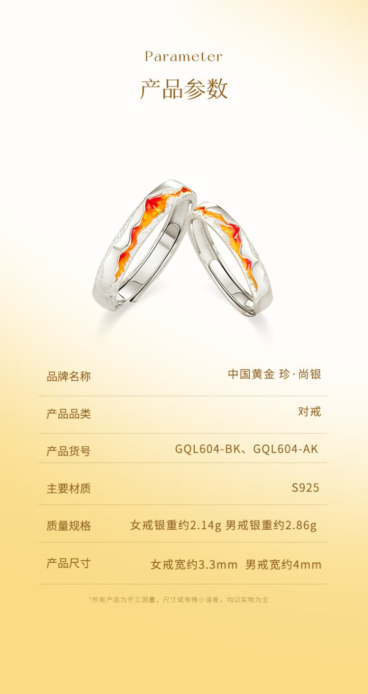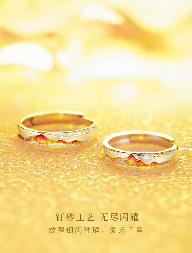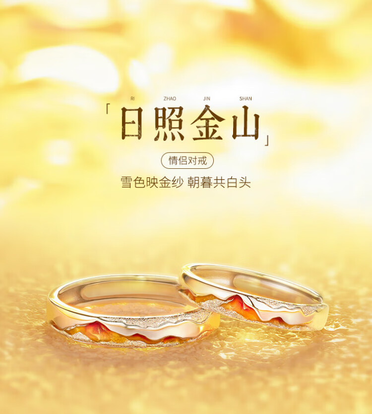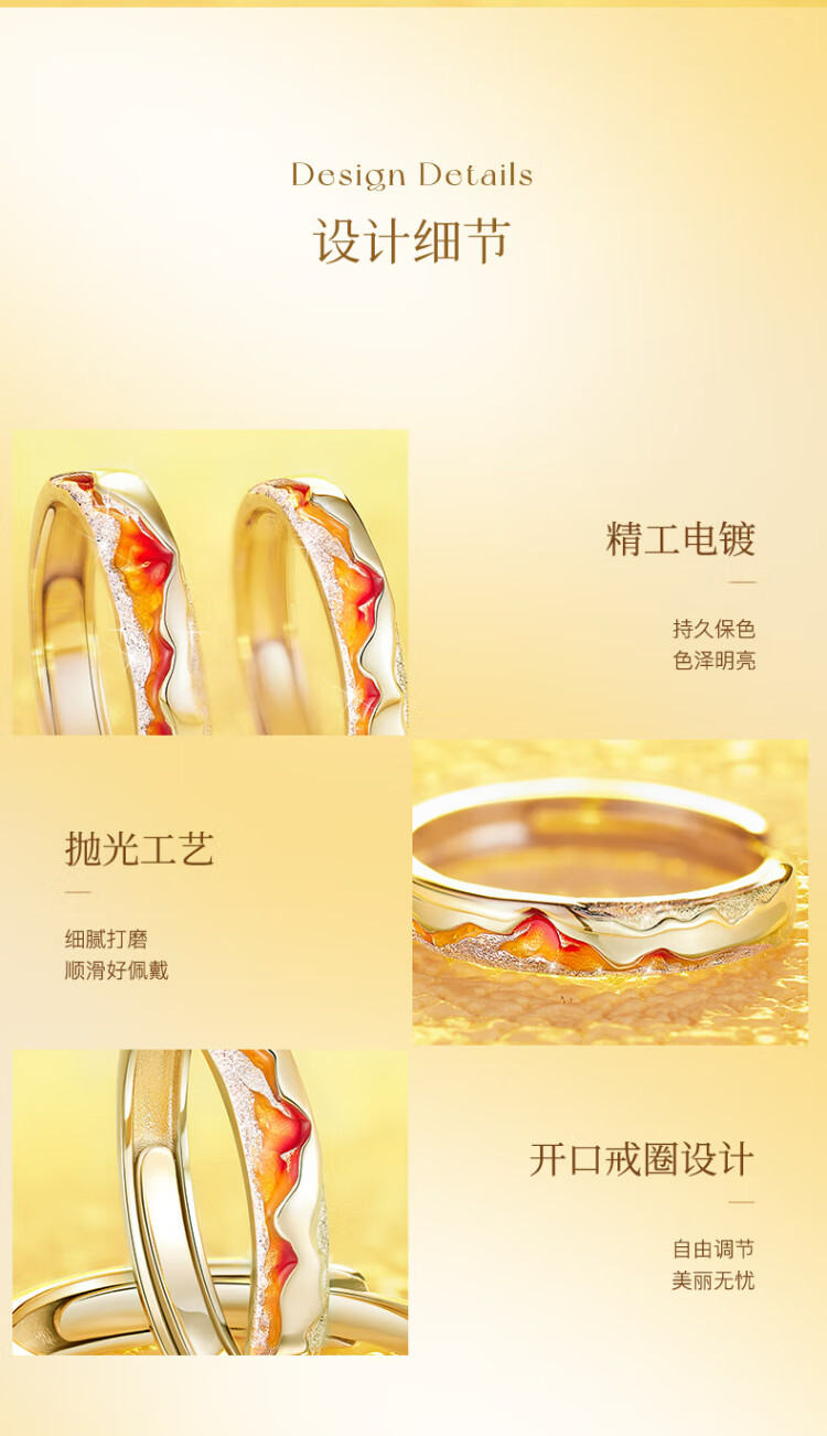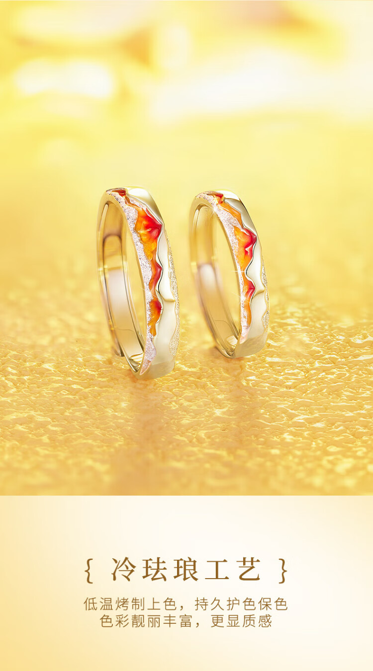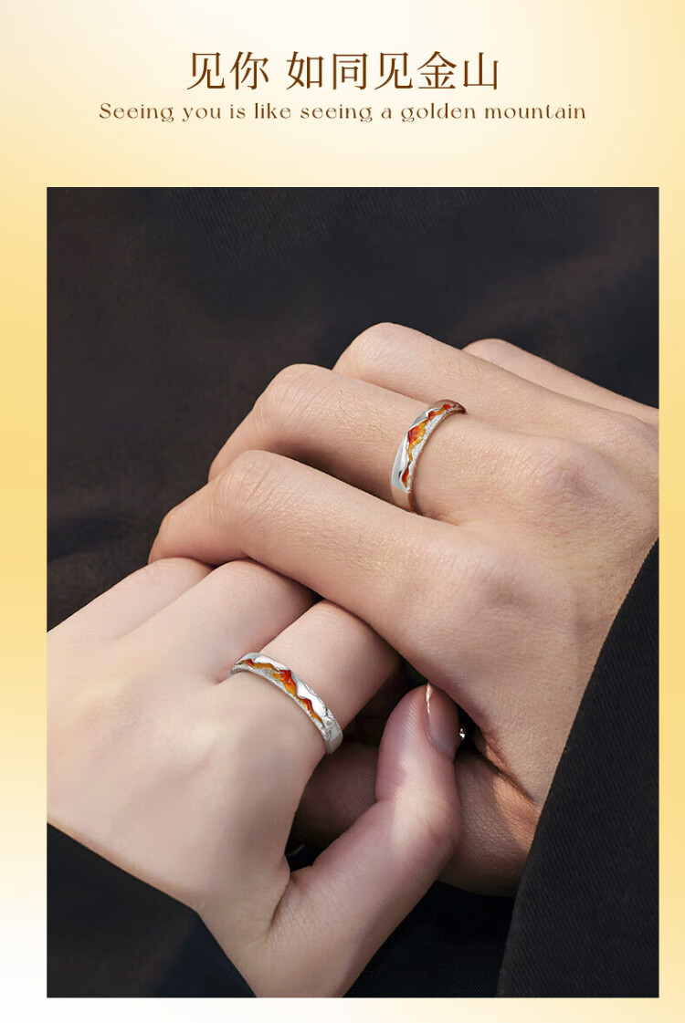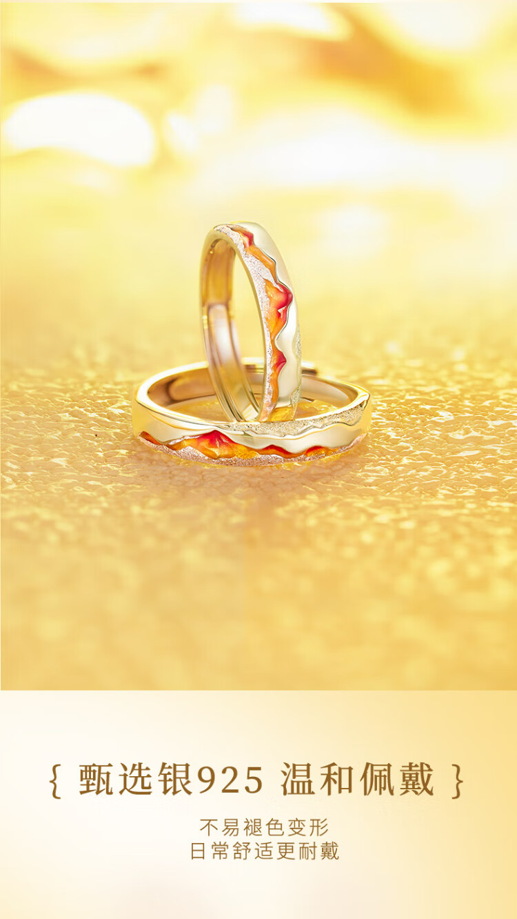 China Gold (CHINA GOLD) Rizhao Jinshan Ring Couple's Ring Sterling Silver Ring Couple's Niche Design Female Birthday Gift for Girlfriend Rizhao Jinshan S925 Pair of Ring Free Chinese Gold Gift Box