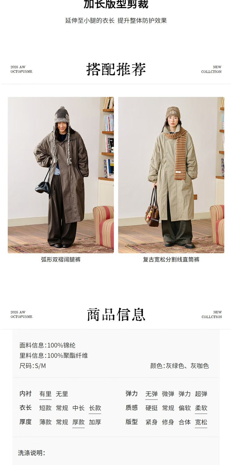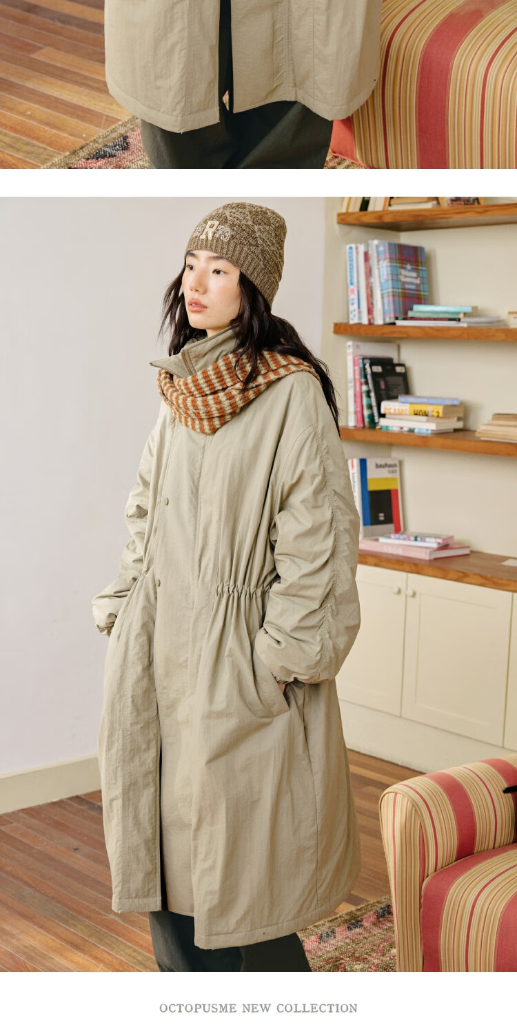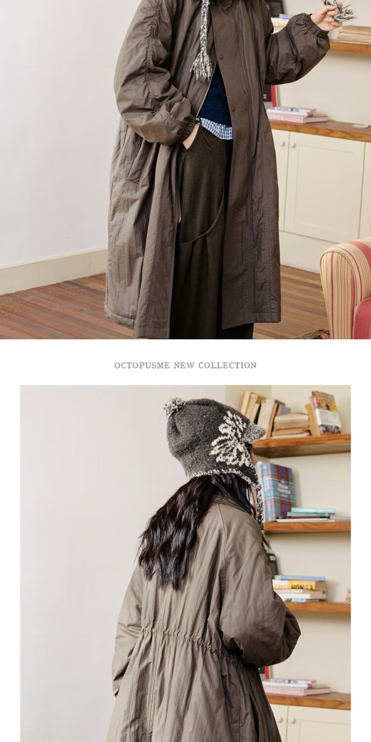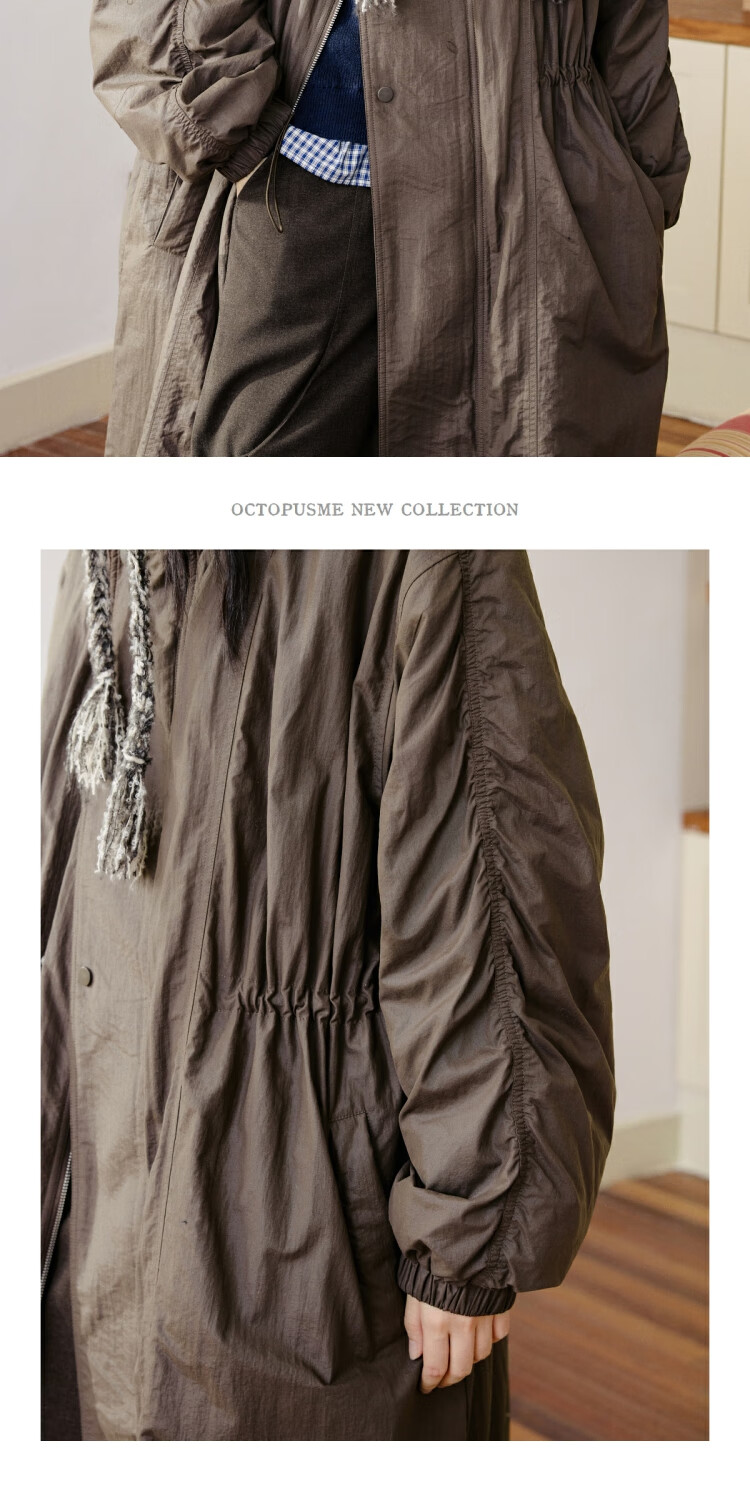 OCTOPUSME Octopus Home 10/31 New at 20:00, long windbreaker style cotton coat for women, gray coffee color M