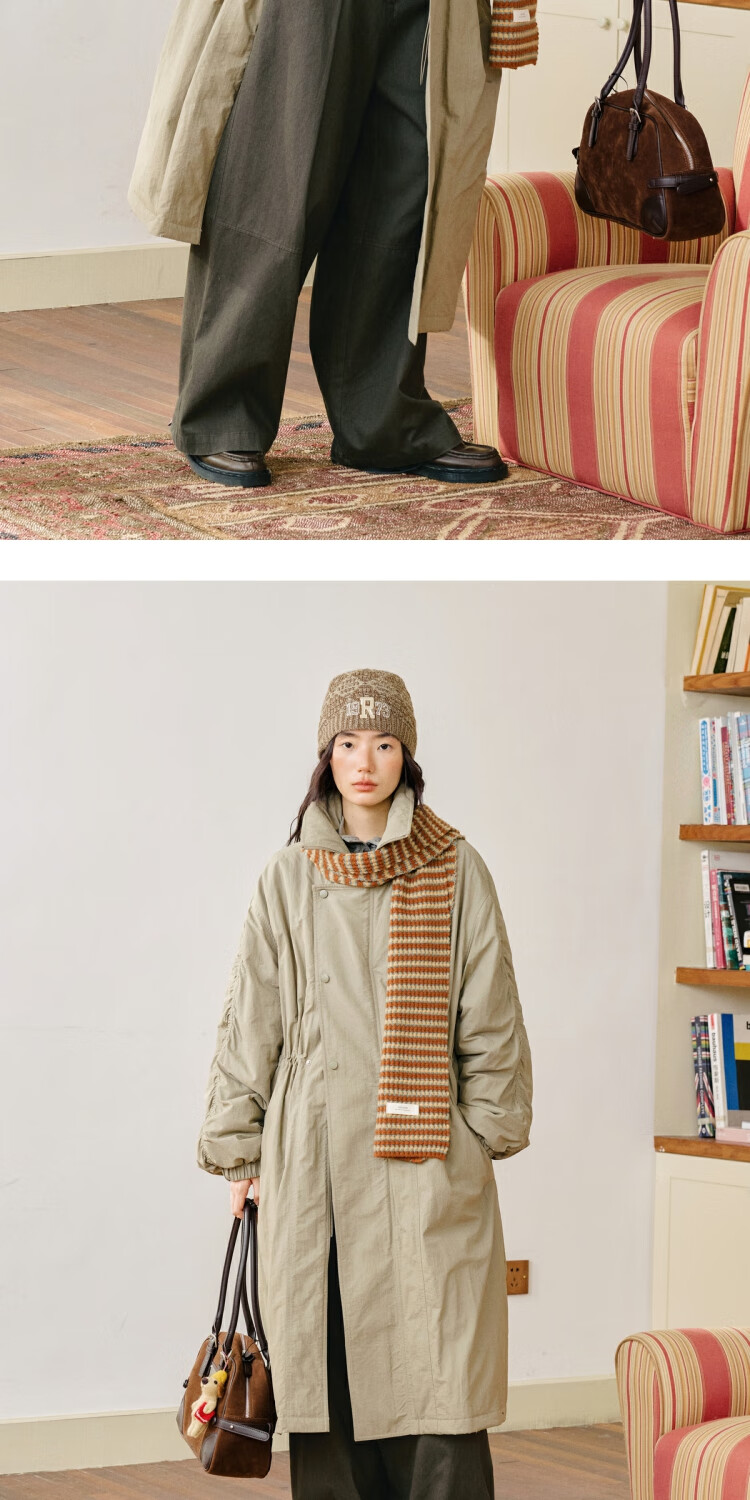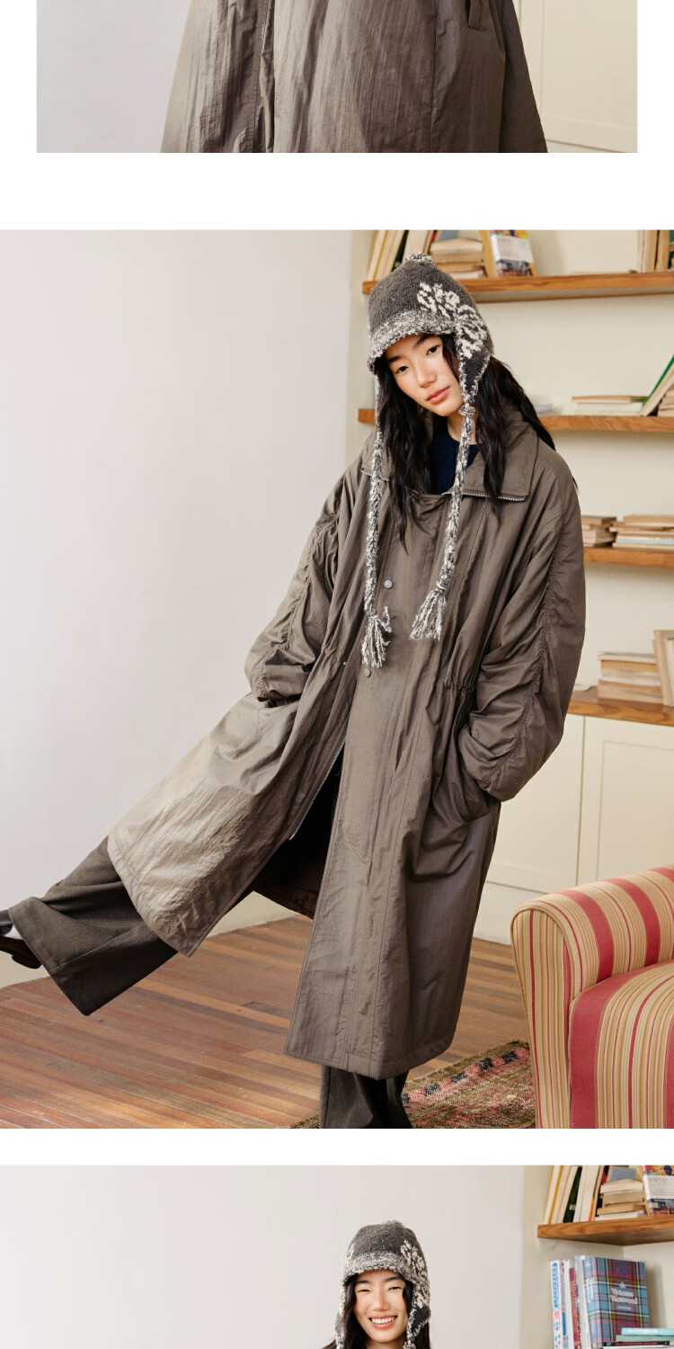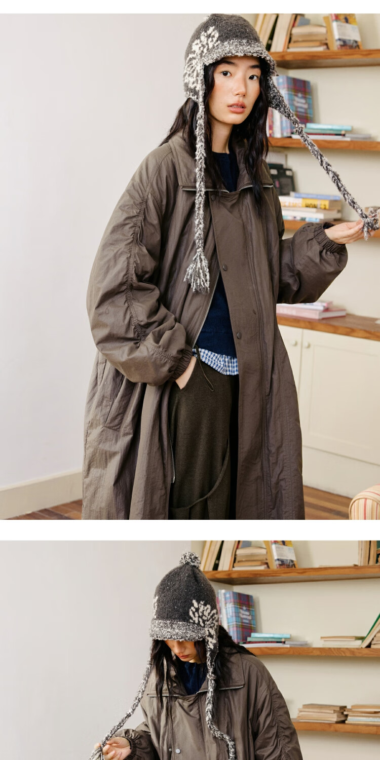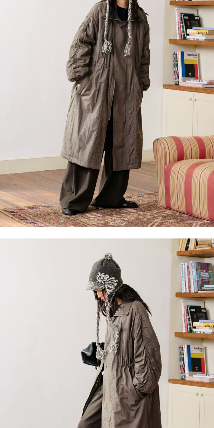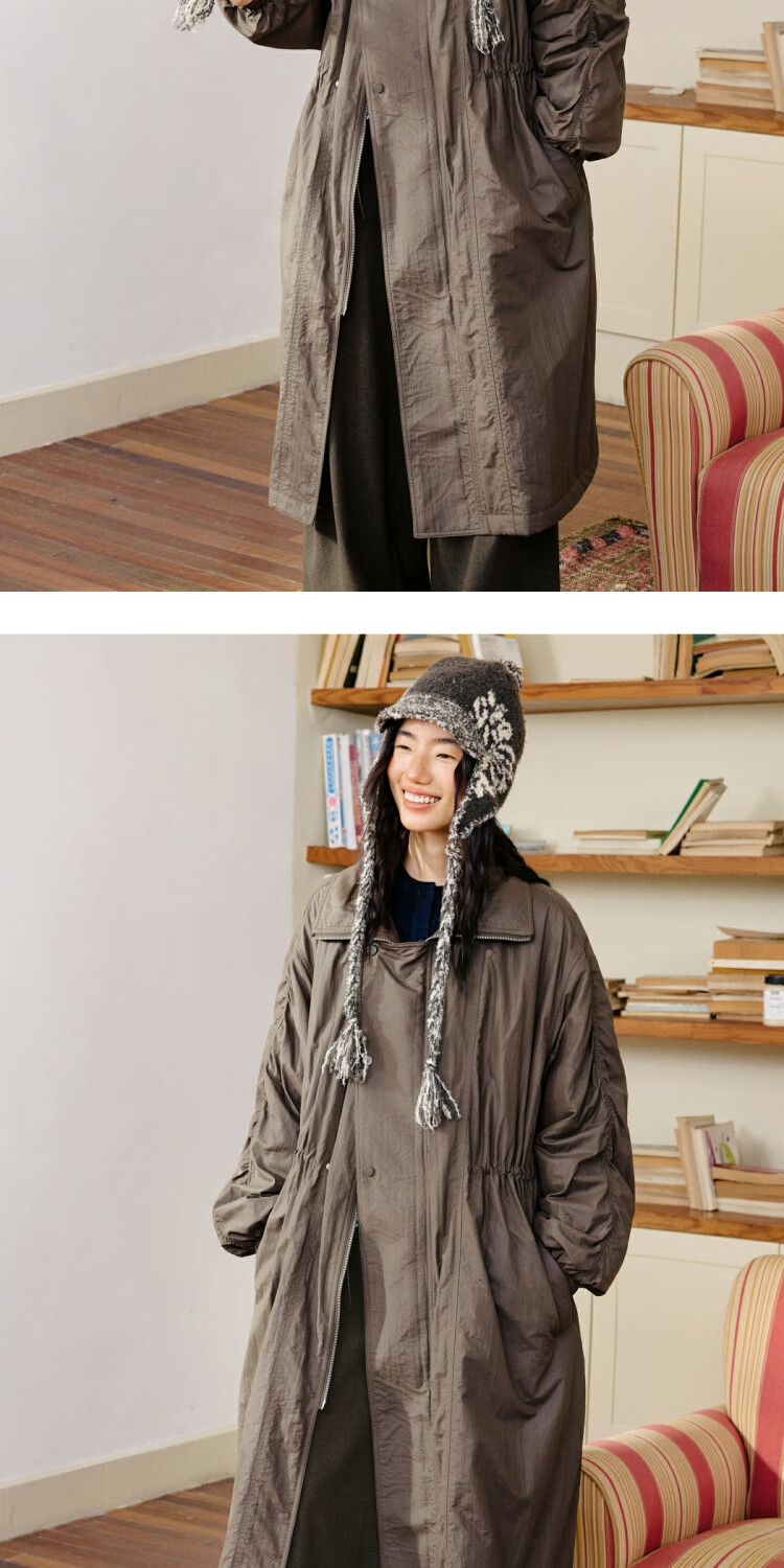 OCTOPUSME Octopus Home 10/31 New at 20:00, long windbreaker style cotton coat for women, gray coffee color M