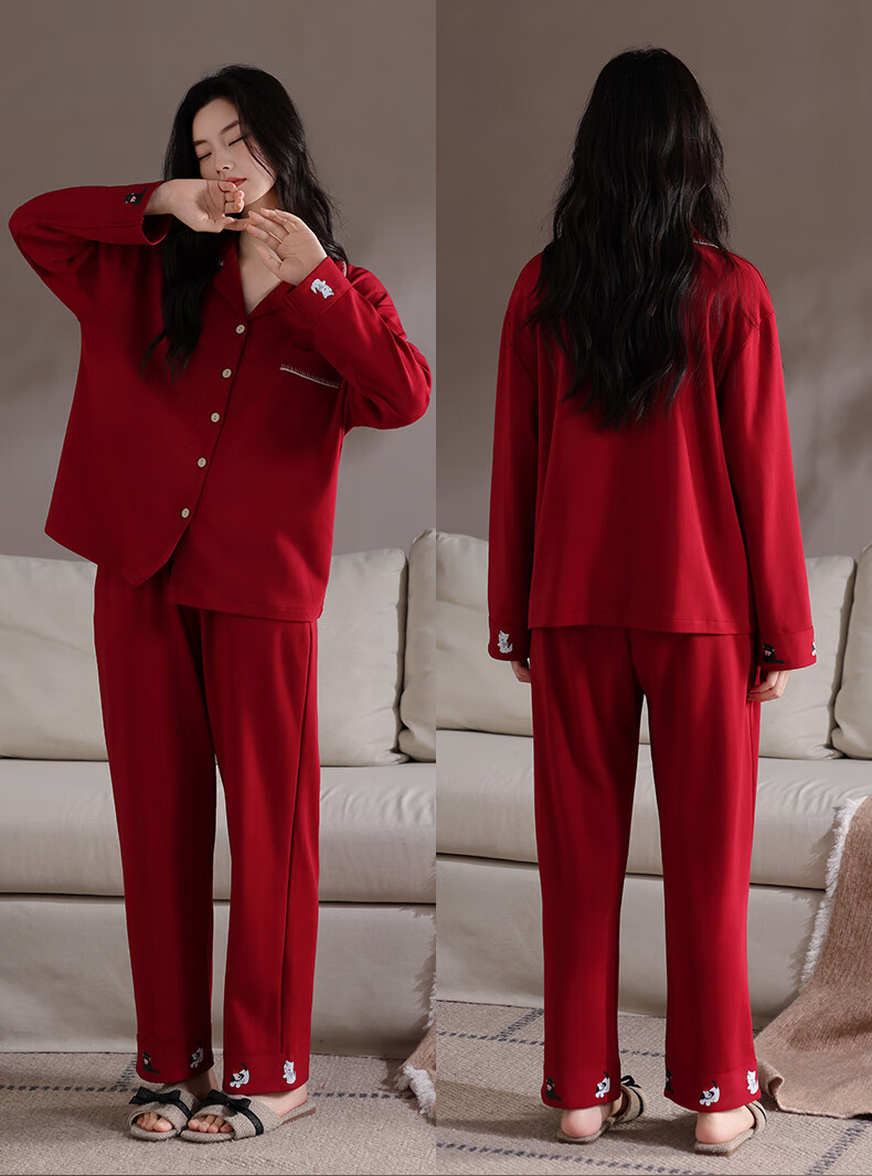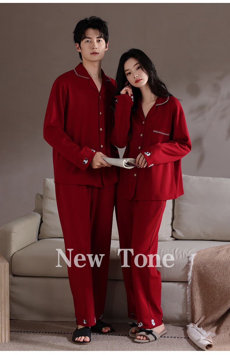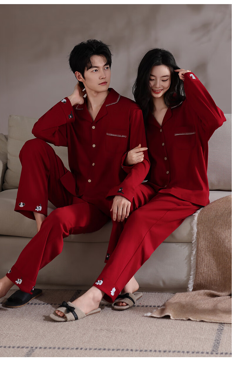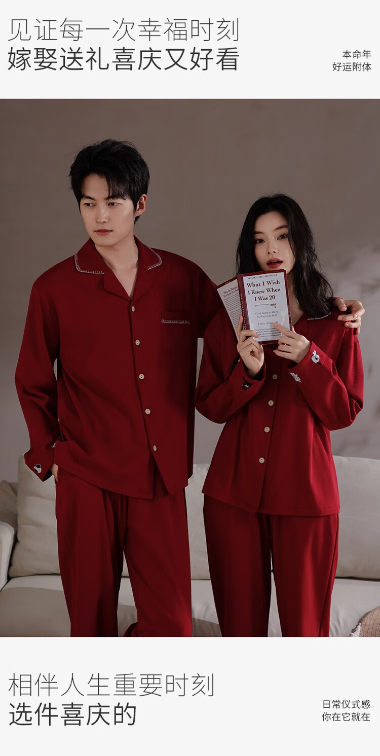 Xihong pajamas wedding newlyweds couple set large size pure cotton red zodiac year new bride men and women spring and autumn 2207,2208 gift box packaging L women's 100-120 Jin Jin equals 0.5 kg
