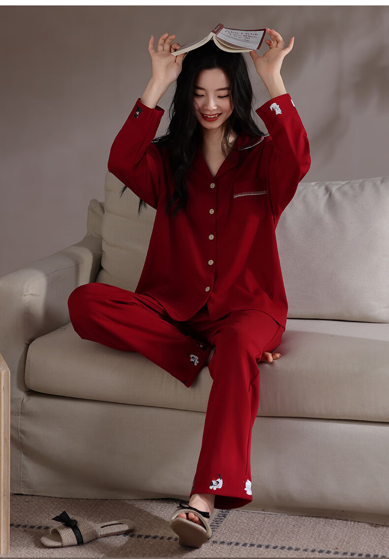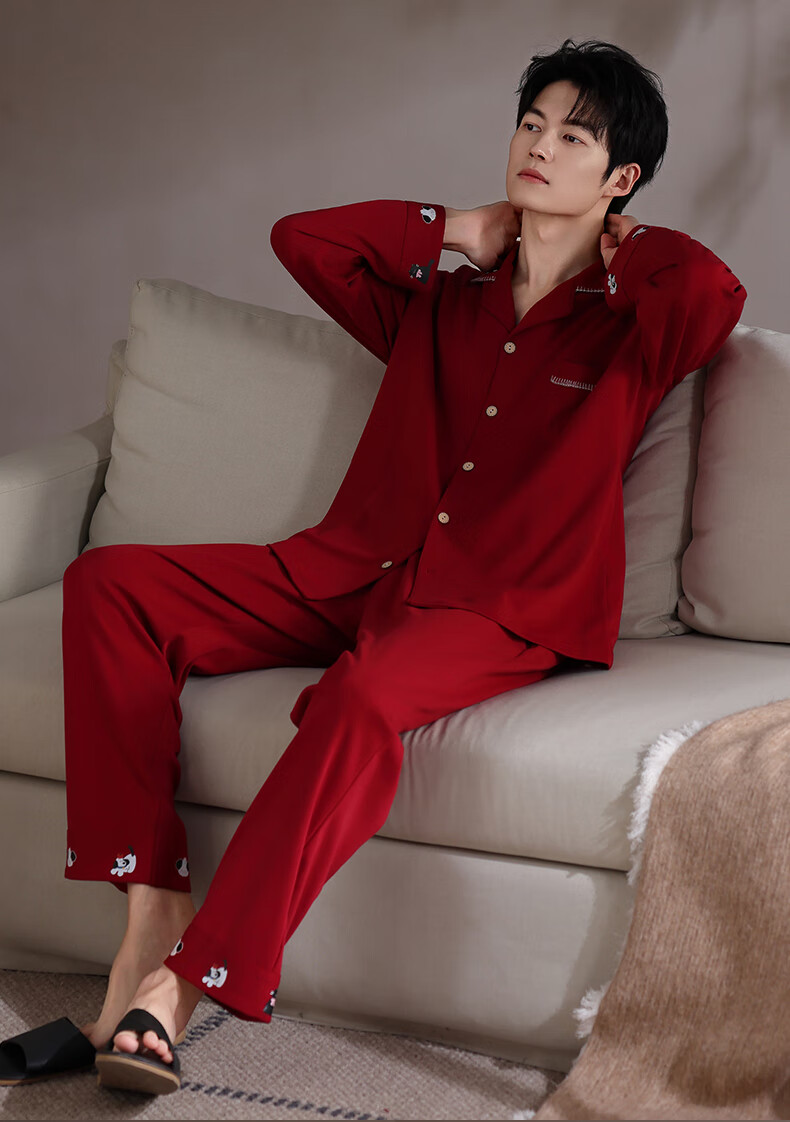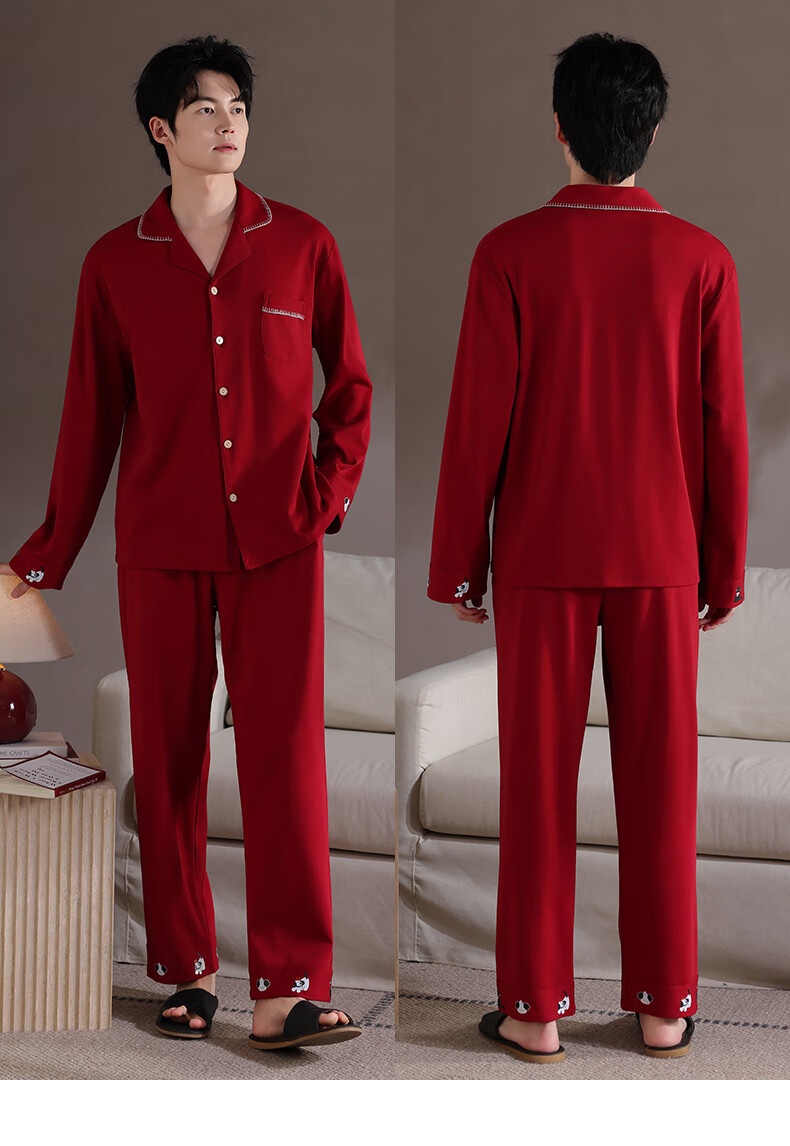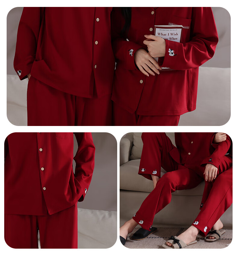 Xihong pajamas wedding newlyweds couple set large size pure cotton red zodiac year new bride men and women spring and autumn 2207,2208 gift box packaging L women's 100-120 Jin Jin equals 0.5 kg