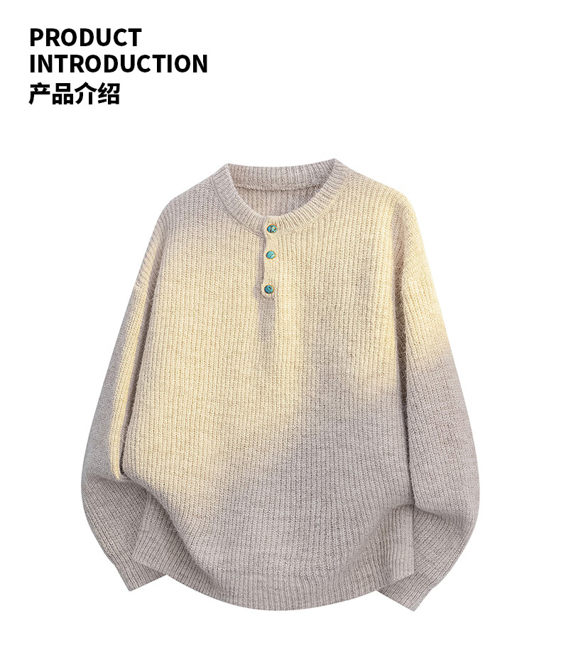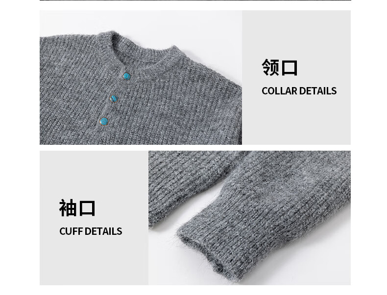 Geslandi American Henry collar sweater for men 2025 autumn and winter new trendy brand high-end lazy style inner sweater gray XL