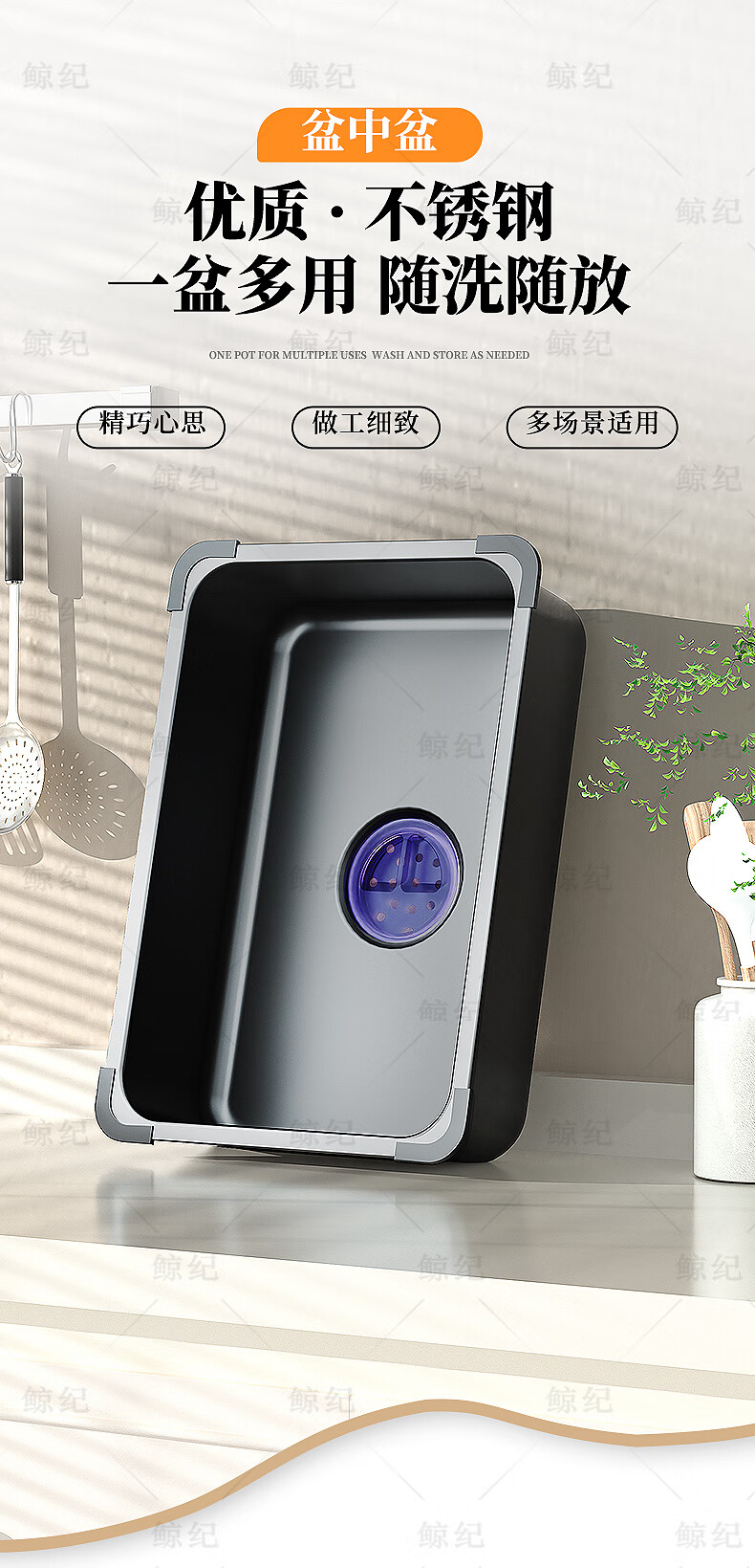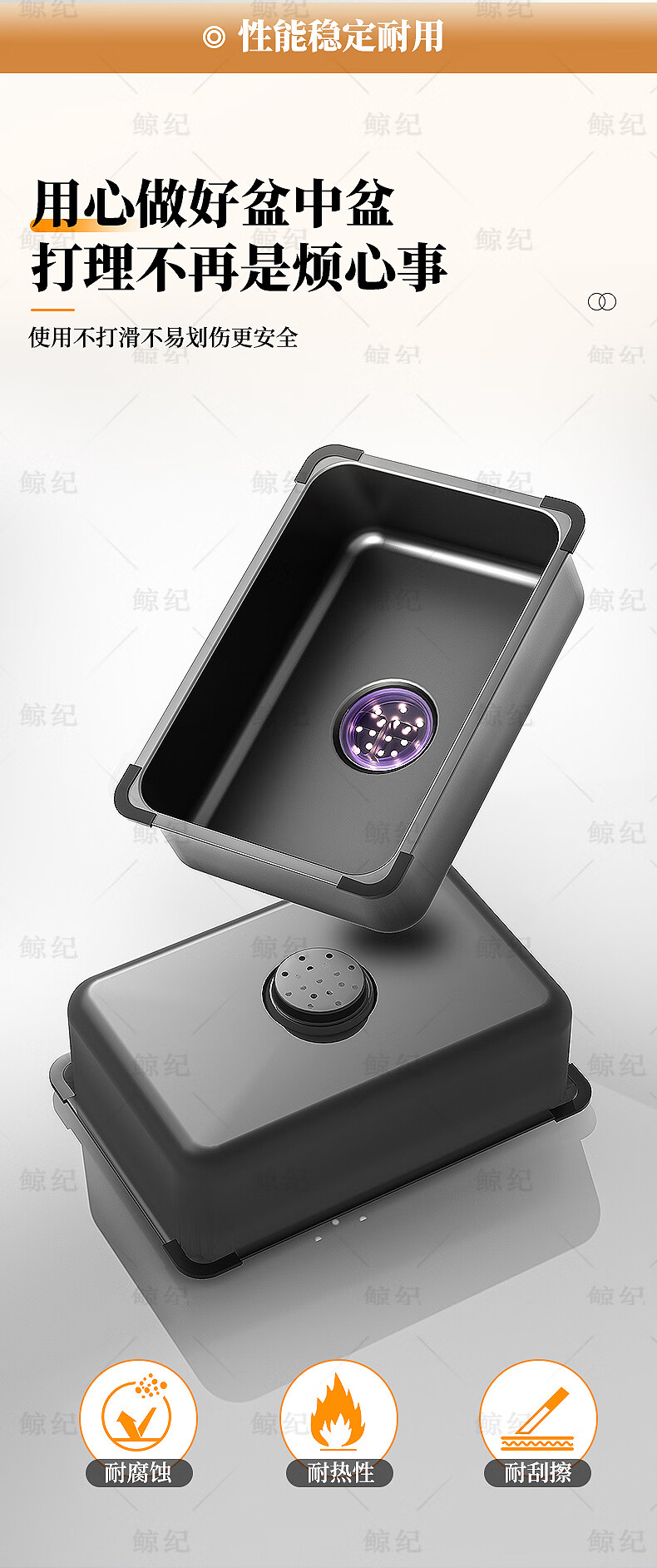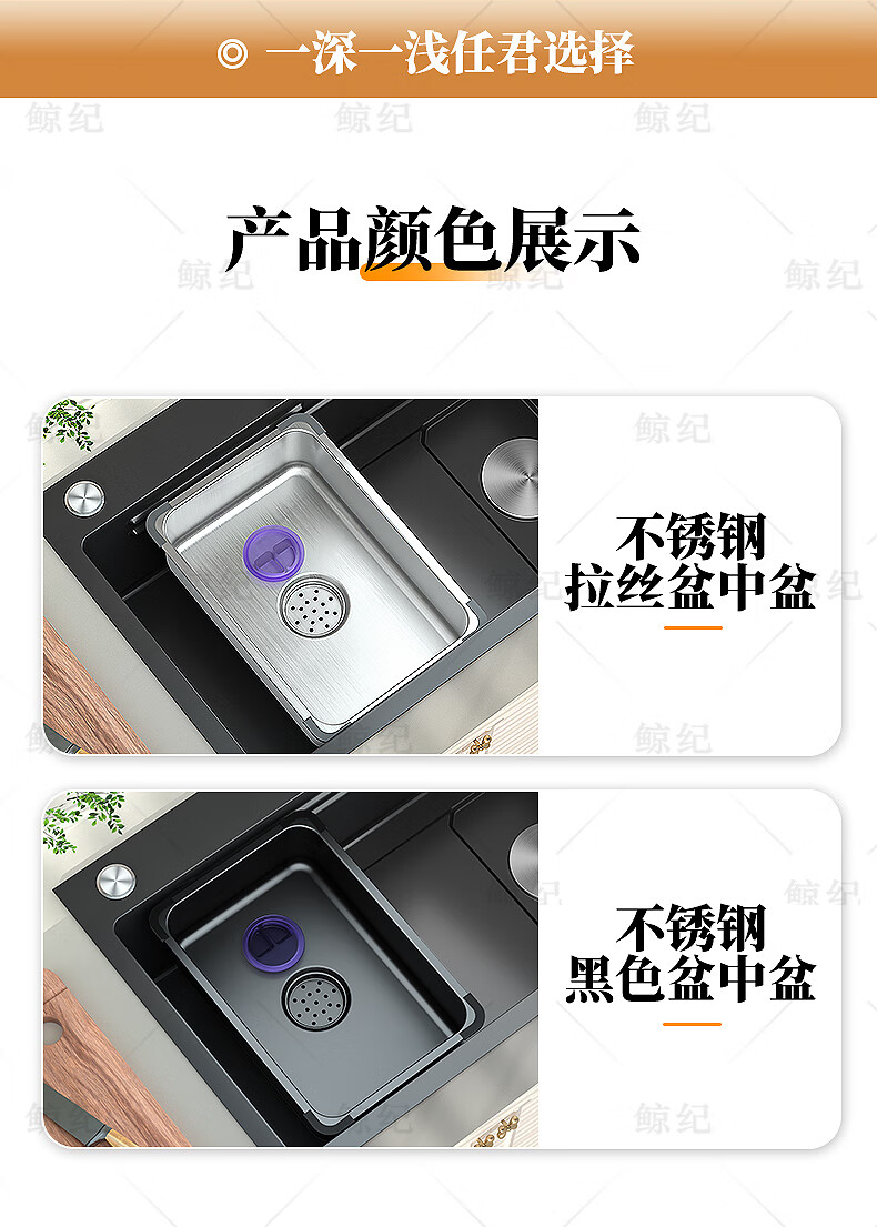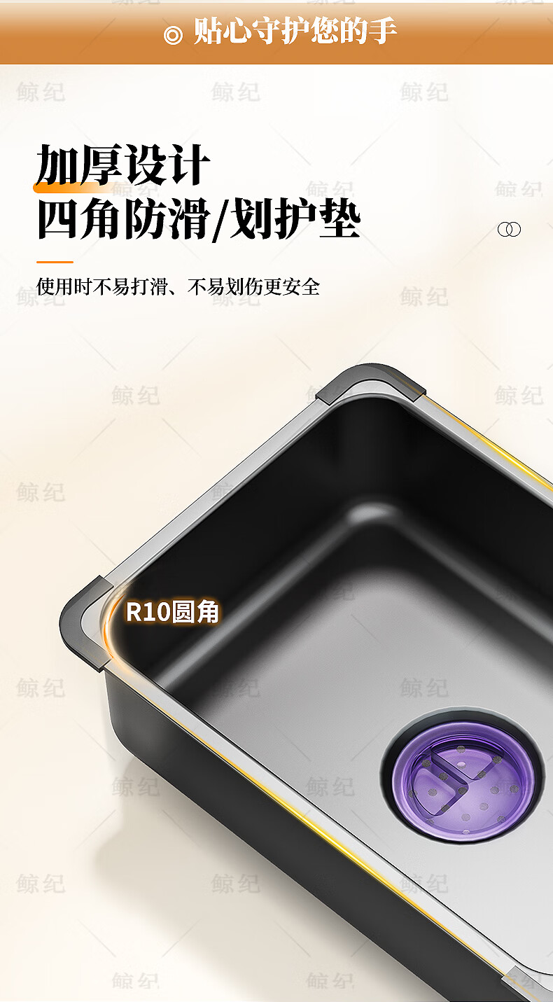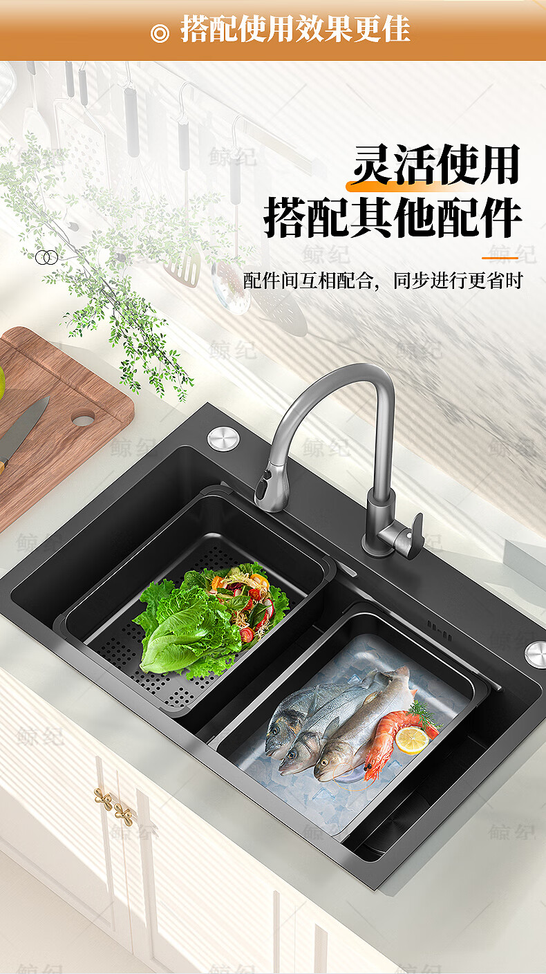 Jingji basin in the basin wash basin stainless steel basin sink mother basin nano table basin drain basin set basin storage basin cooking basin upgraded full edge nano black 425*250*100mm basin in the basin