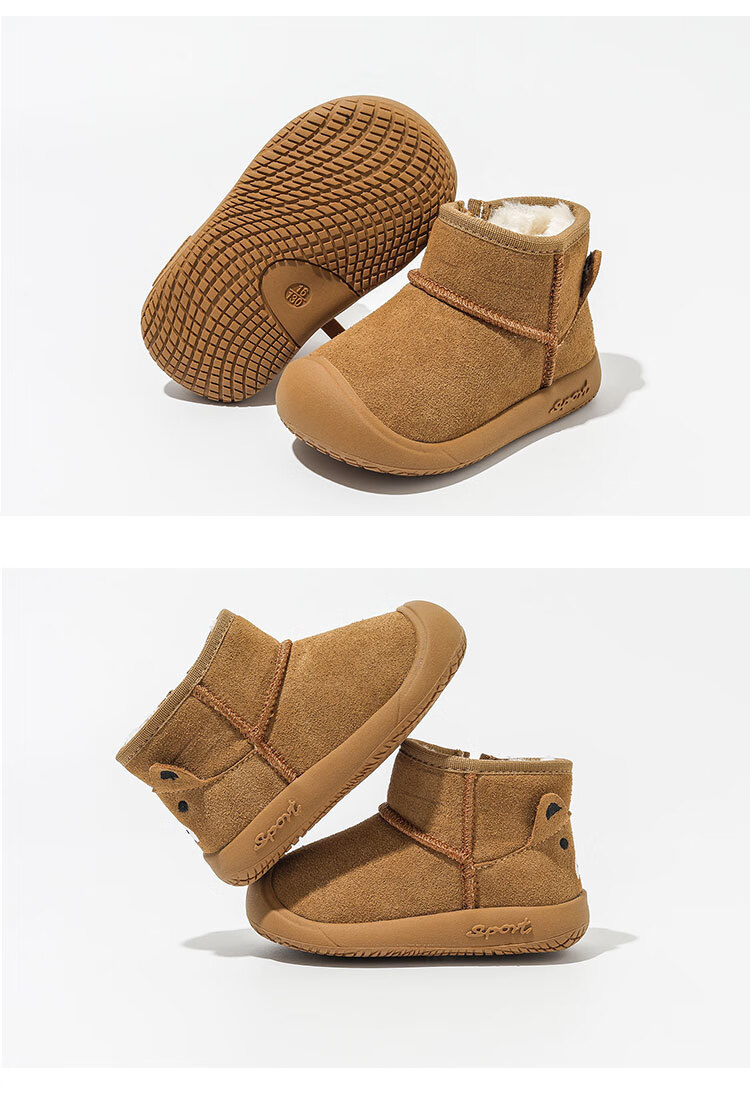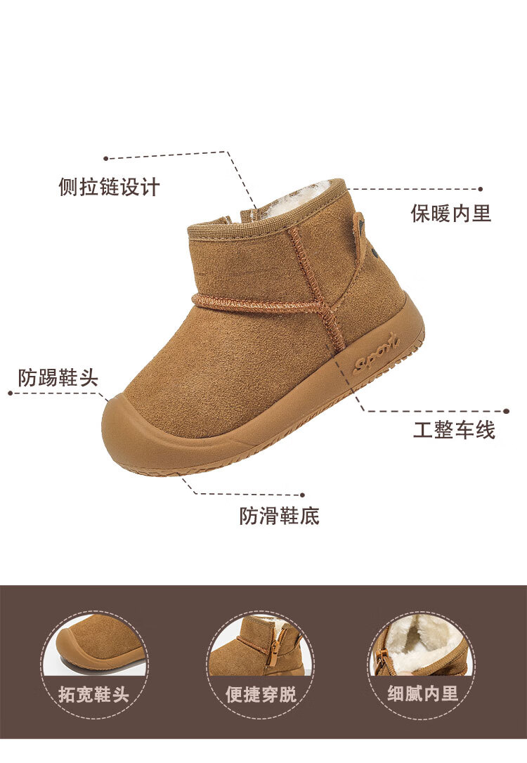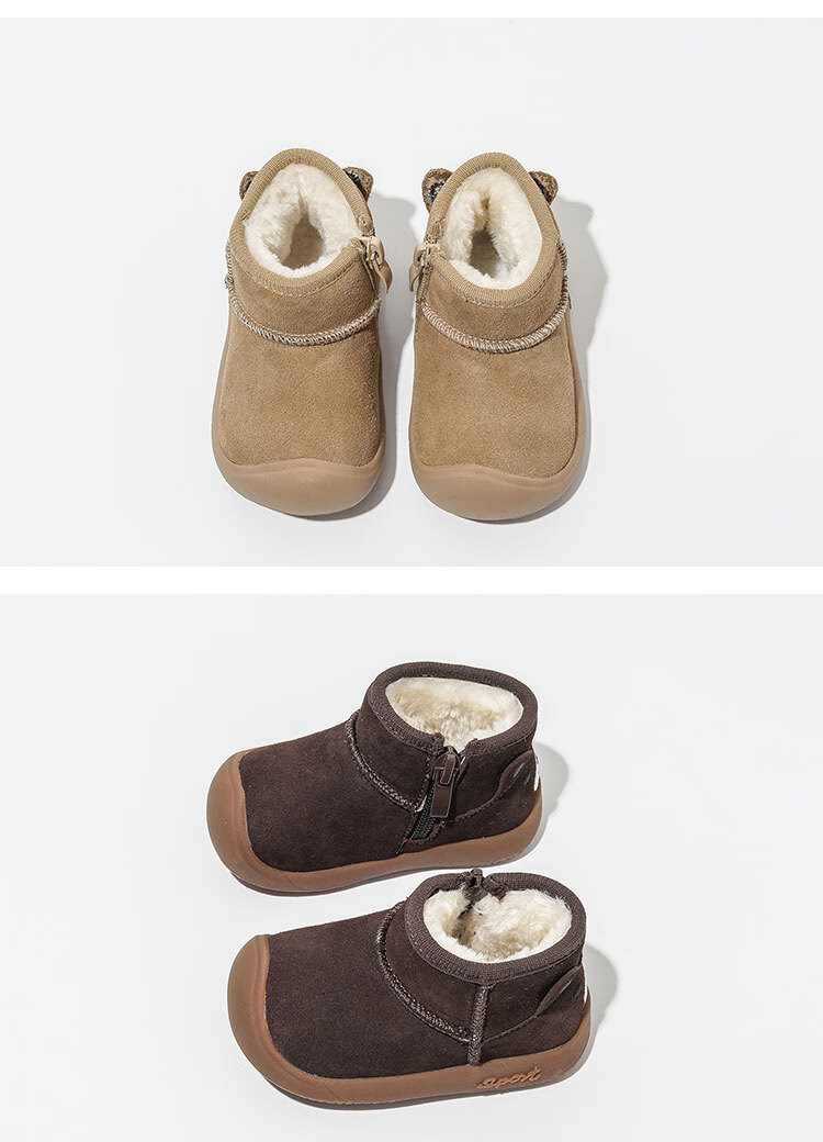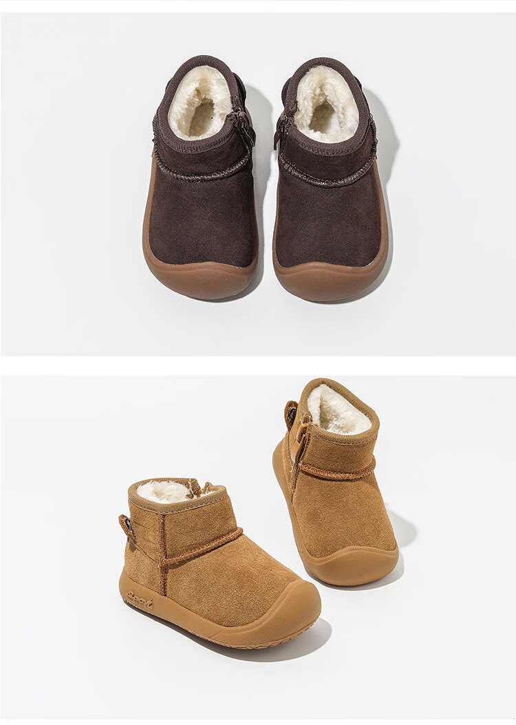 Genuine leather plus velvet warm cotton shoes baby toddler shoes autumn and winter new high top boys boots soft bottom girls cotton boots brown size 25 inner length 15.5cm