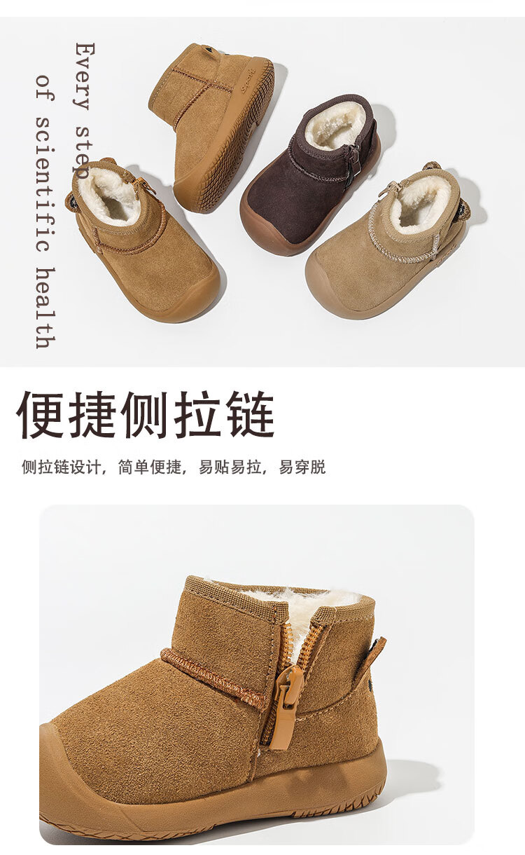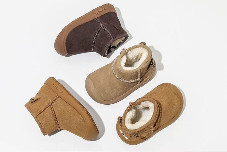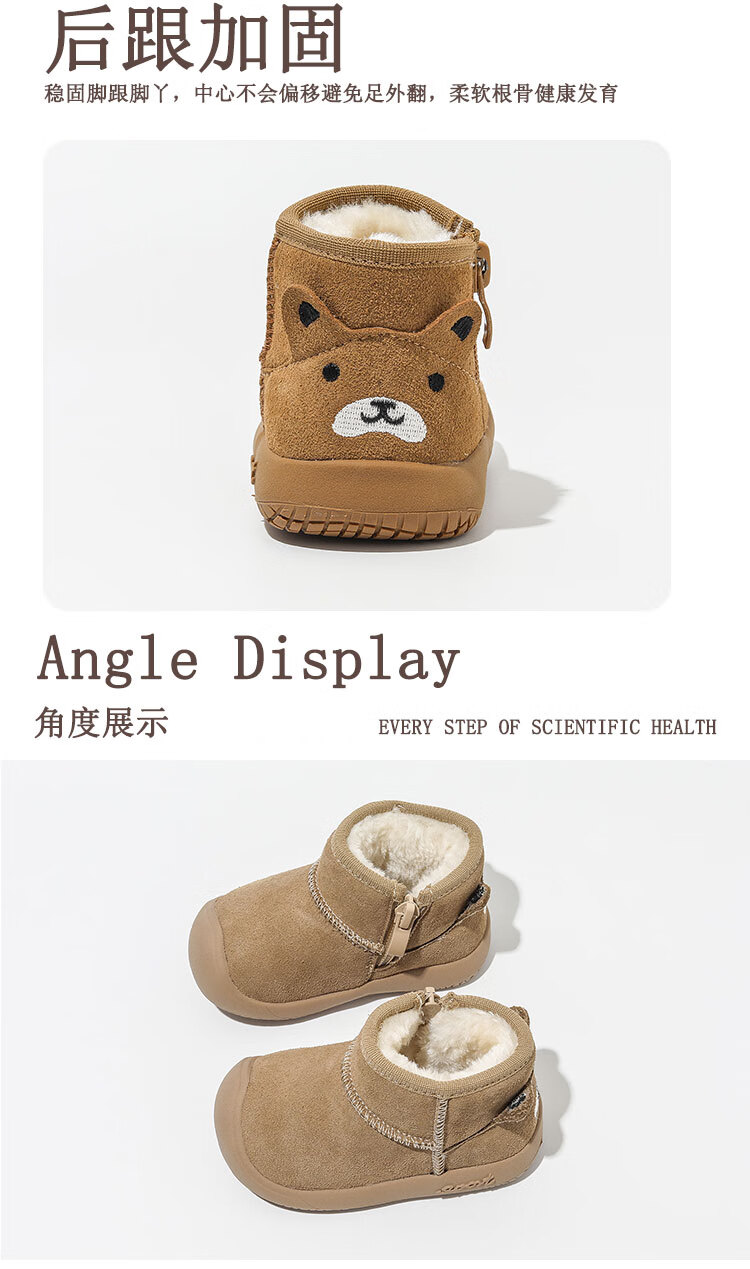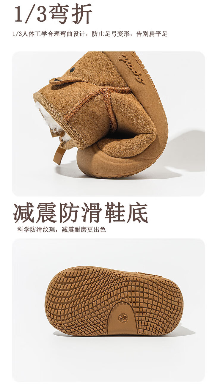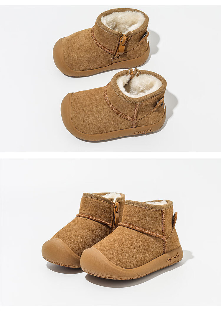 Genuine leather plus velvet warm cotton shoes baby toddler shoes autumn and winter new high top boys boots soft bottom girls cotton boots brown size 25 inner length 15.5cm