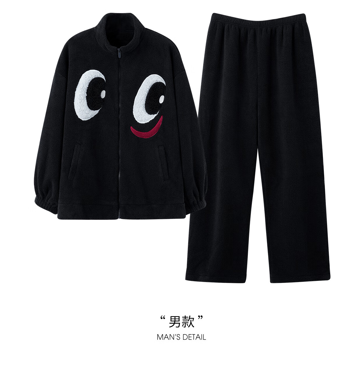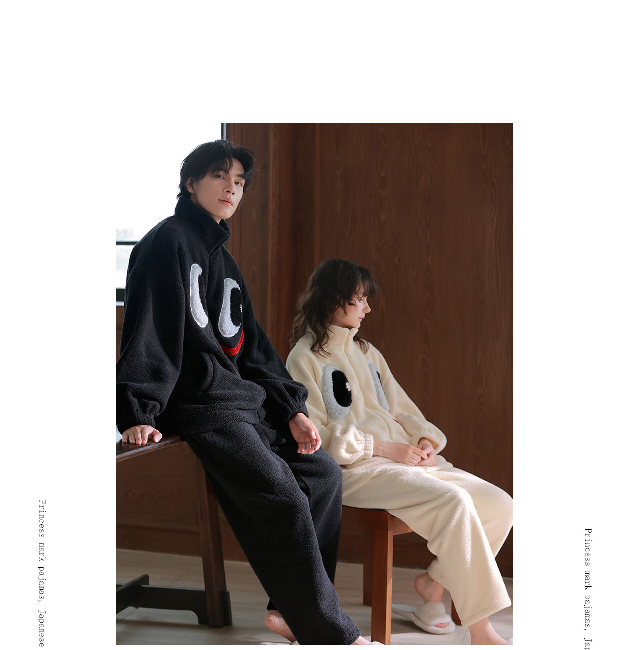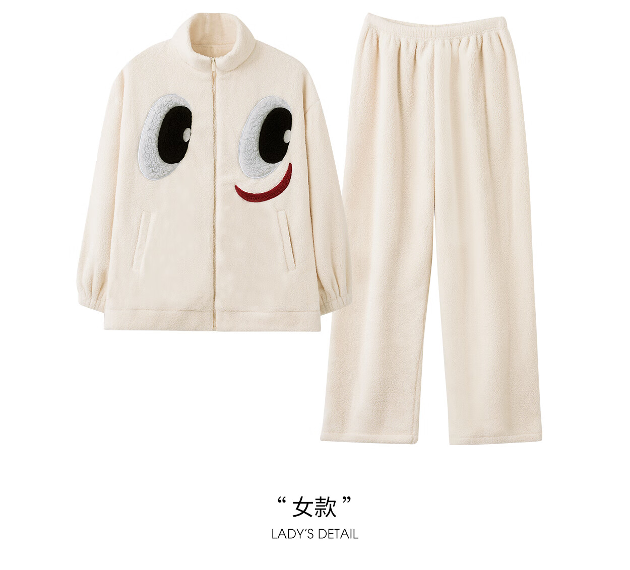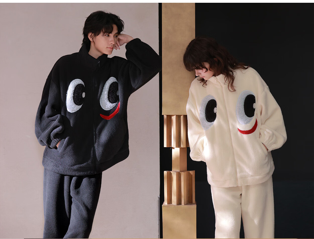 Princess Mark High Collar Zipper Couple Pajamas for Women Autumn and Winter Cute Funny Coral Velvet Wearable Home Clothes for Men QHR06132-Sparkling Eyes Couple Women's L