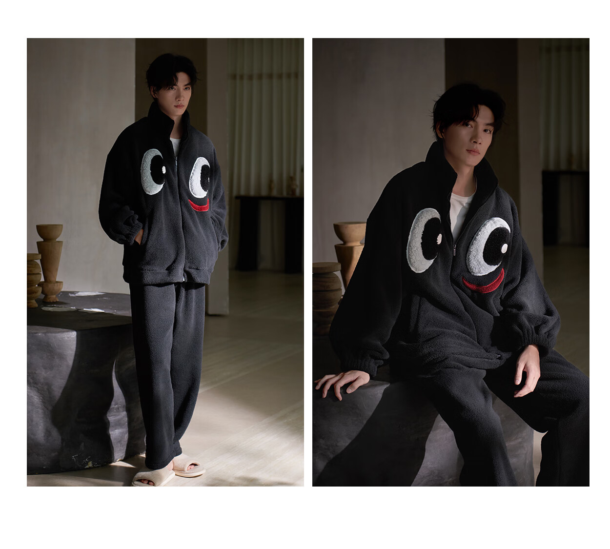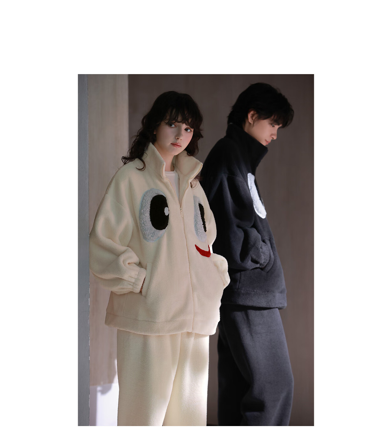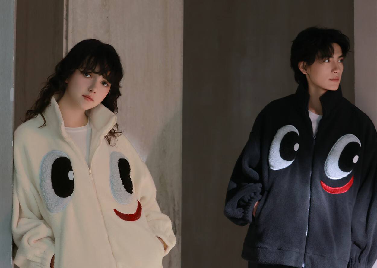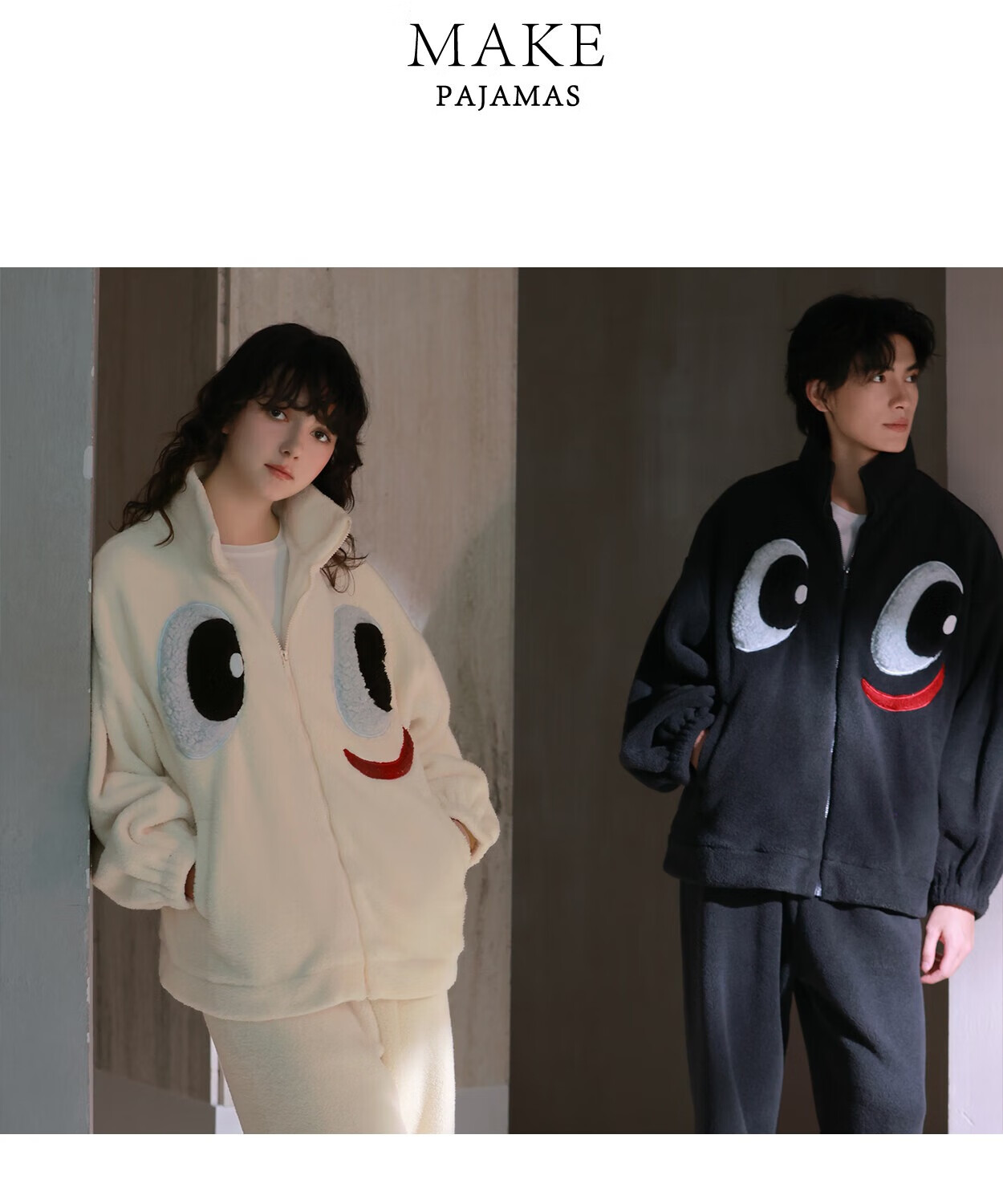 Princess Mark High Collar Zipper Couple Pajamas for Women Autumn and Winter Cute Funny Coral Velvet Wearable Home Clothes for Men QHR06132-Sparkling Eyes Couple Women's L
