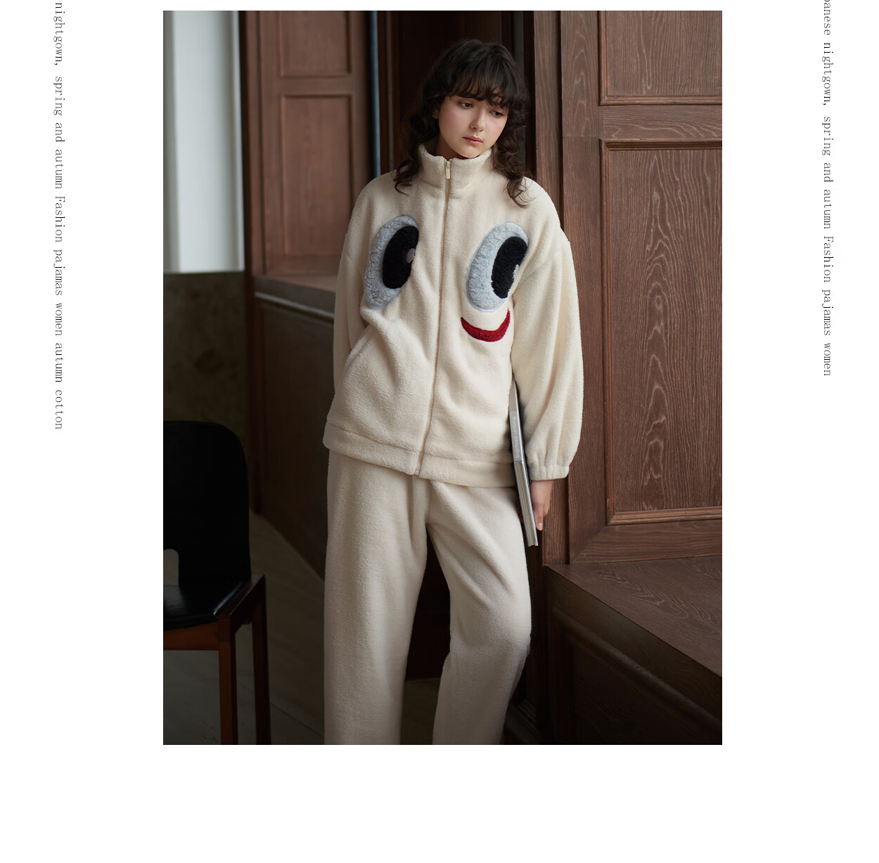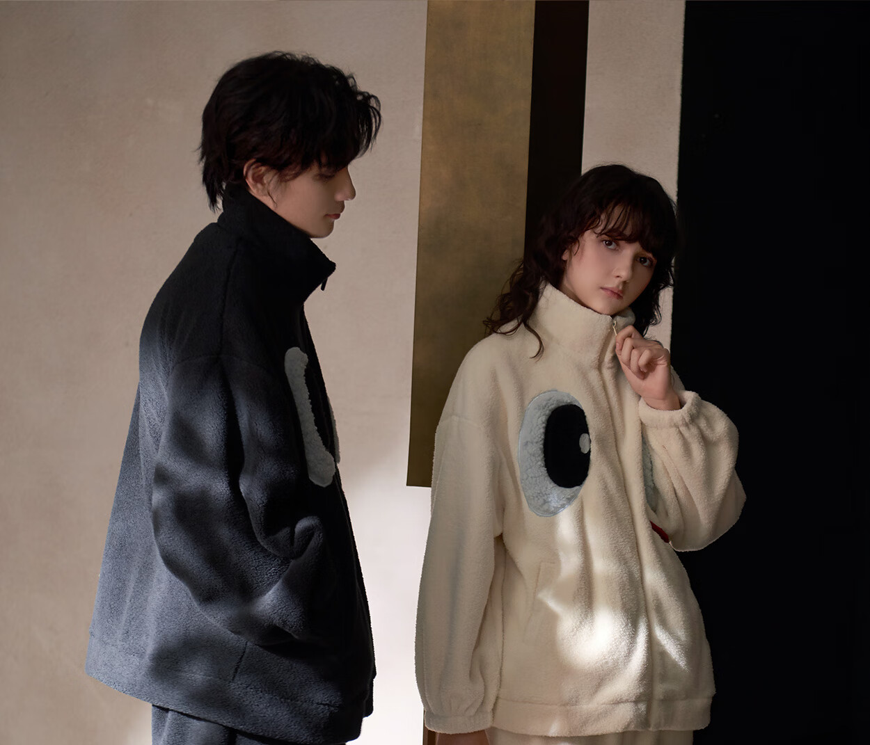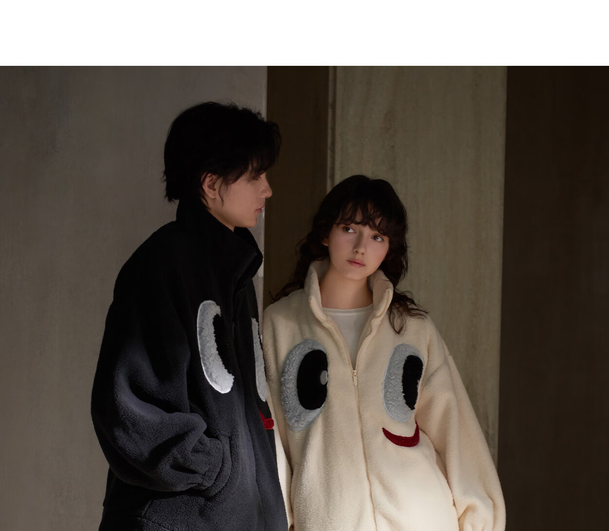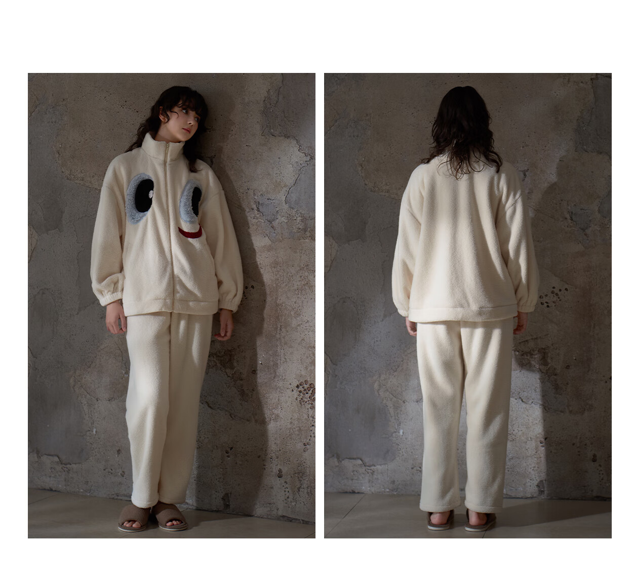 Princess Mark High Collar Zipper Couple Pajamas for Women Autumn and Winter Cute Funny Coral Velvet Wearable Home Clothes for Men QHR06132-Sparkling Eyes Couple Women's L