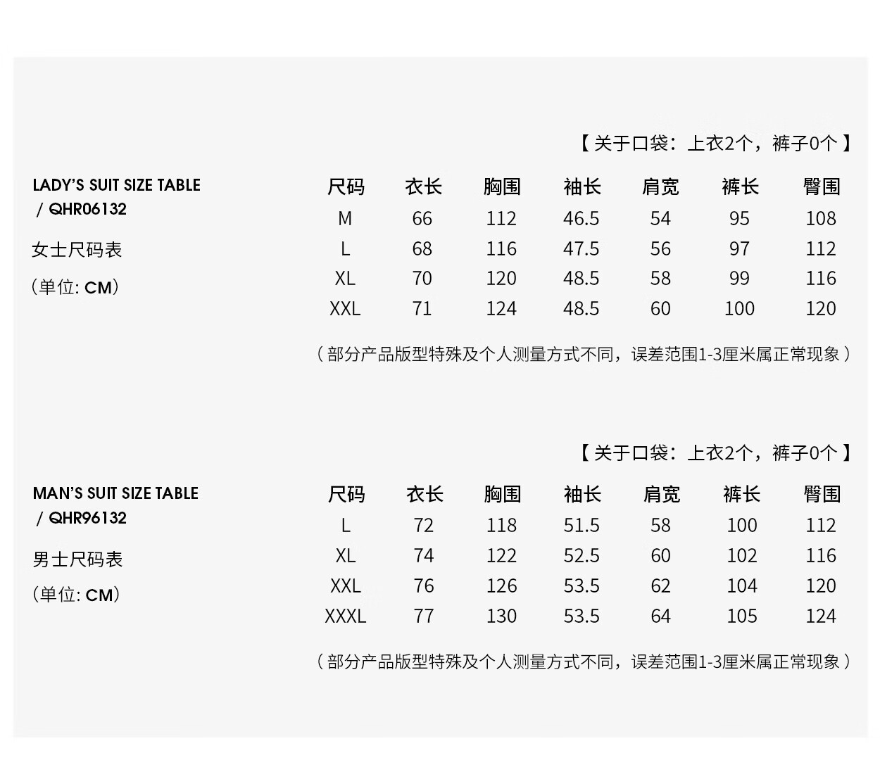 China (cm) 160-165/84-86 165-170 / 88-90 167-172 / 92-96 168-173 / 98-102 170-176 / 106-110