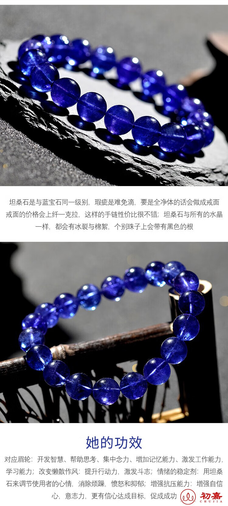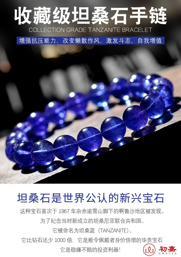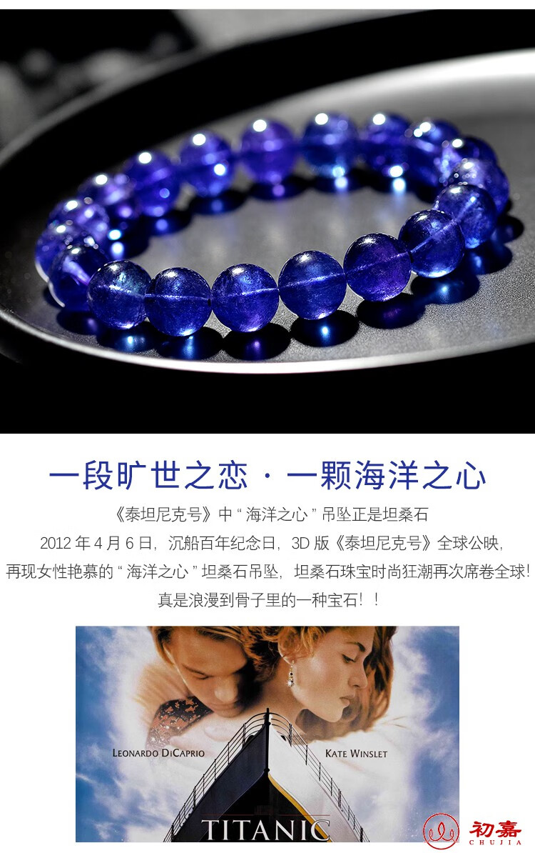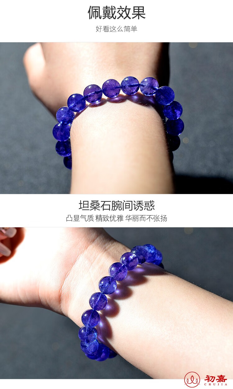 Junshi Collection Tanzanite Bracelet Women's Heart of the Ocean Purple Sapphire Crystal Gemstone Ball Single Circle Bracelet Jewelry Gift 8mm