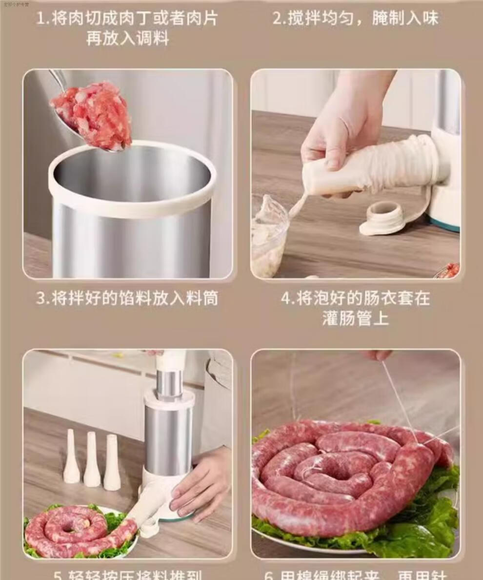 Skingcond German 304 stainless steel sausage enema machine household manual casing filling sausage making tool jar sausage maker food grade enlarged barrel free 4 intestine mouths