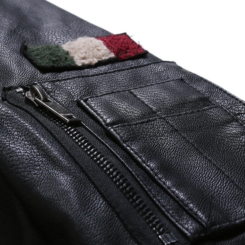 S MAX MARAFDS2025新款男皮衣欧美刺绣外套帅气秋冬季海宁皮夹克立领 黄色 XL 偏小一个码数