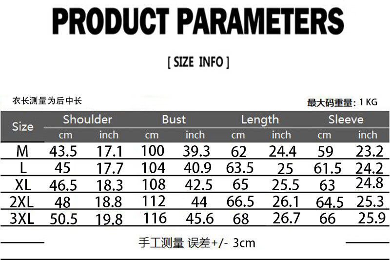China (cm) 165 / 88-90 170 / 96-98 175 / 108-110 180 / 118-122 185 / 126-130
