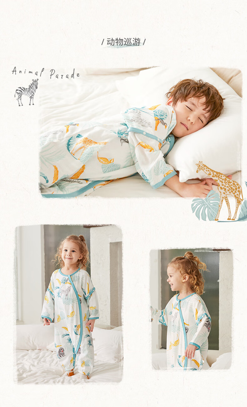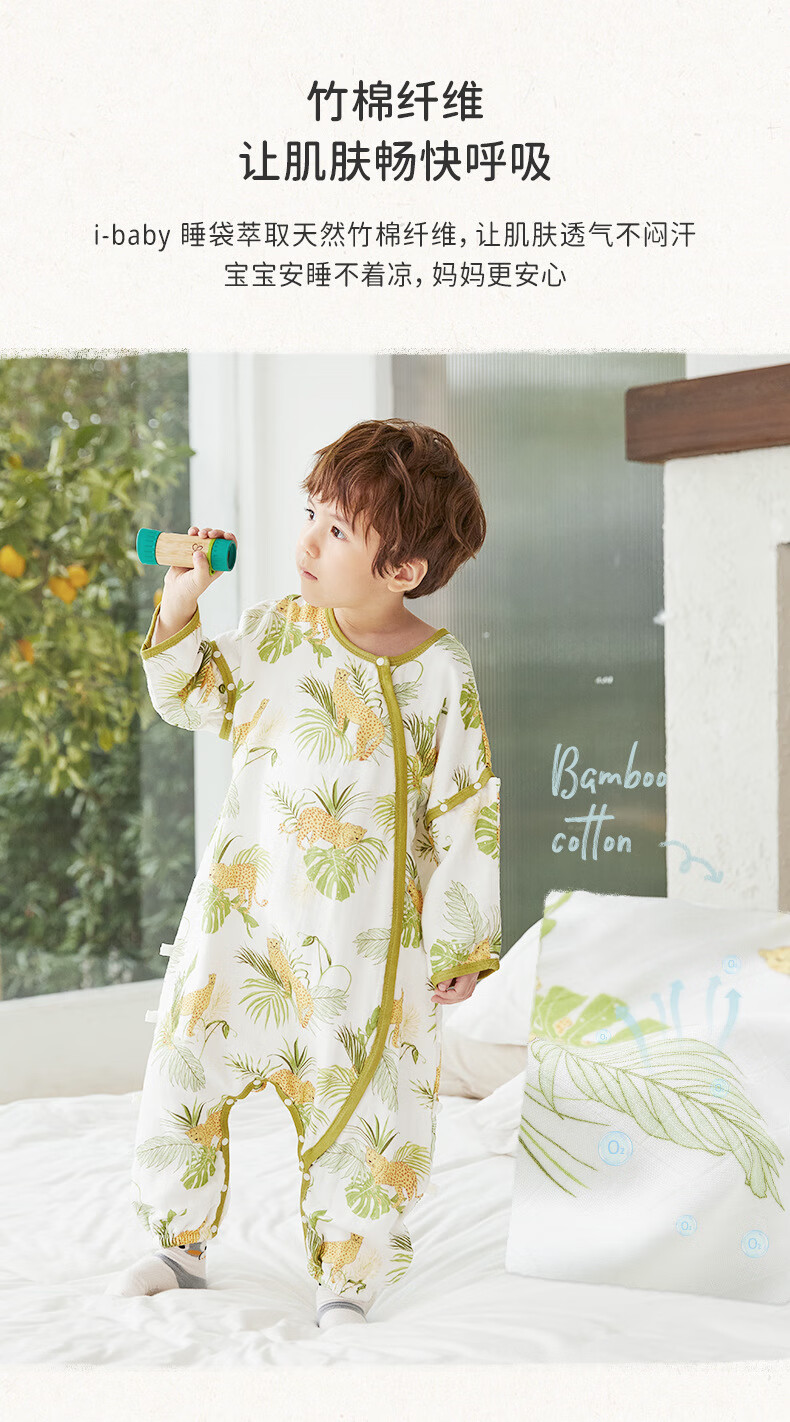 I (Special Clearance) ibaby children's constant temperature split-leg sleeping bag, four-season gauze anti-kick quilt, comfortable and breathable Jungle King Recommended height 90-100cm