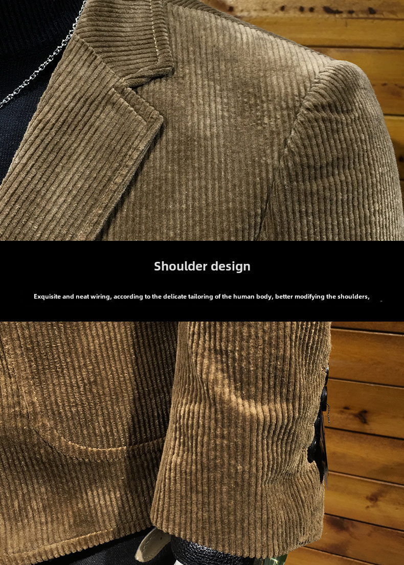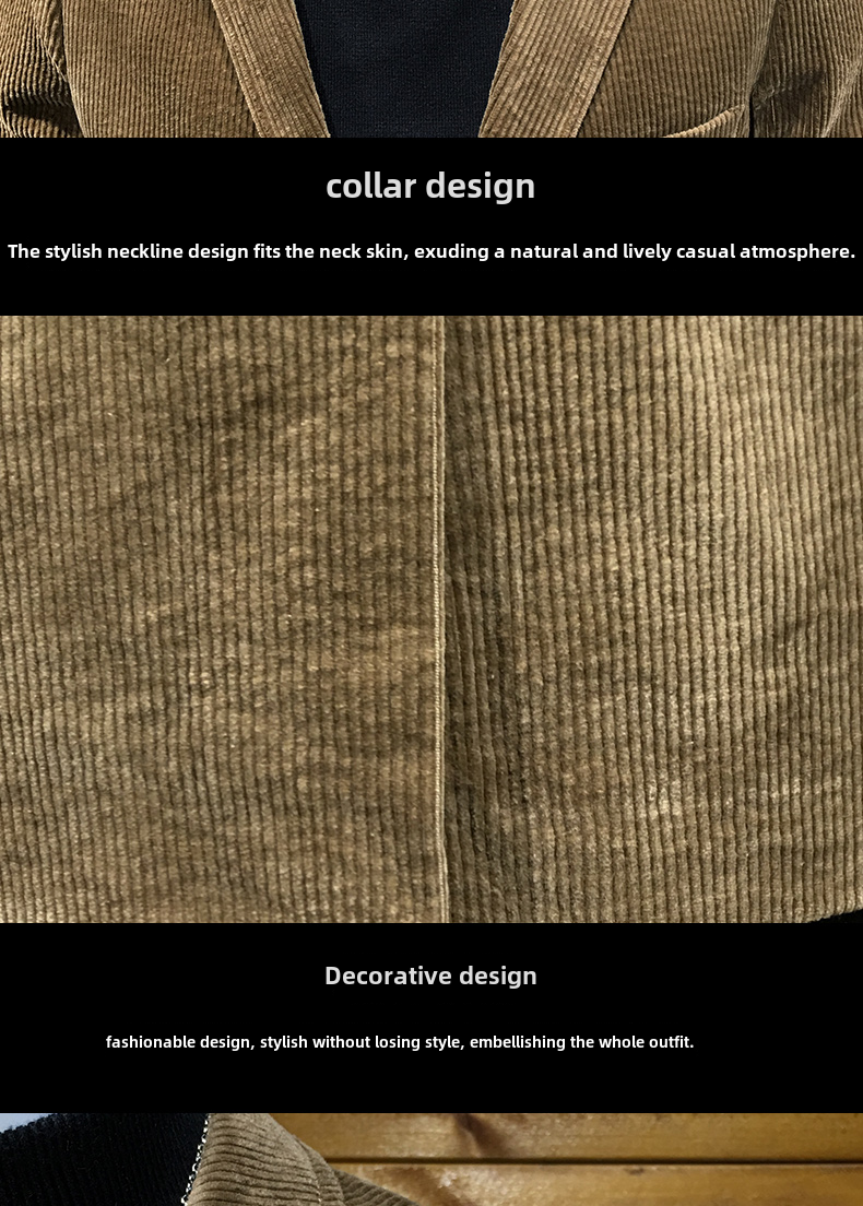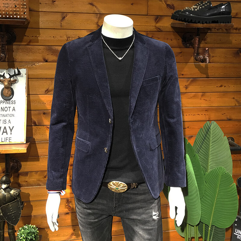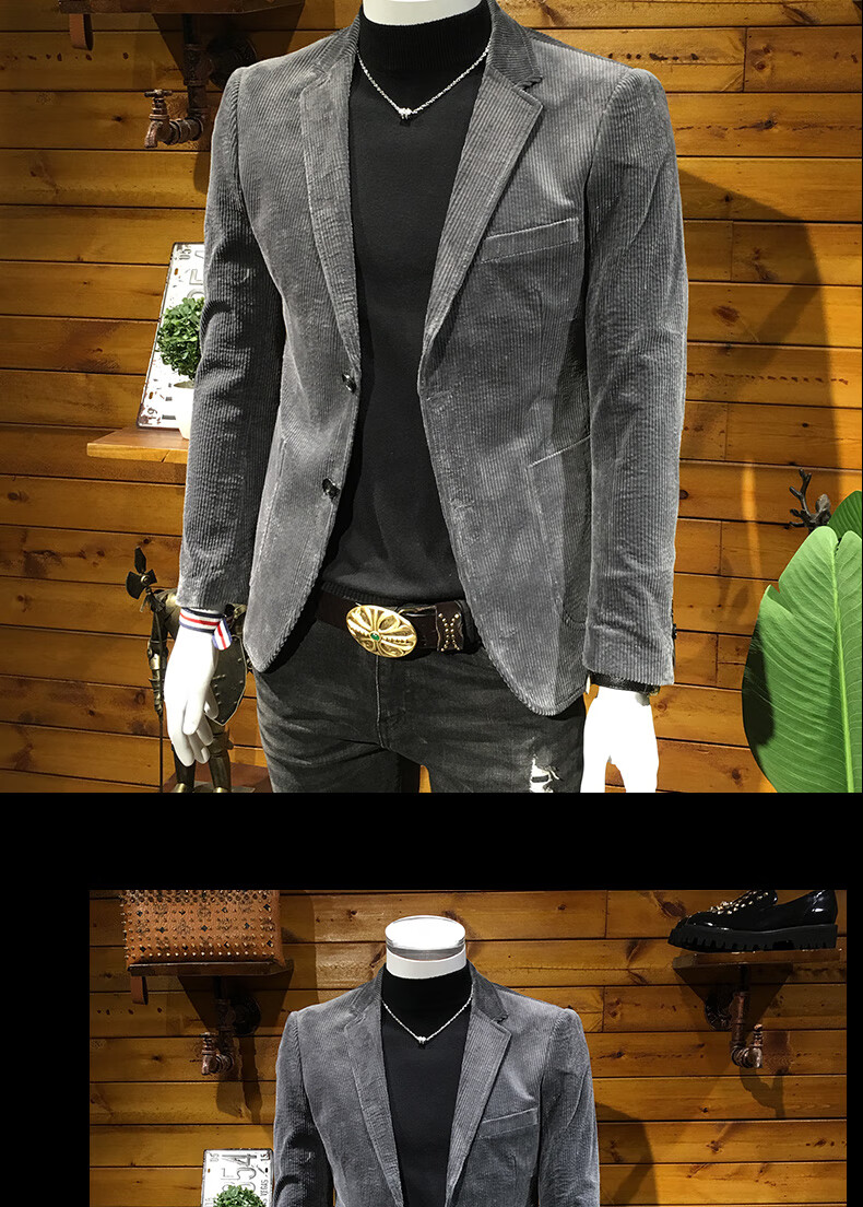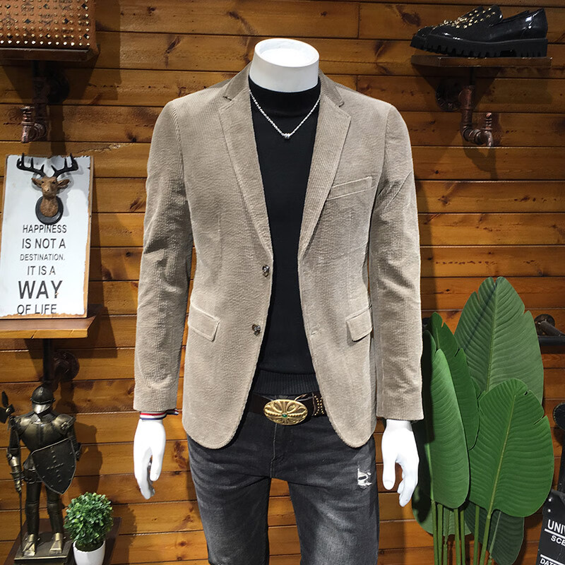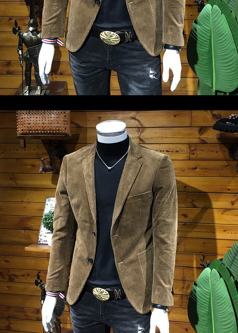 Rowswell2025 new spring and autumn corduroy suit for young men Korean version slim retro business casual small suit jacket black XL