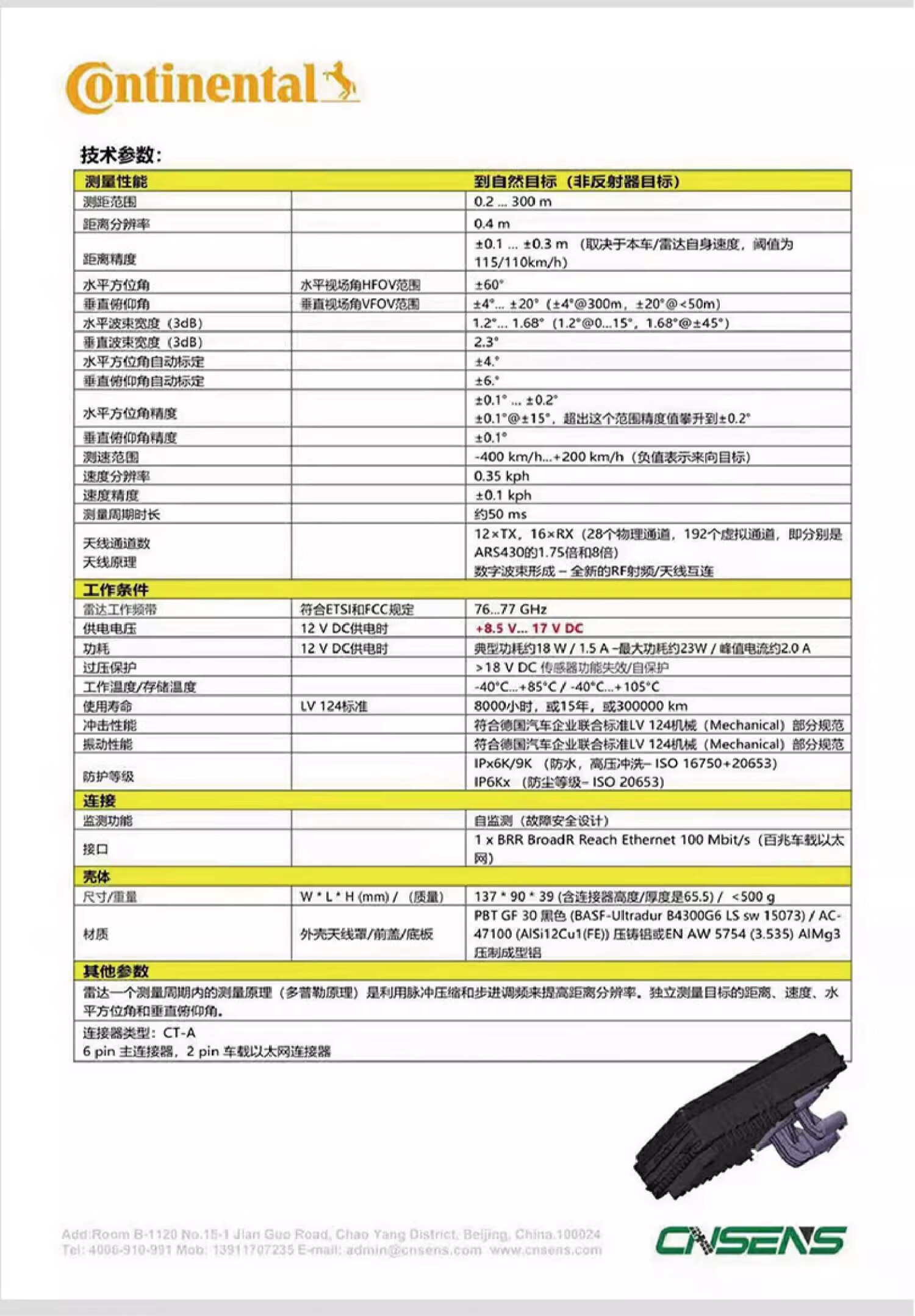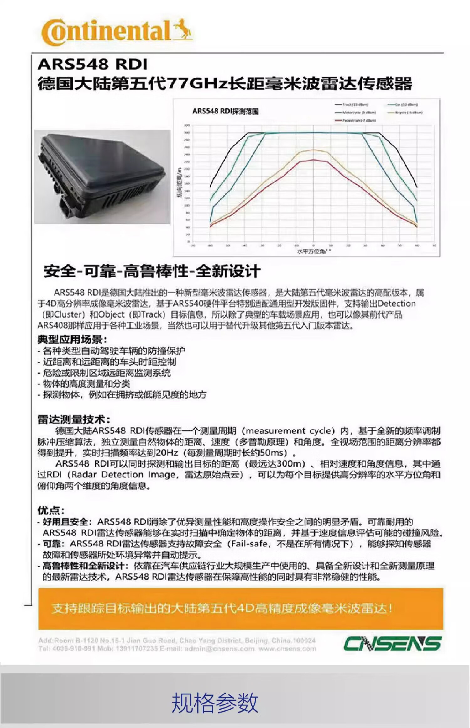 ARS548 RDI Continental Germany 4D high-resolution imaging 77Ghz millimeter wave radar host computer ROS ARS548 (radar + wiring)