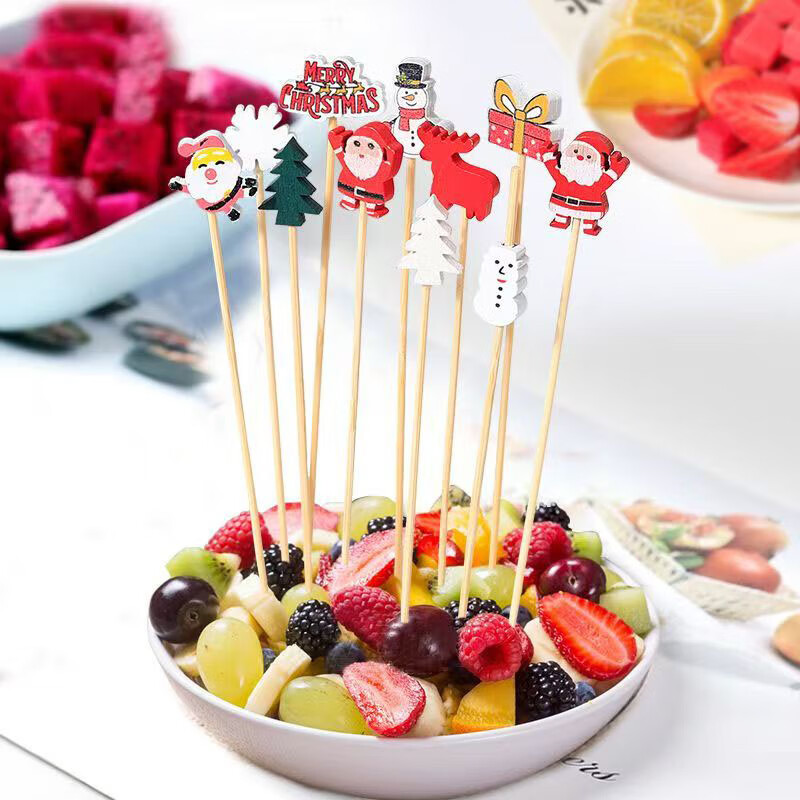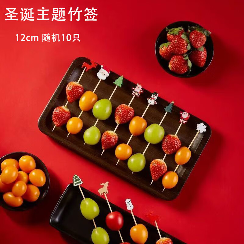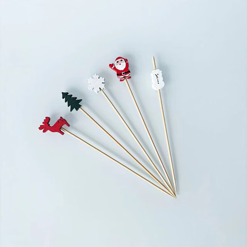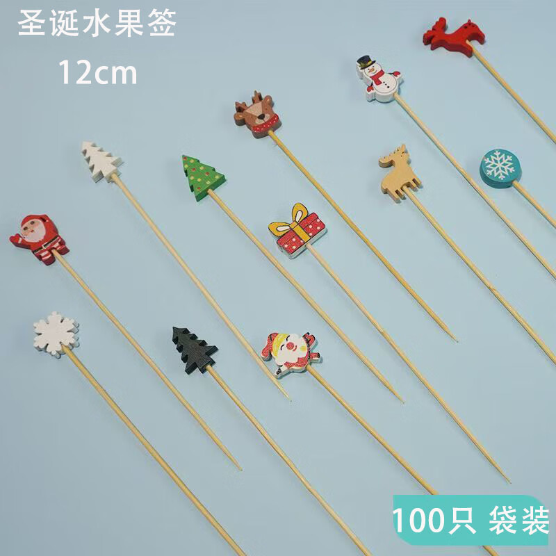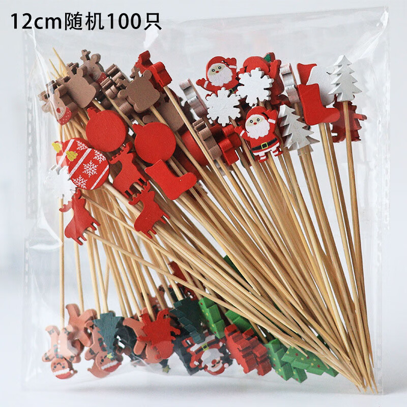 Follow-up Christmas fruit picks, Santa Claus, pine elk fruit picks, holiday decoration picks, fruit cocktail burgers, 12cm Christmas series, random 100 pieces