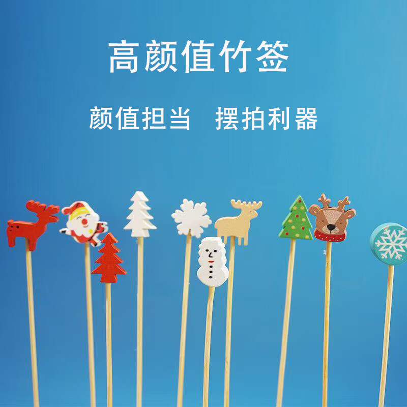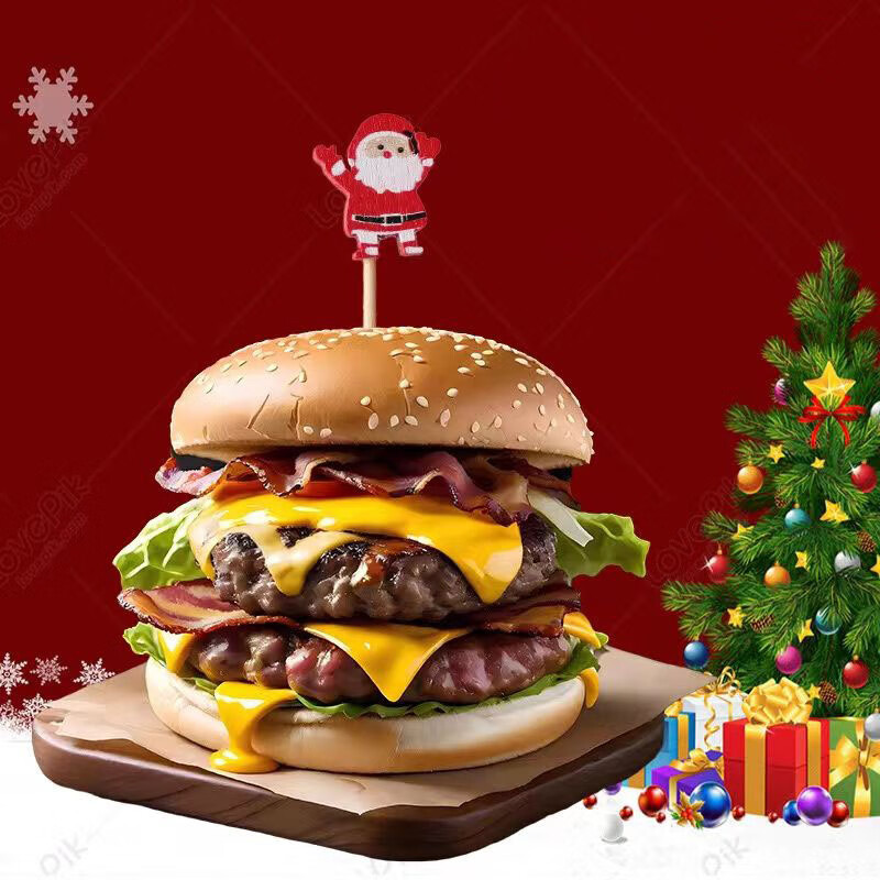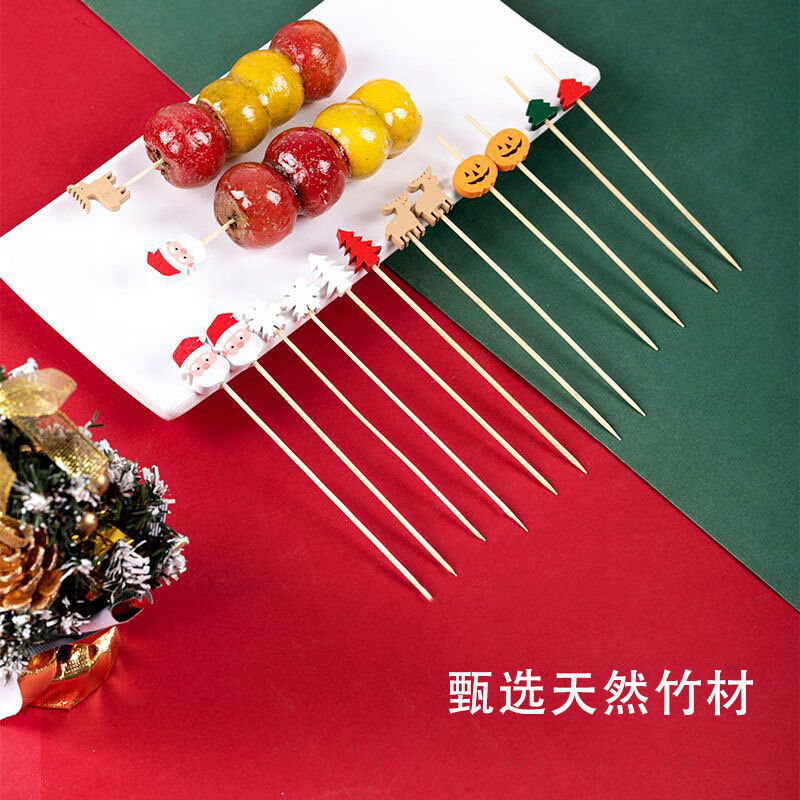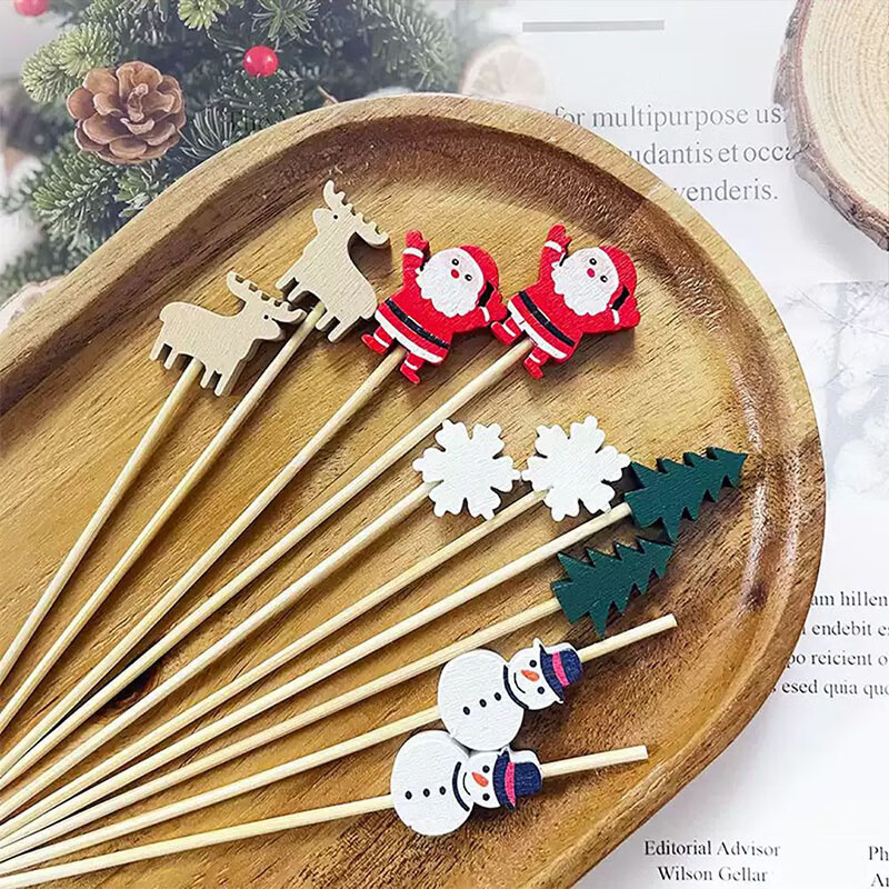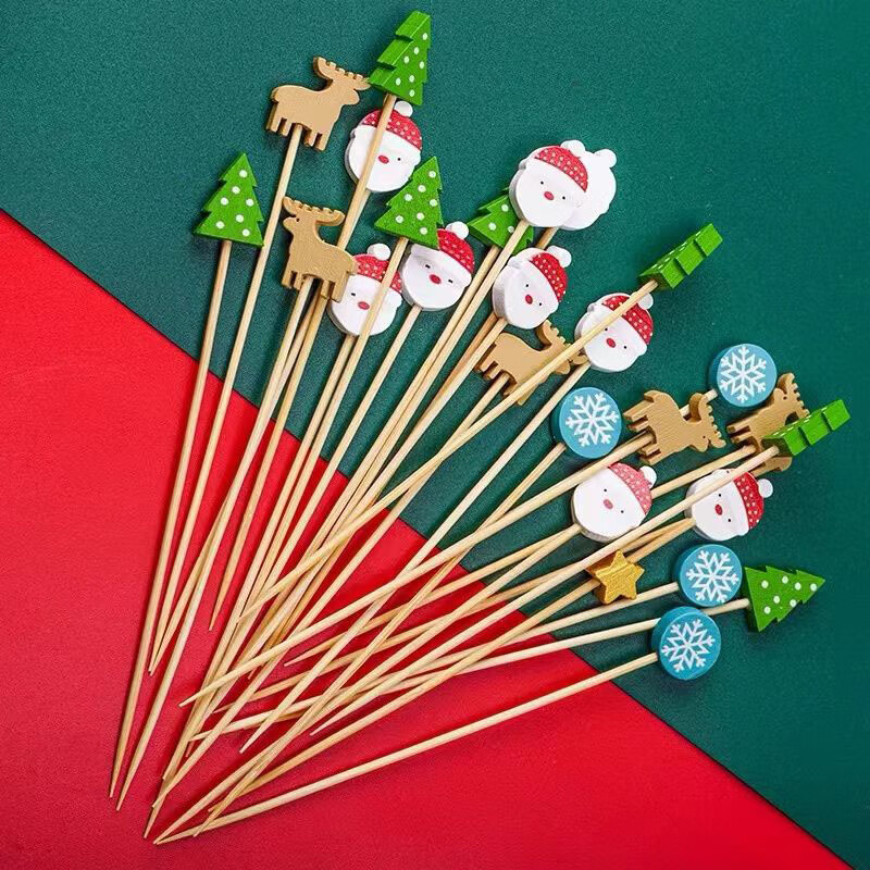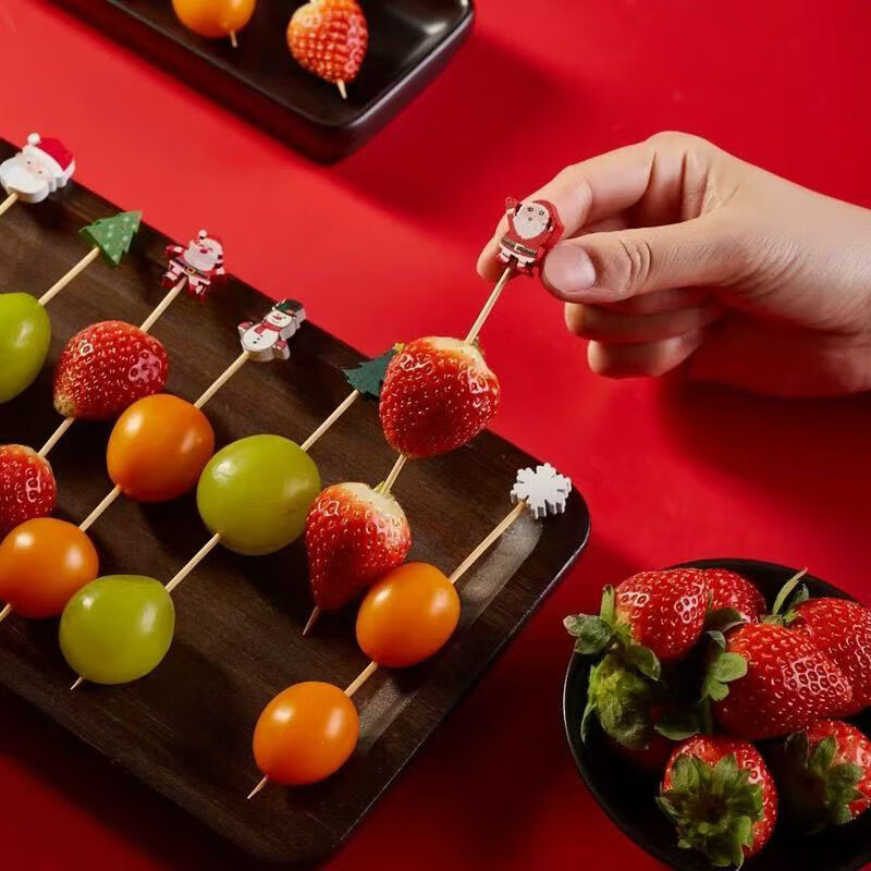 Follow-up Christmas fruit picks, Santa Claus, pine elk fruit picks, holiday decoration picks, fruit cocktail burgers, 12cm Christmas series, random 100 pieces