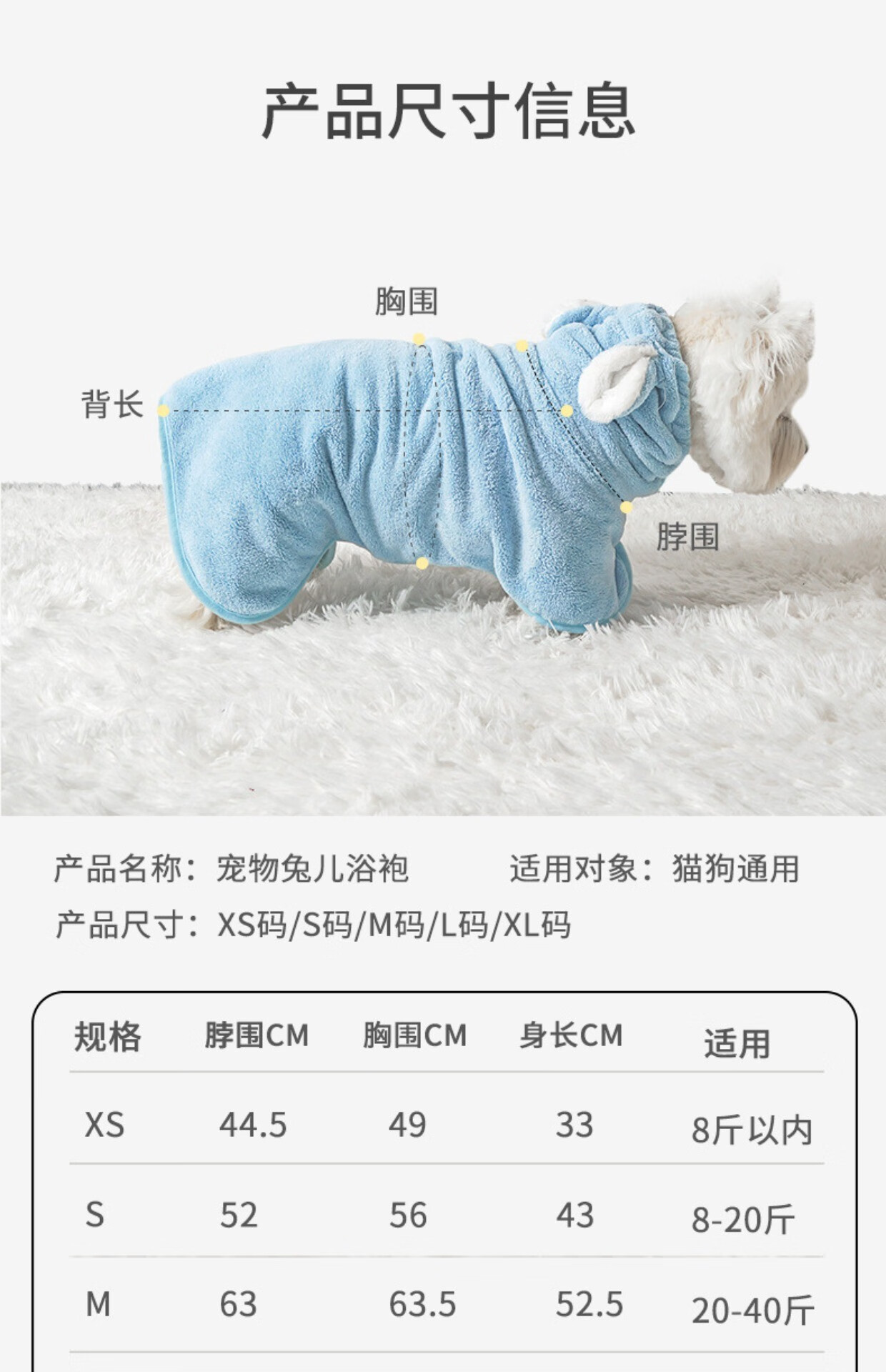 Japanese imported pet bathrobe for dogs, extra large absorbent cat towel, soft bathing and quick-drying special cat towel, hooded bathrobe, blue S, suitable for 8-20 Jin, Jin equals 0.5 kg, indoor pets