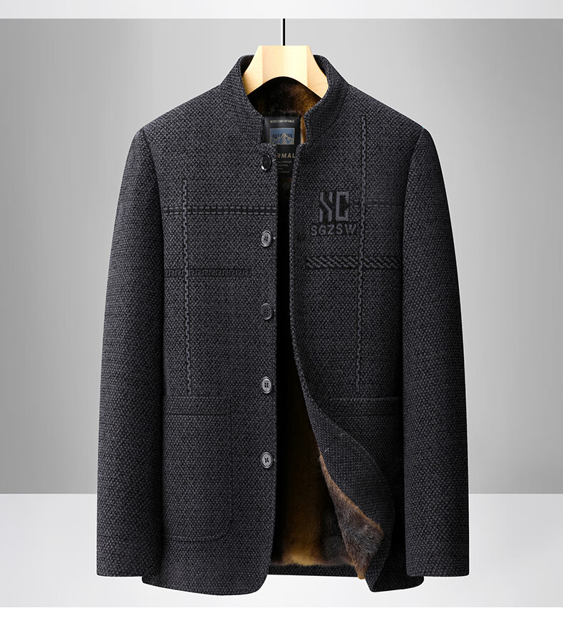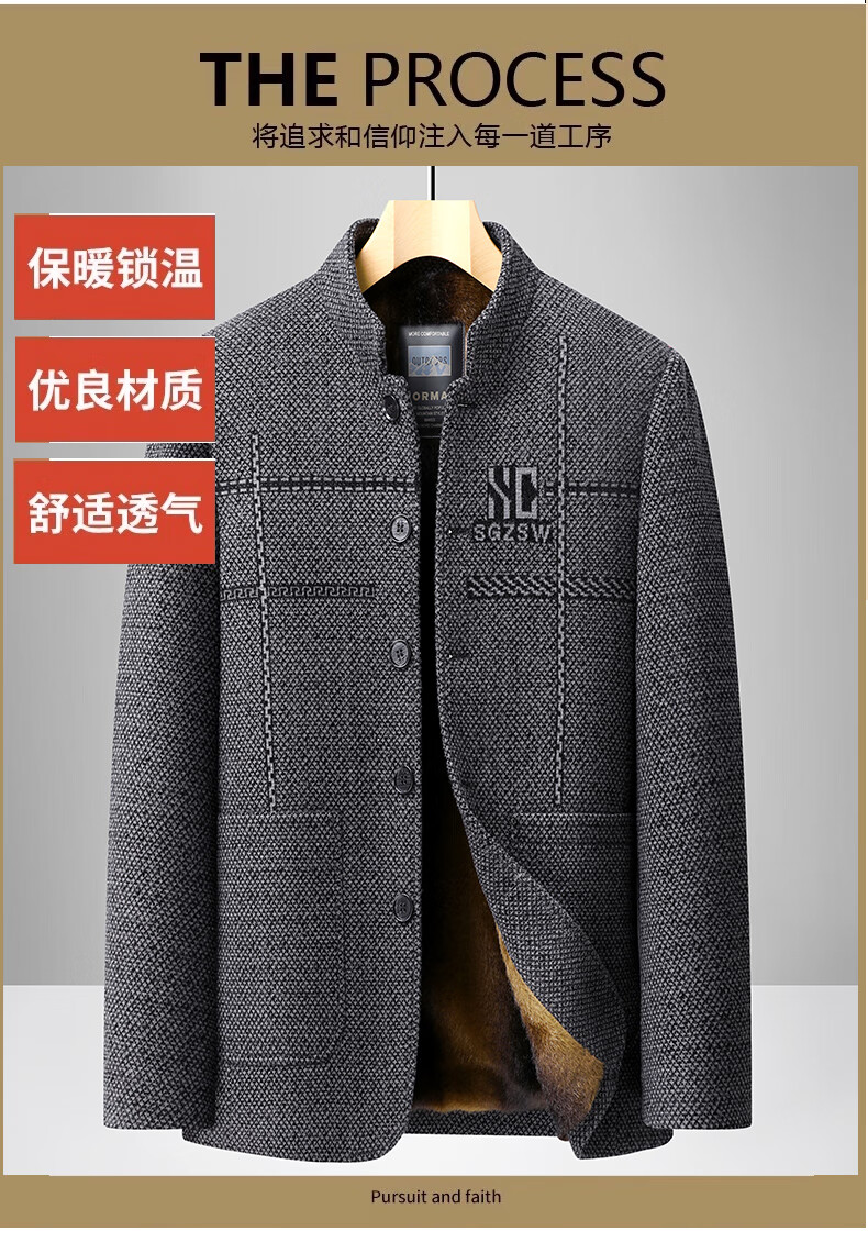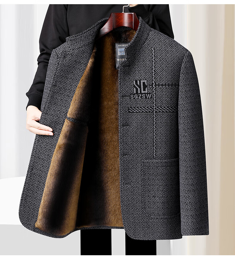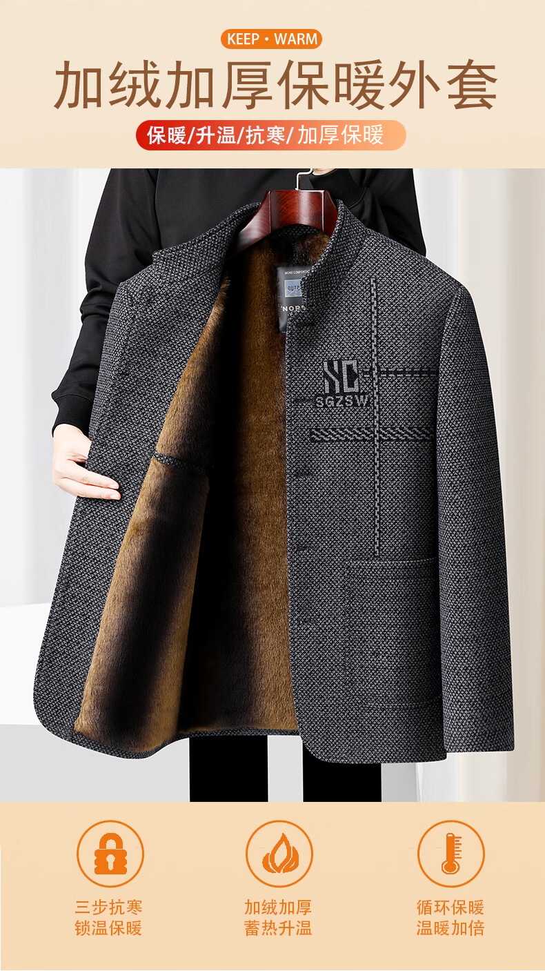 Dad chenille jacket men's velvet thickened middle-aged and elderly woolen cotton jacket middle-aged men's winter clothing cotton clothes dark gray L 175 yards 110-125Jin Jin equals 0.5 kg