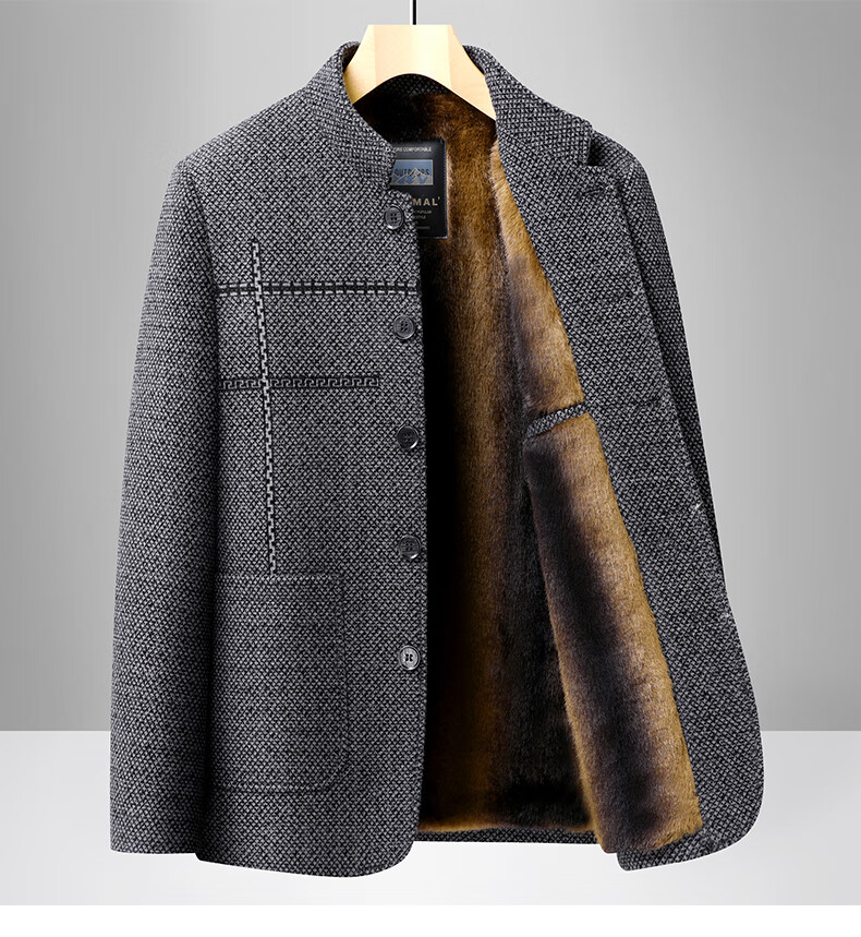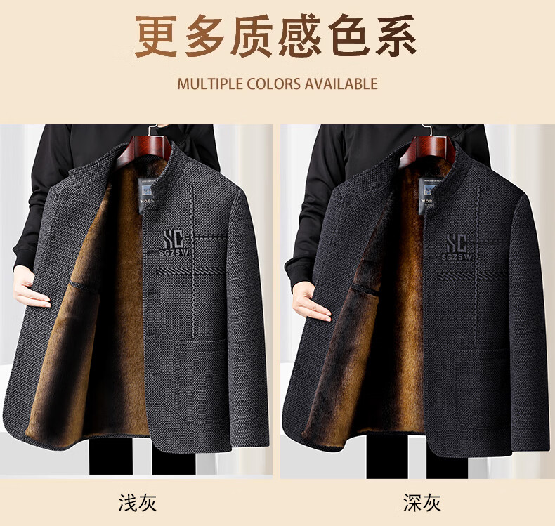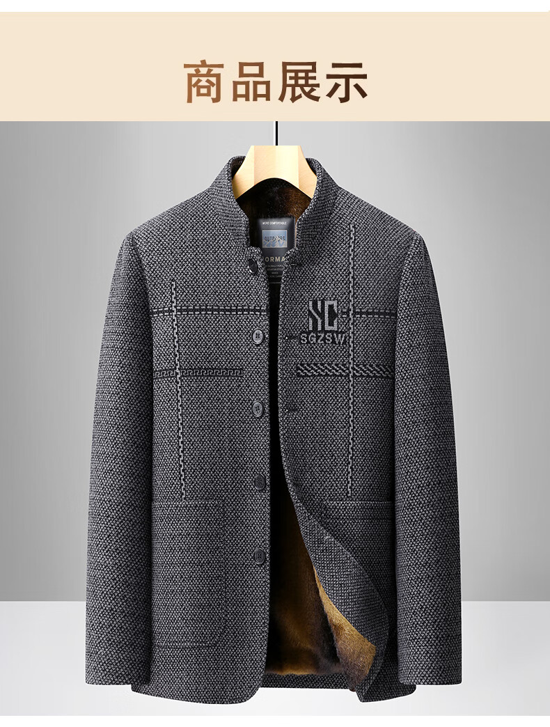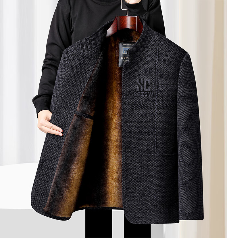 Dad chenille jacket men's velvet thickened middle-aged and elderly woolen cotton jacket middle-aged men's winter clothing cotton clothes dark gray L 175 yards 110-125Jin Jin equals 0.5 kg