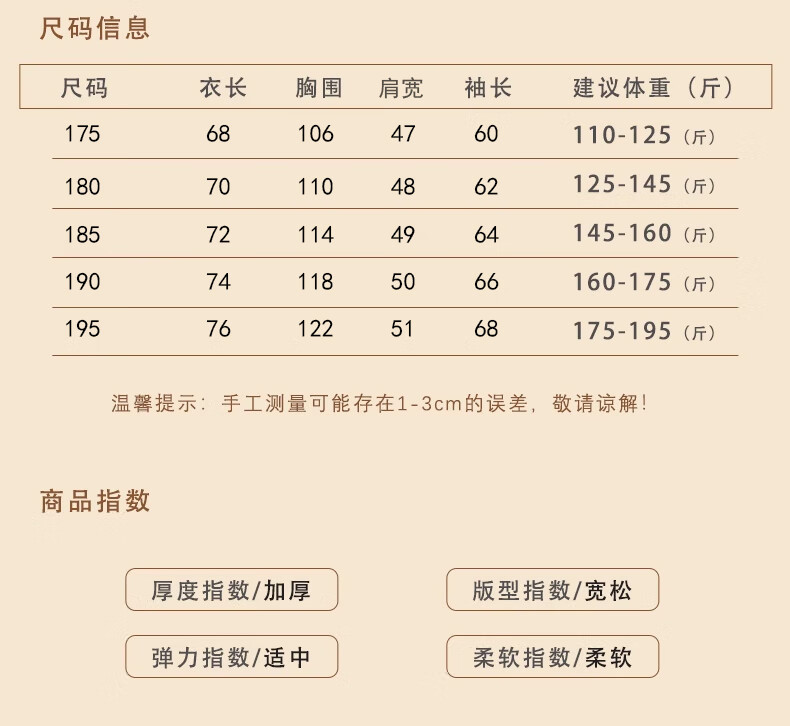 China (cm) 165 / 88-90 170 / 96-98 175 / 108-110 180 / 118-122 185 / 126-130