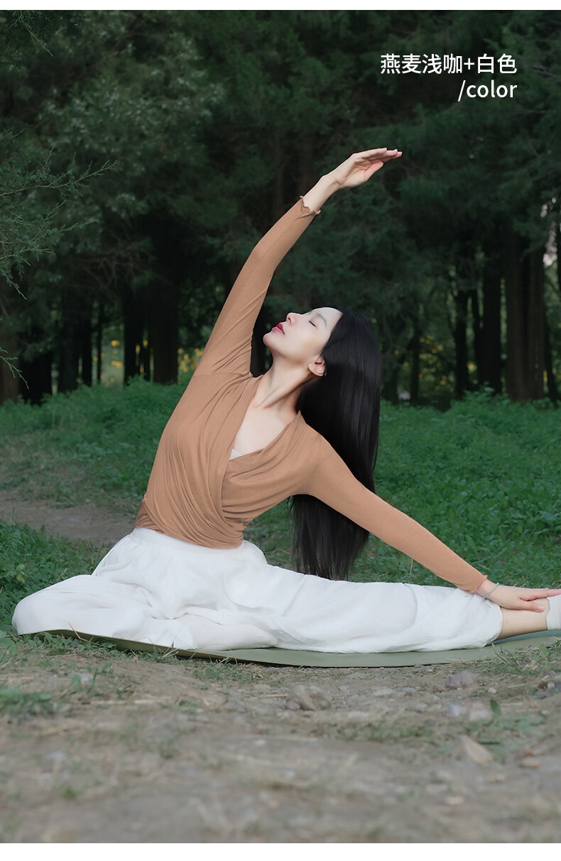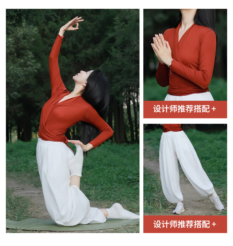 Meesu Yoga Suit Women's Outerwear Loose Casual Autumn and Winter Thickened Bloomers Sports Fitness Pilates Dance Dry Rose Long Sleeve + White (Third Layer Thickened Pants, Very Warm) S