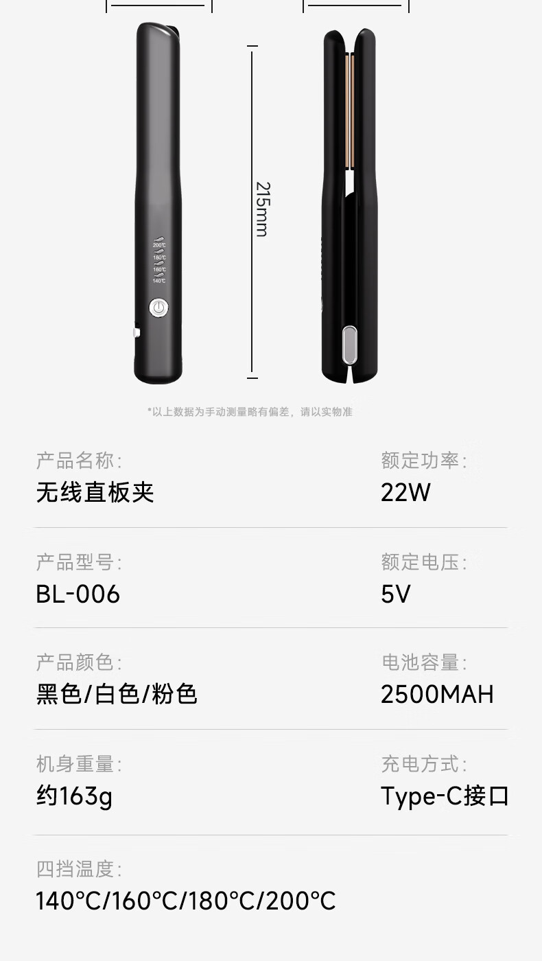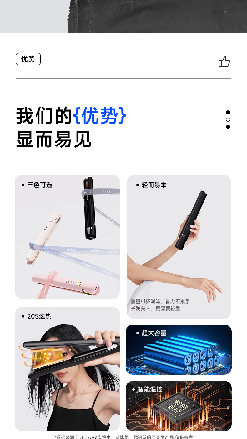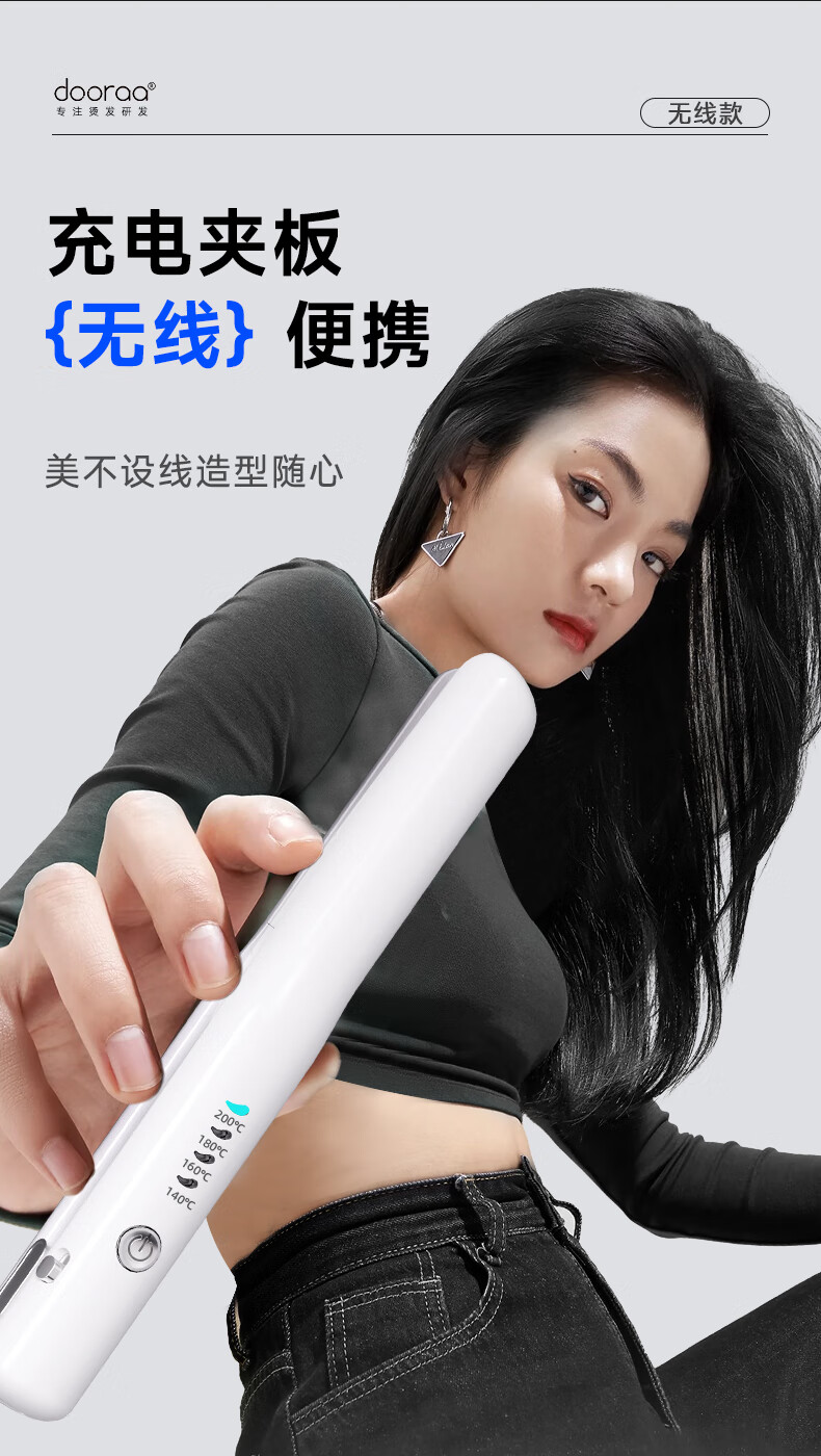 Dooraa wireless straight splint, men's and women's straight hair charging curling iron, dual-purpose small splint, negative ion bangs, mini perm, straightening splint, artifact curling iron, top model - white, negative ion hair care, wireless portable/4-level temperature control dormitory available