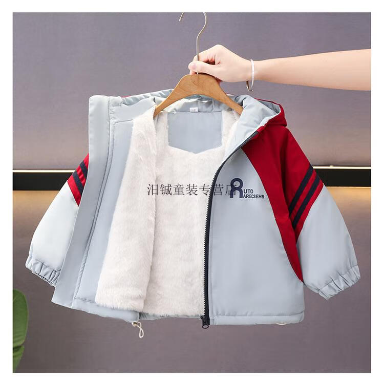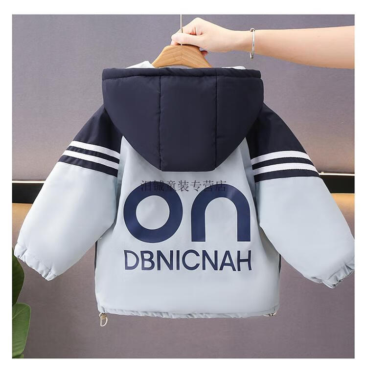 G.duck boys' autumn and winter velvet jacket 2025 new handsome baby winter cotton coat children's thickened parka cotton coat trend navy blue 100 CM
