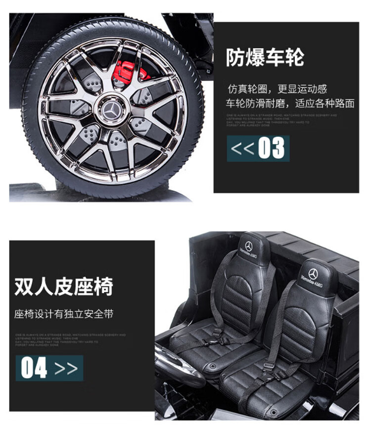 Cool Sun Mercedes-Benz Big G children's electric car four-wheel mobile charging toy car can sit two children with remote control car white dual drive + plastic wheels four drive