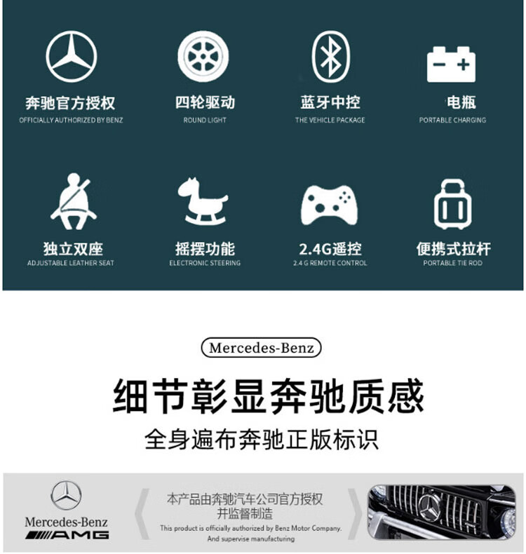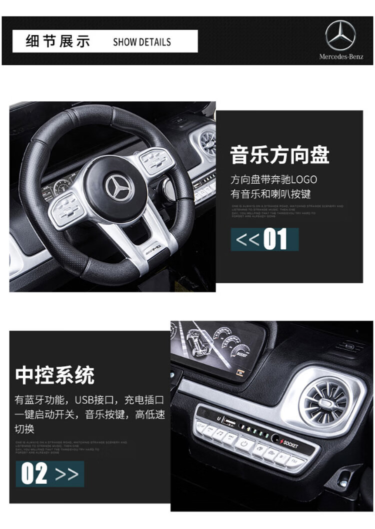 Cool Sun Mercedes-Benz Big G children's electric car four-wheel mobile charging toy car can sit two children with remote control car white dual drive + plastic wheels four drive