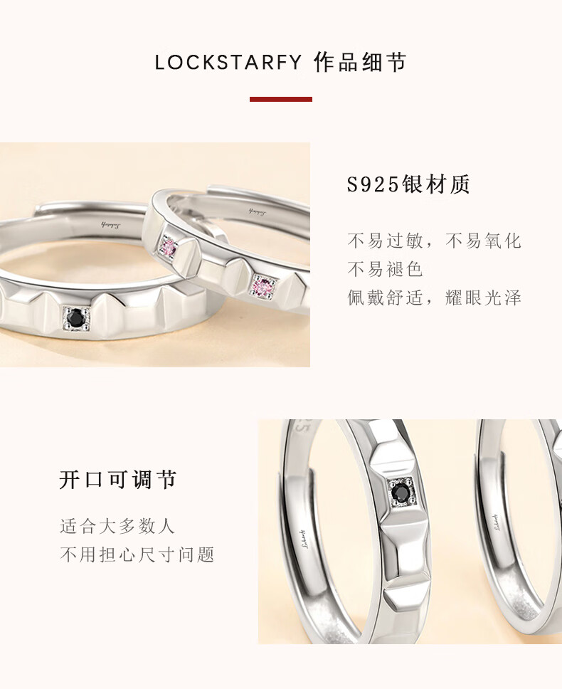 LOCKSTARFY French brand first love couple ring for girlfriend and wife love gift adjustable high-end ring LJY00341 red brand gift box