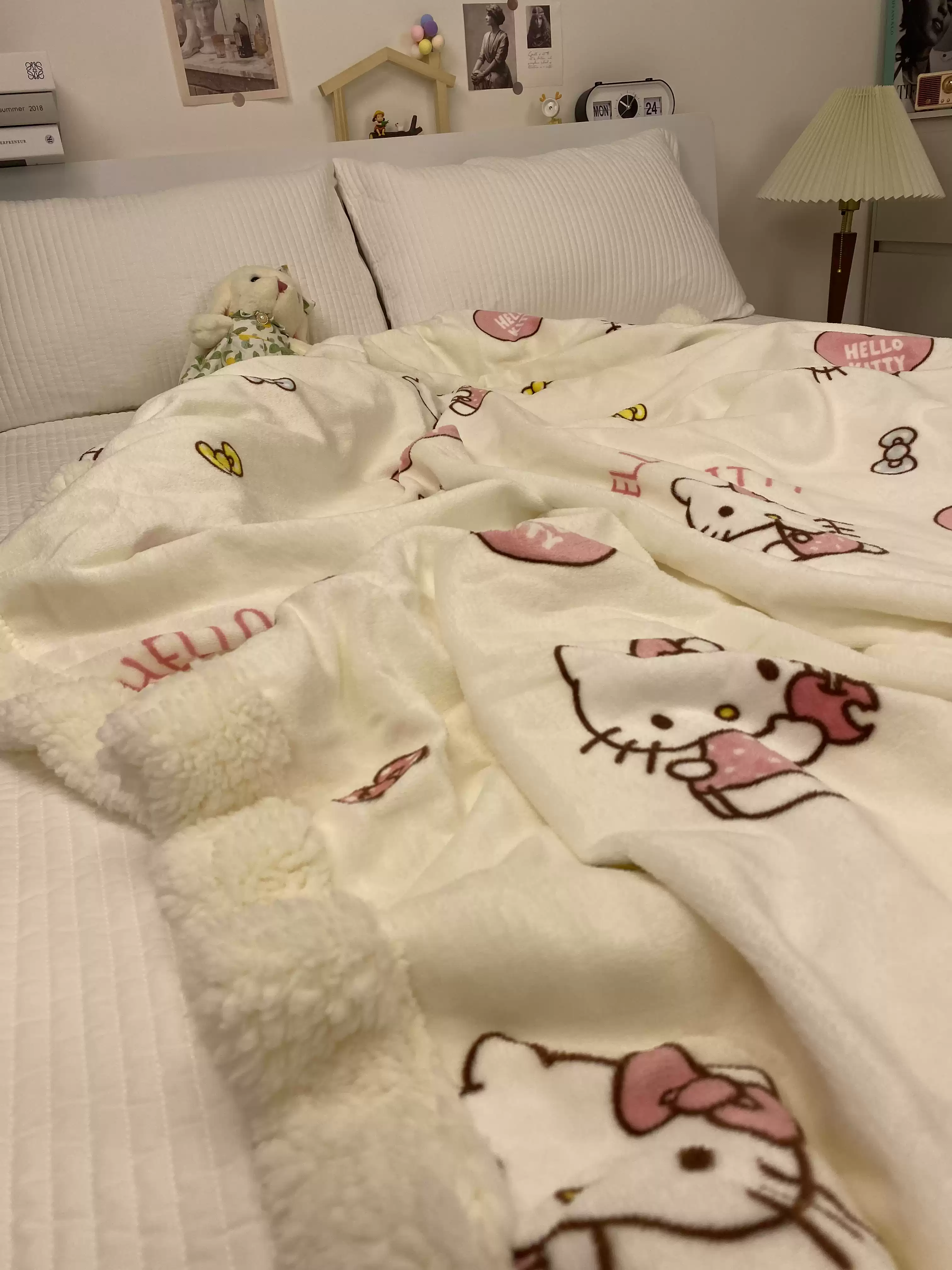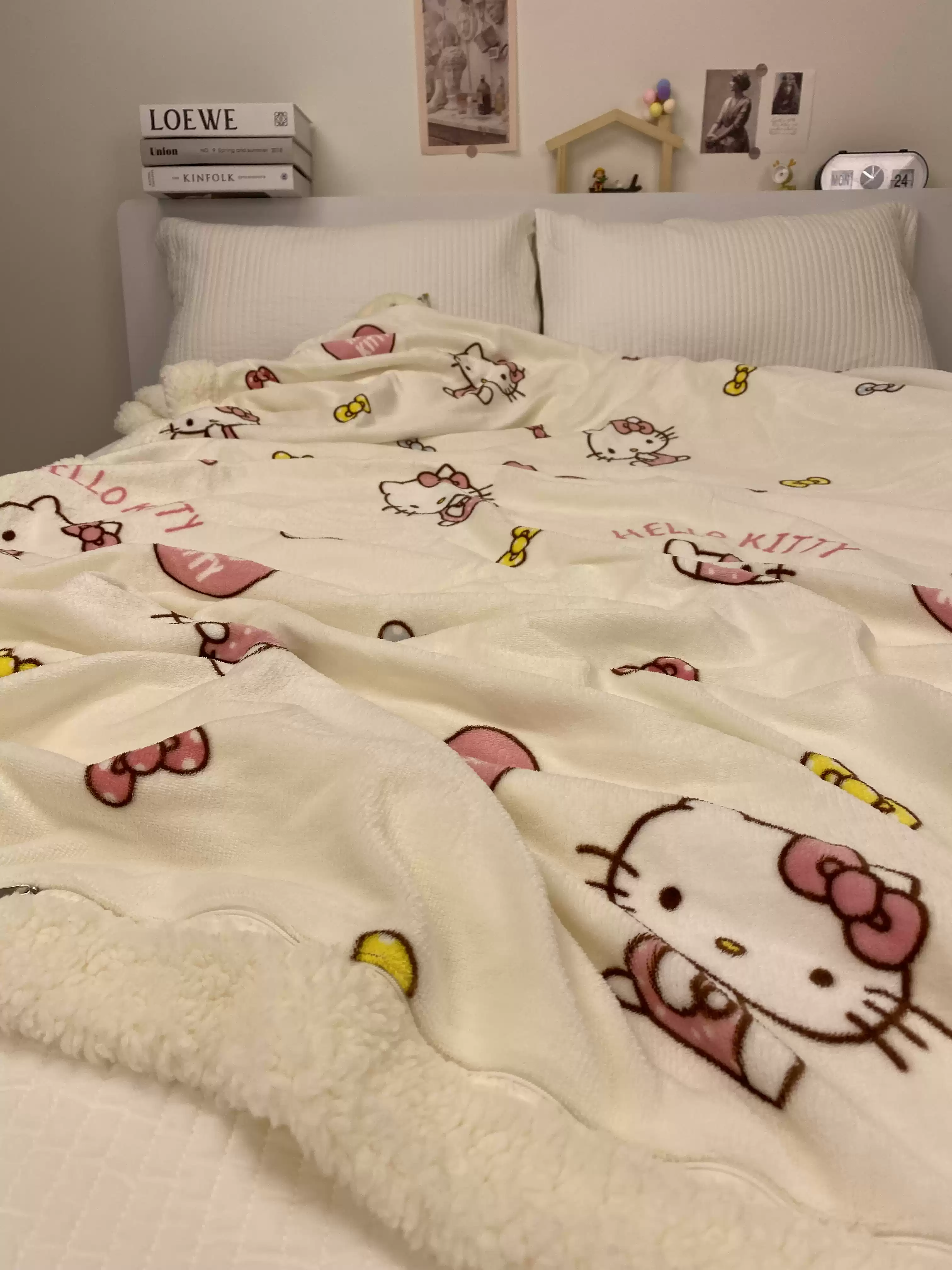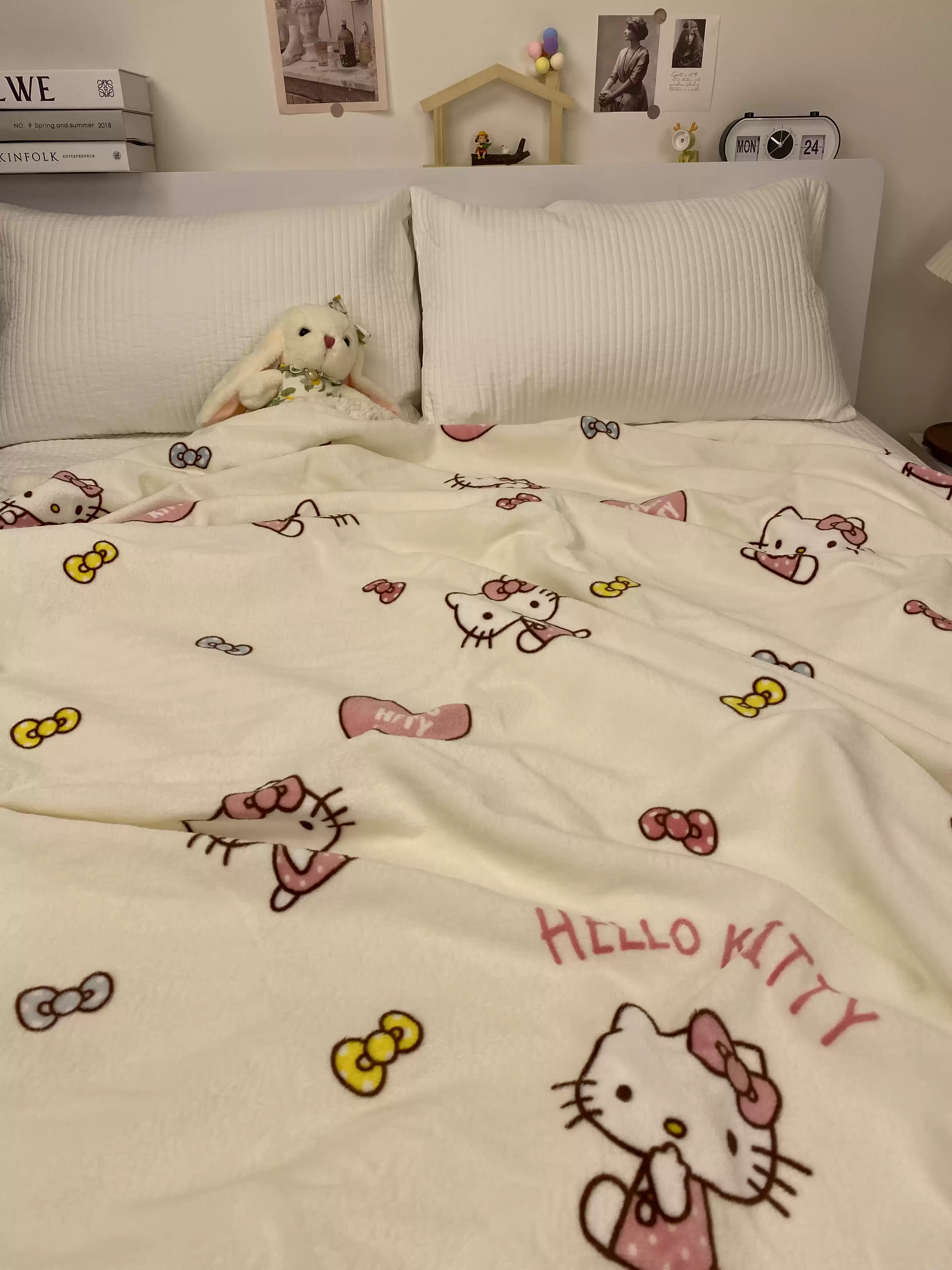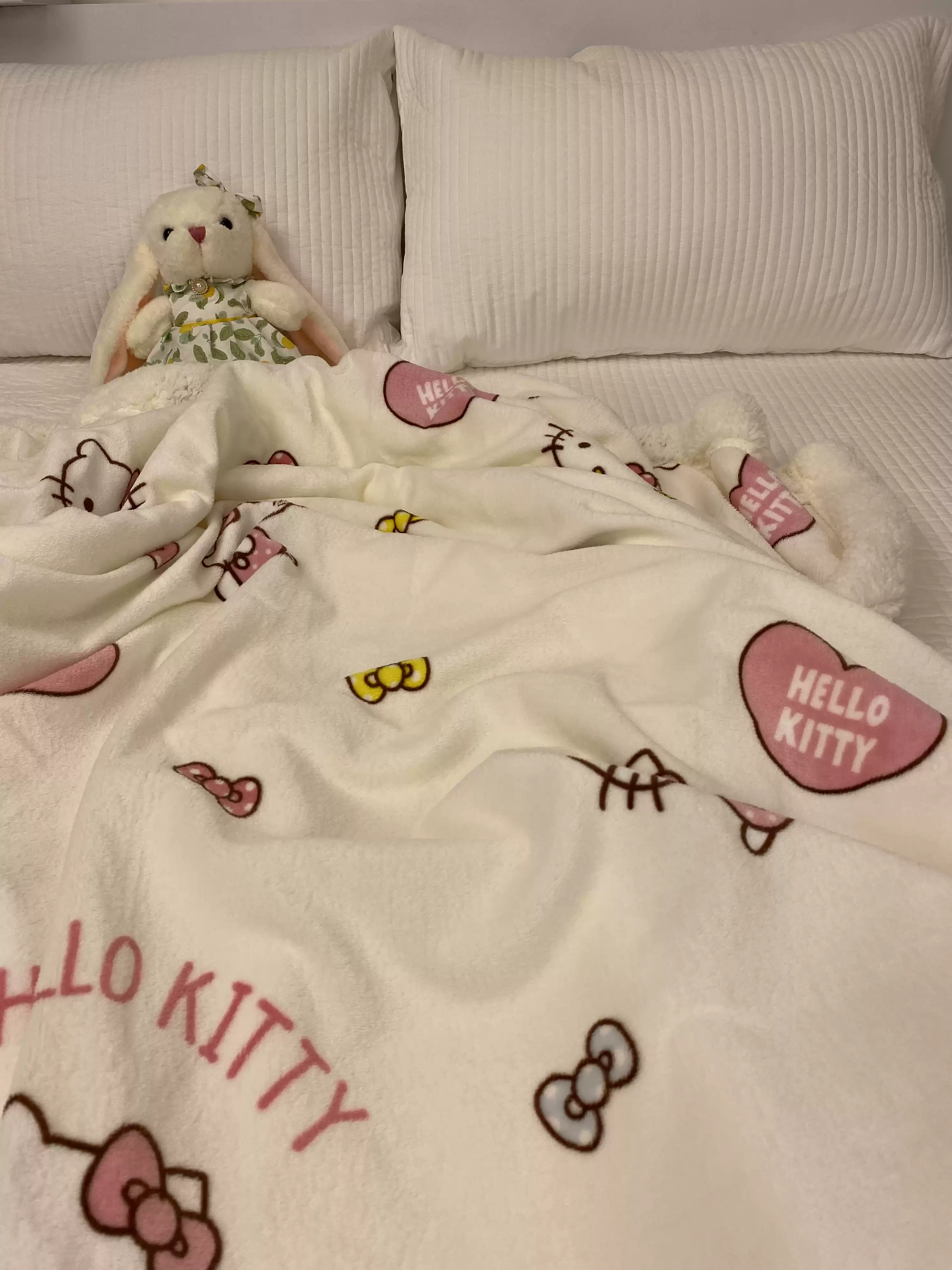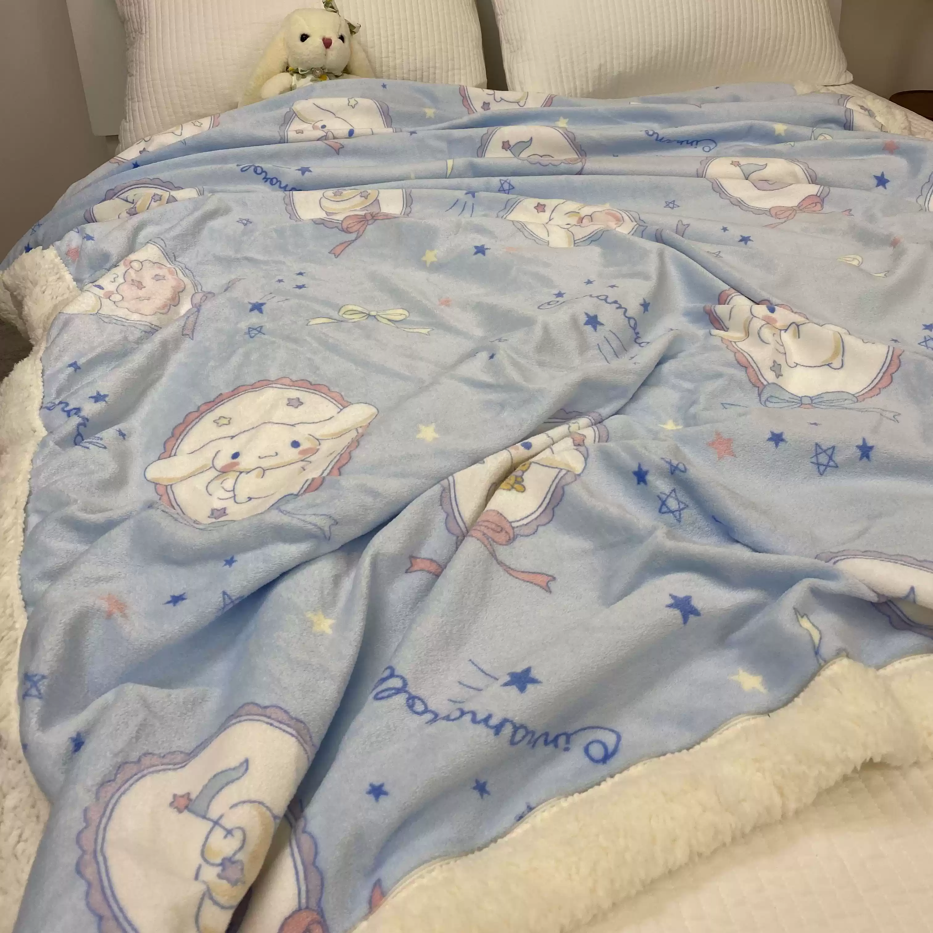 RSRDDY winter authentic cute loving kitty cat lamb velvet blanket thickened milk coral velvet blanket sofa cover star cinnamon dog single 150X200cm with zipper can be used as a quilt cover