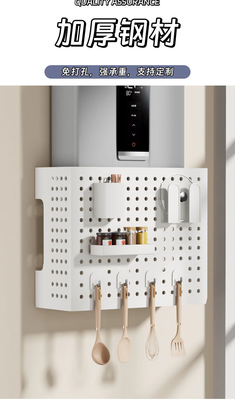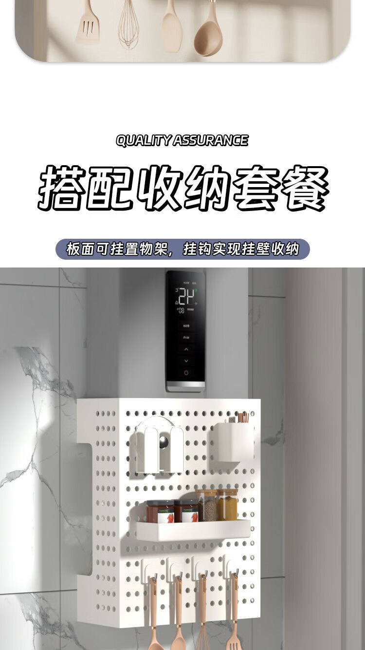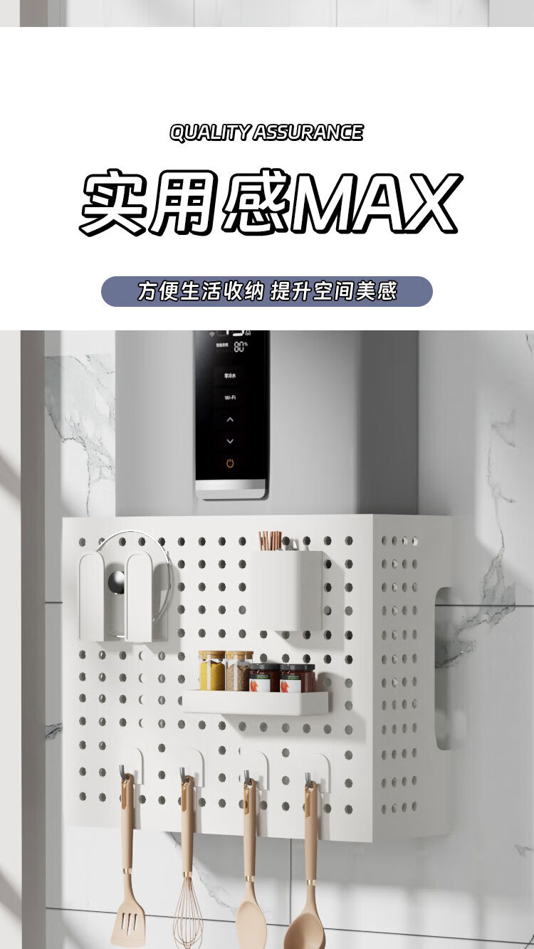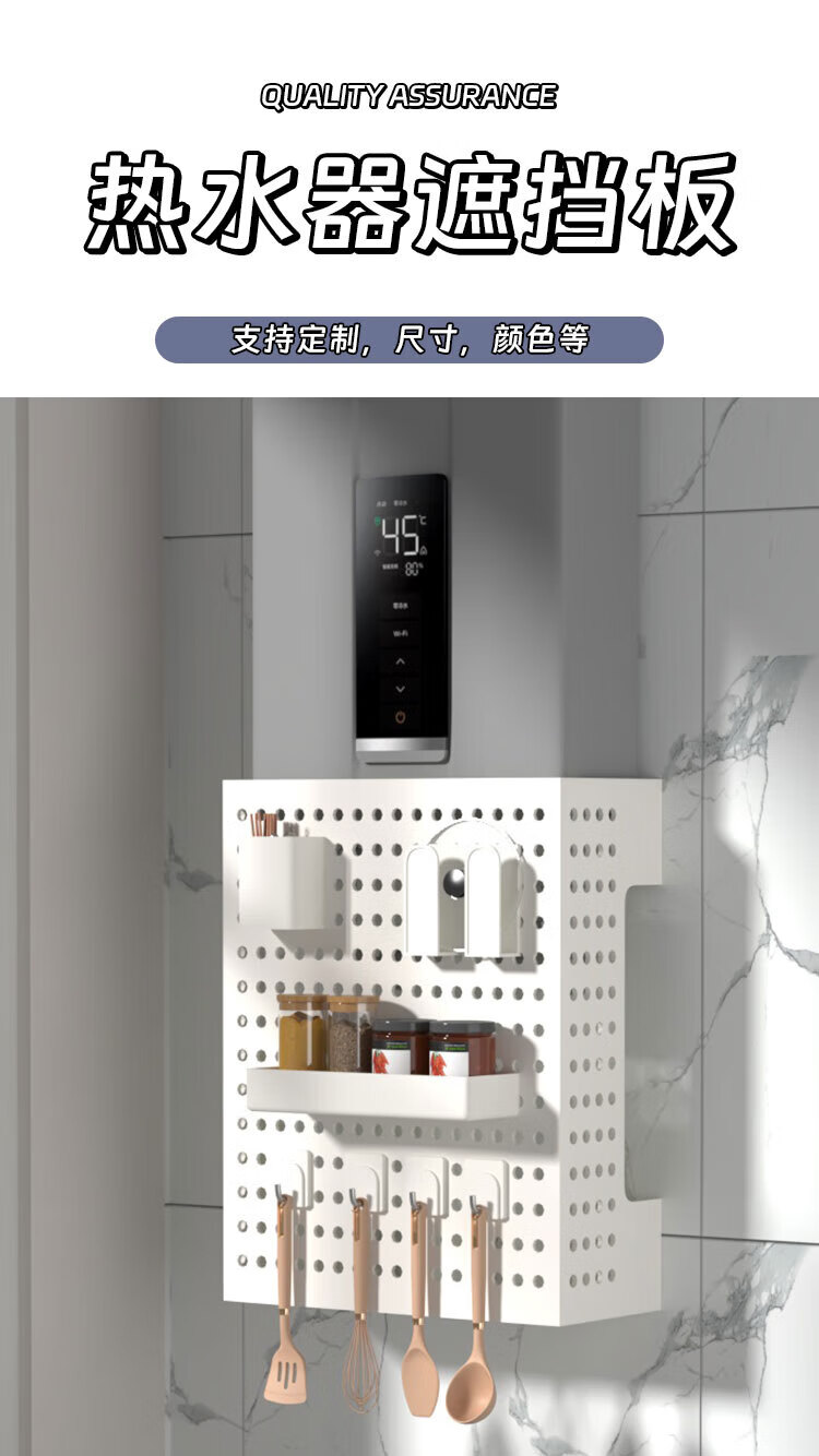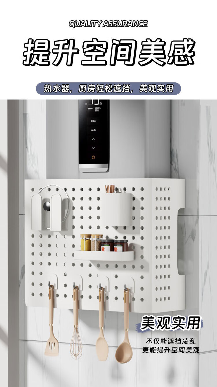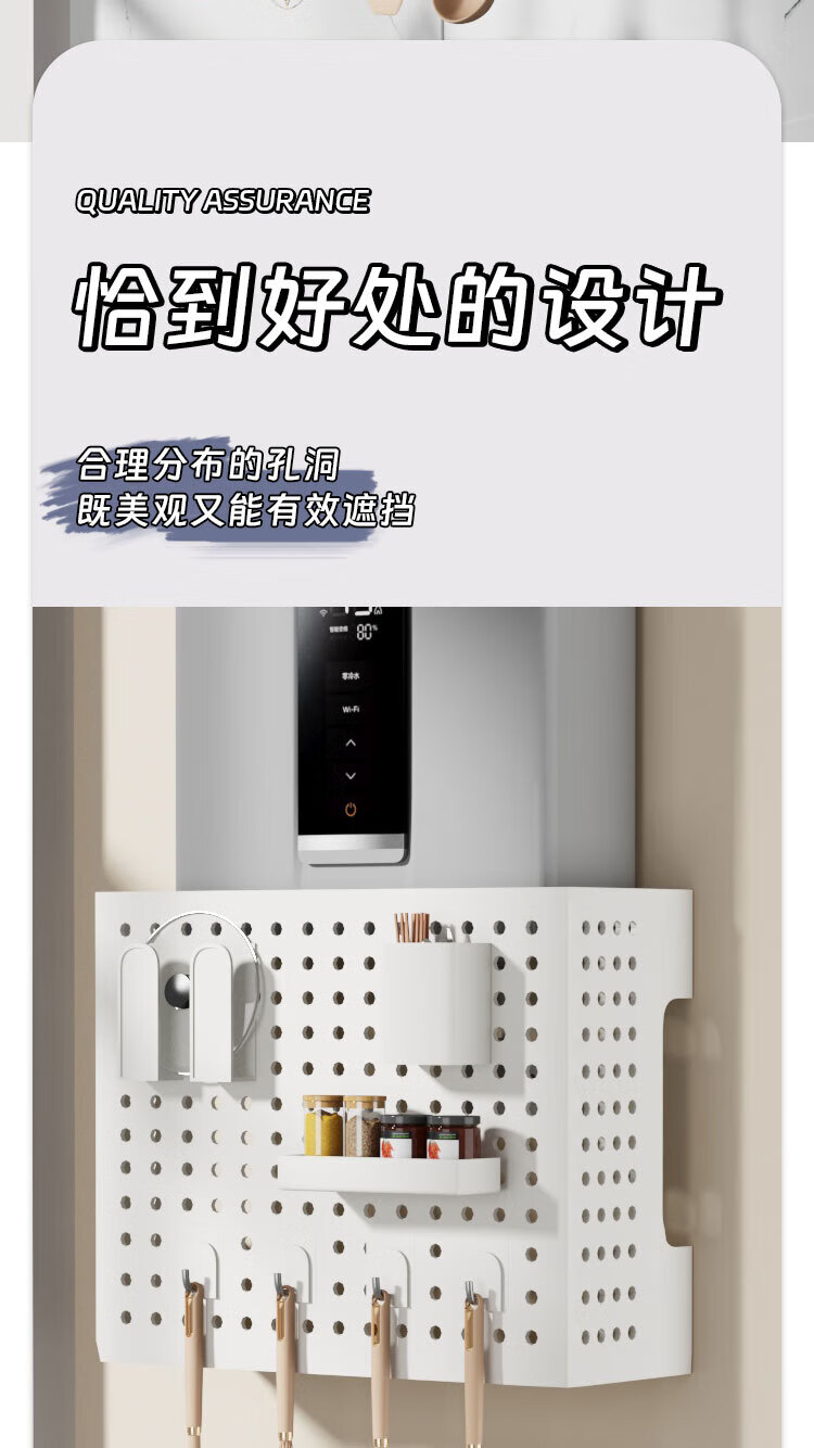 Ke Xiangtu water heater cover gas pipe decorative hole board kitchen wall hanging bottom cover plate boiler stove storage rack white 35*30*20cm free hooks*12