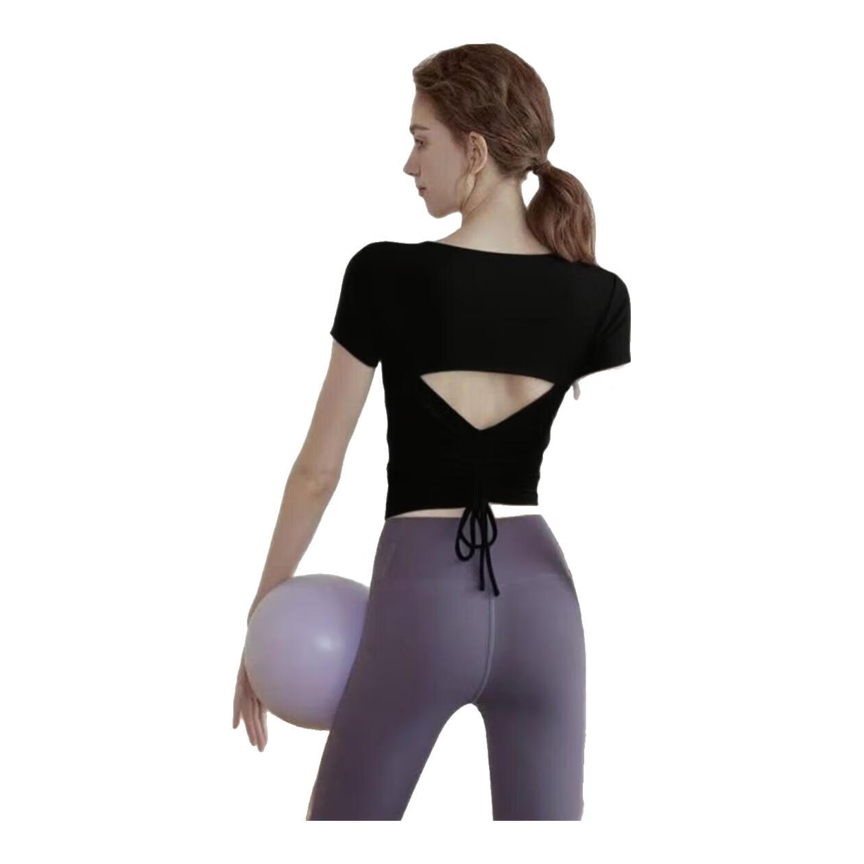 Weightlifting Fairy Backless Sports Top Women's Fixed Bra Pad Beautiful Back Pilates Yoga Wear Short Sleeve Fitness Wear T-Shirt J3# Off-white S Recommendation 95Jin Jin equals 0.5kg