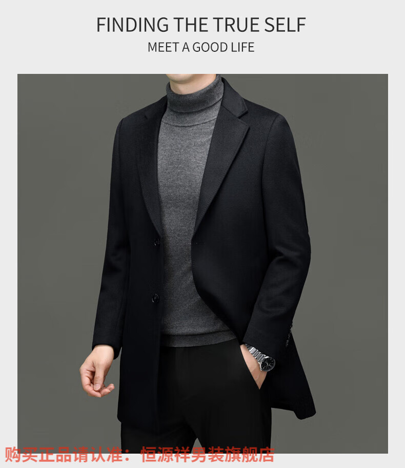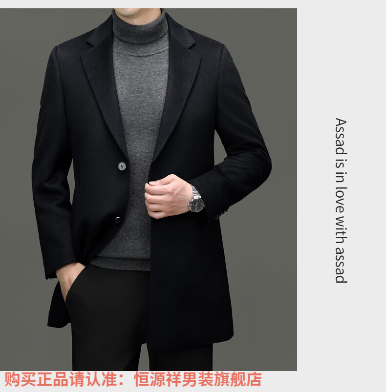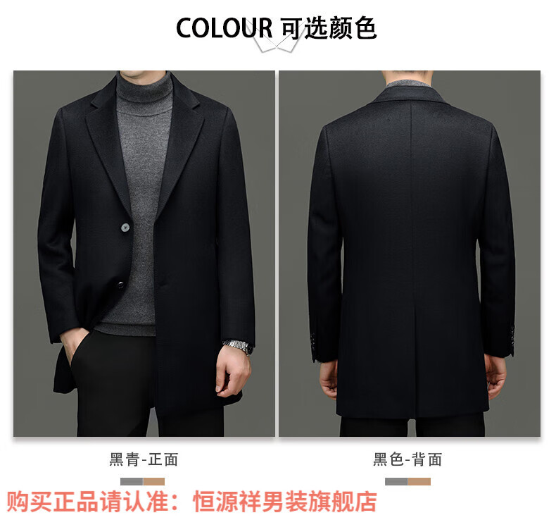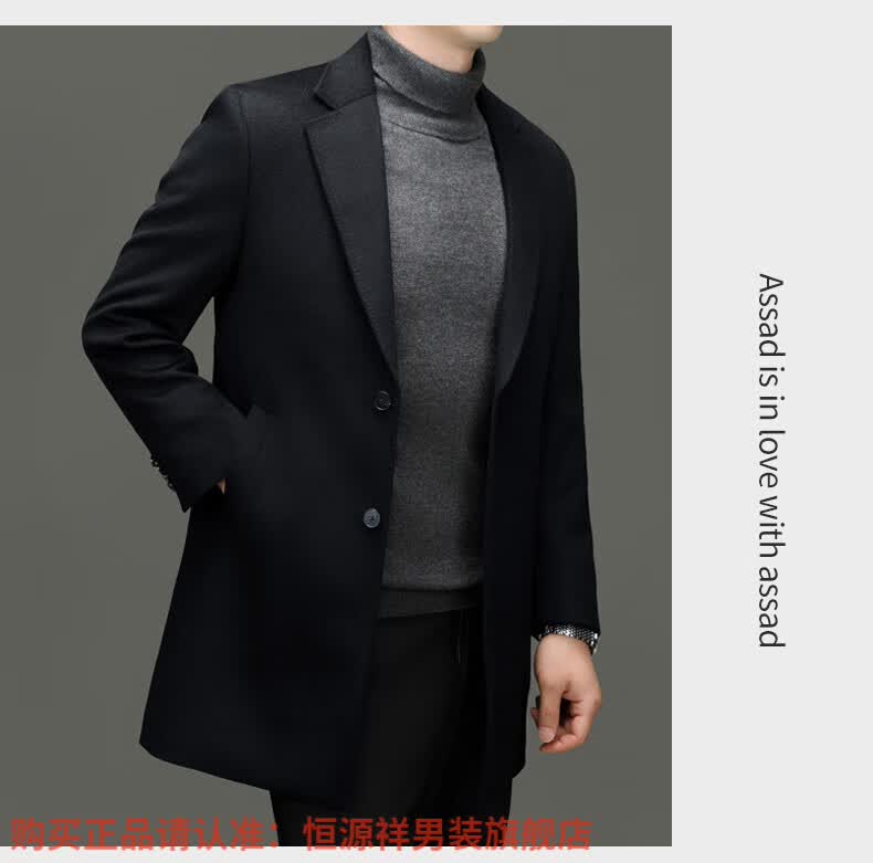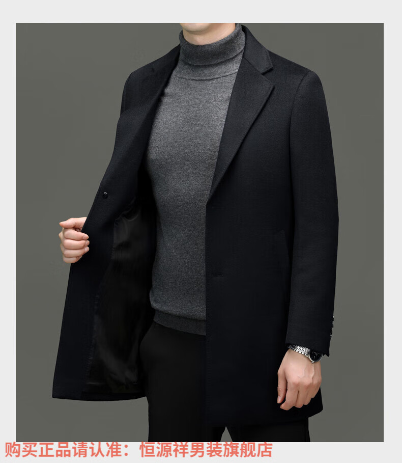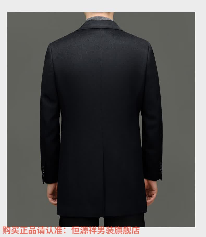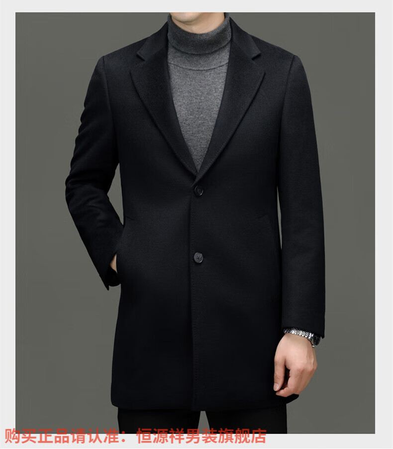 Hengyuan Xiangding luxury 100% cashmere coat men's medium-length suit collar woolen windbreaker autumn and winter business casual woolen coat black green L 175