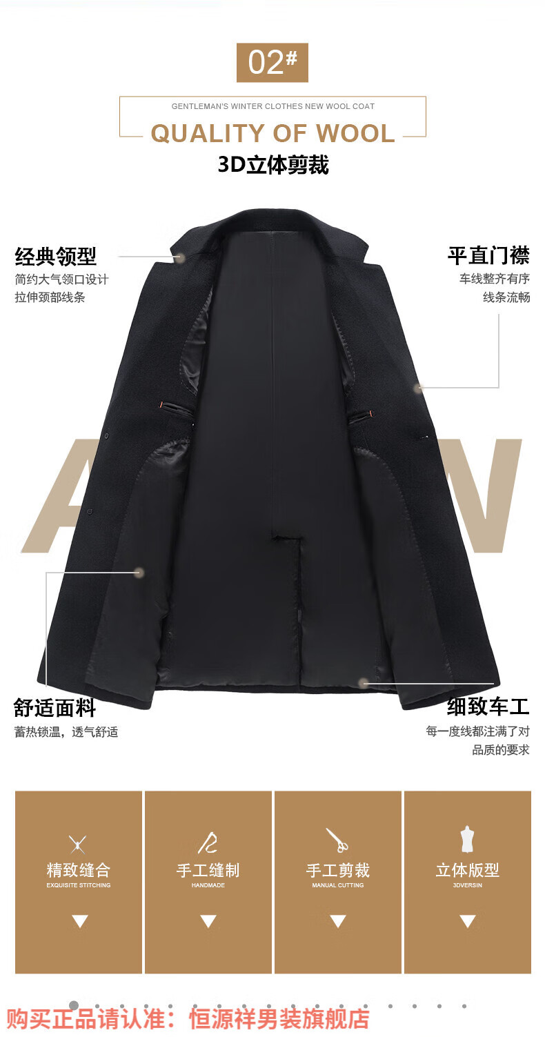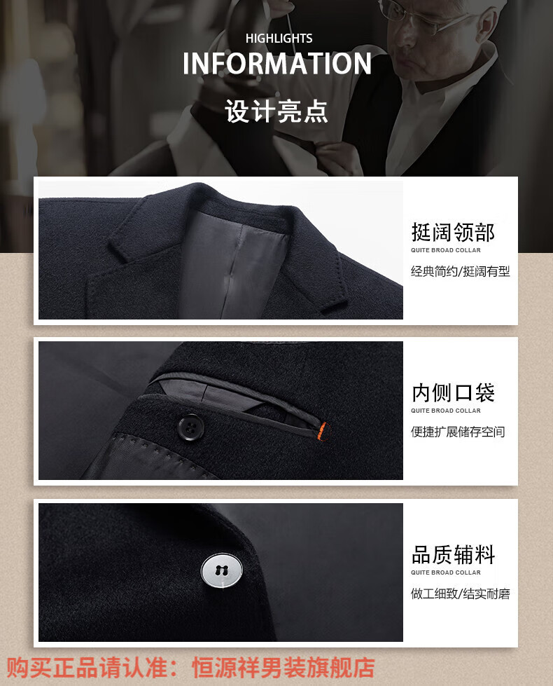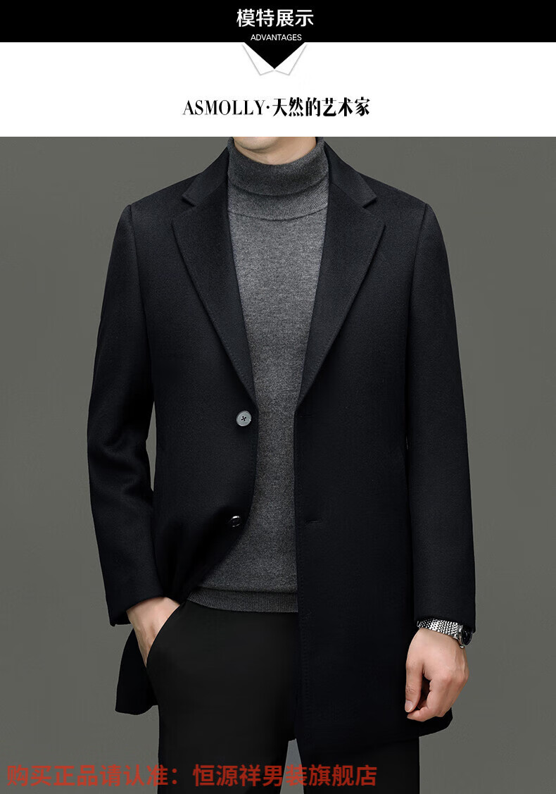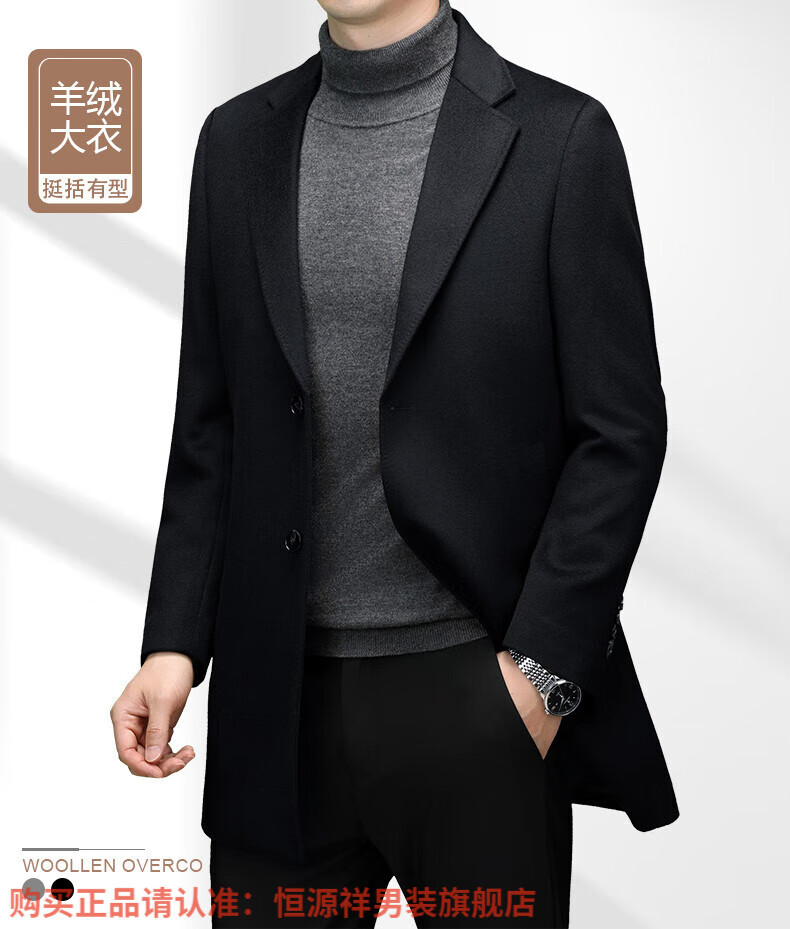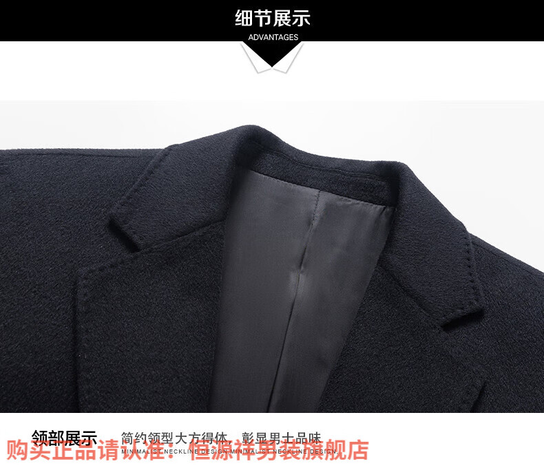 Hengyuan Xiangding luxury 100% cashmere coat men's medium-length suit collar woolen windbreaker autumn and winter business casual woolen coat black green L 175