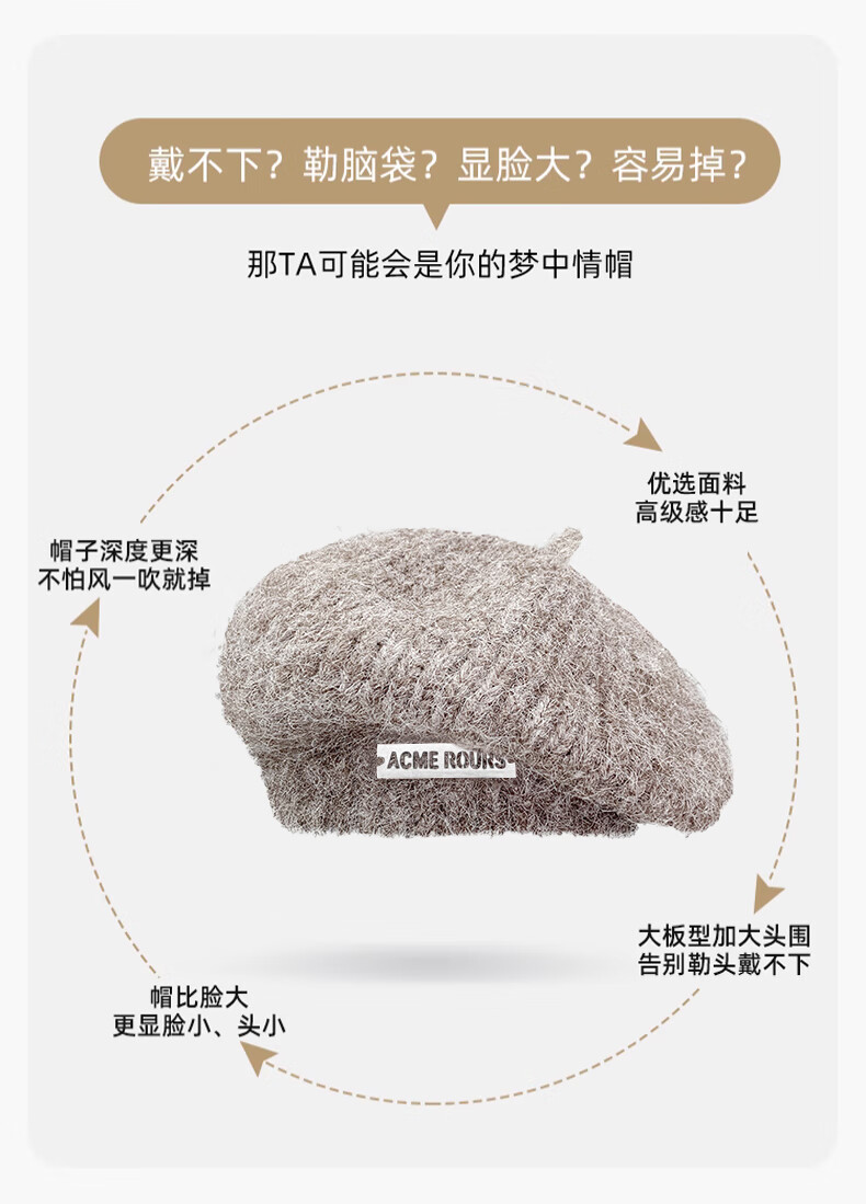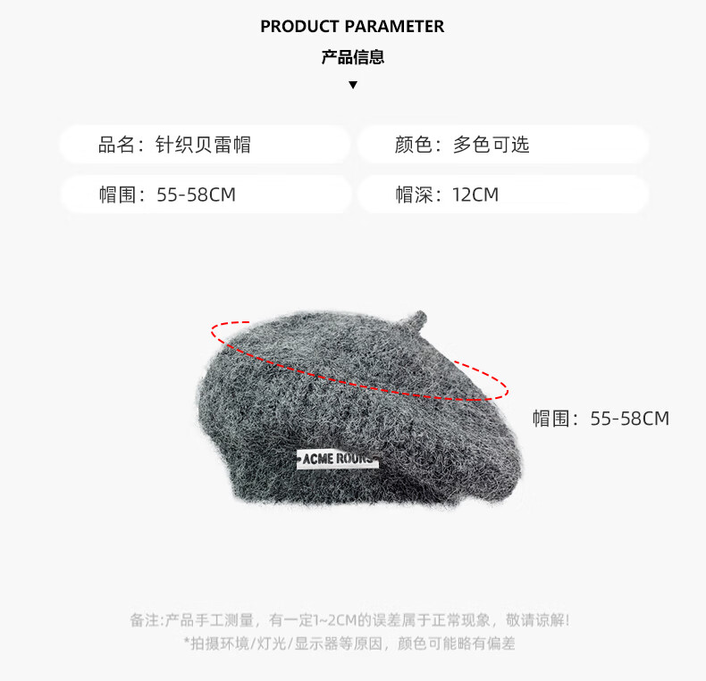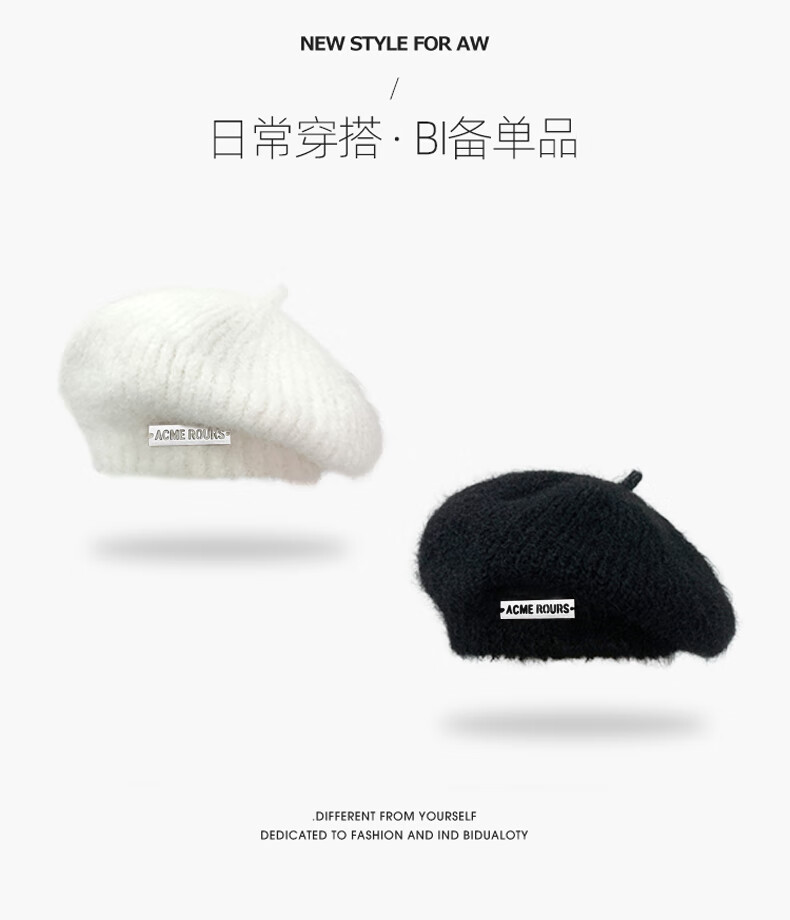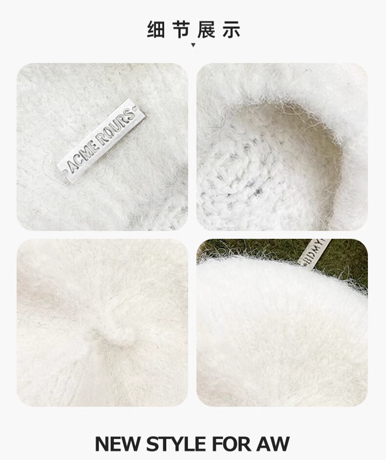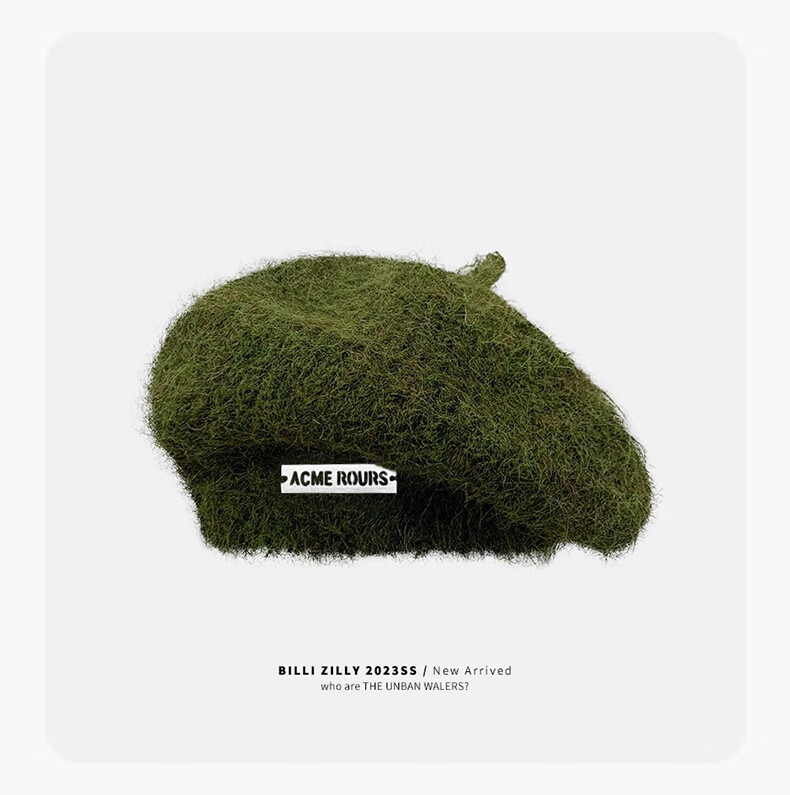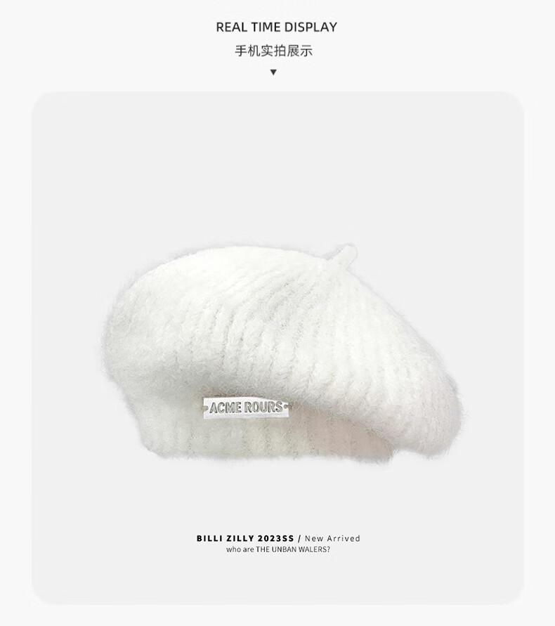 Вязаный берет с железной этикеткой из мохера, женская осенне-зимняя теплая плюшевая шапка художника, открывающая лицо, маленькая шерстяная шапка цвета хаки, M, один размер (5559c)