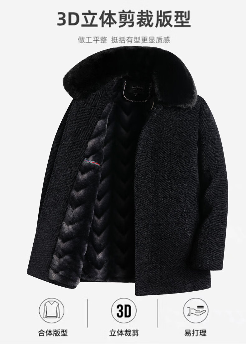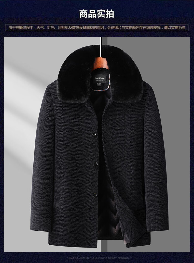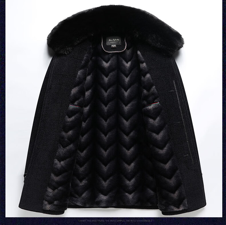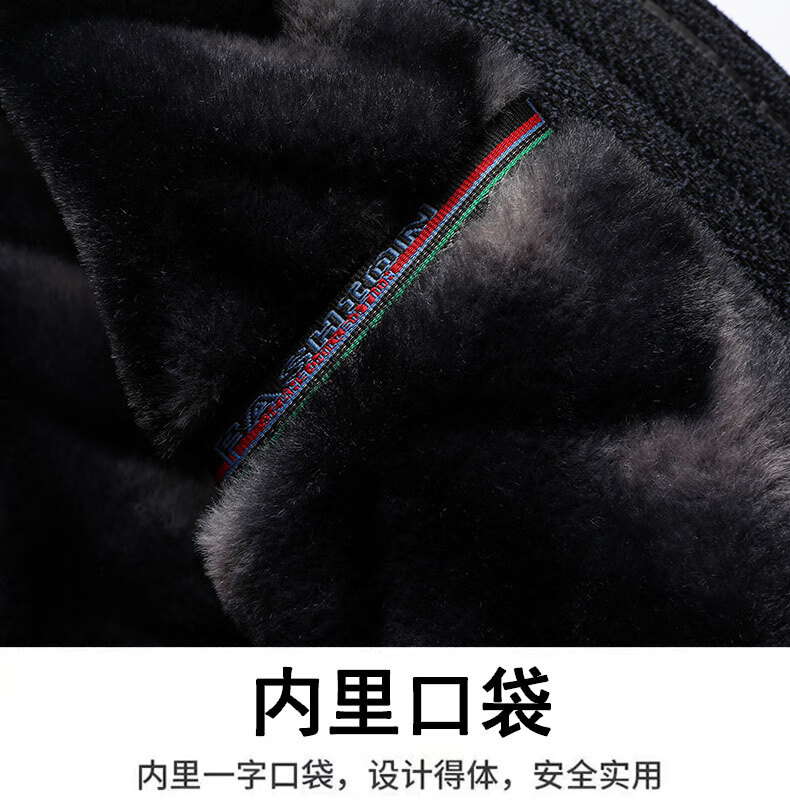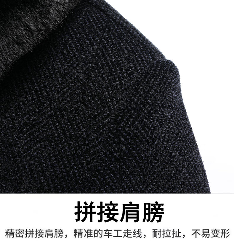 Middle-aged and elderly men's winter coat outer suit for dad 50 years old 60 years old grandpa plus velvet thickened 70 elderly cotton clothes 80 cotton clothes large fur collar black blue 185/XXL suitable for 135-150Jin Jin equals 0.5 kg one size