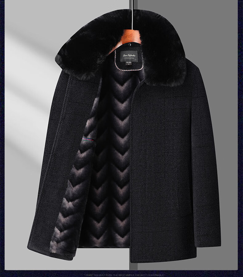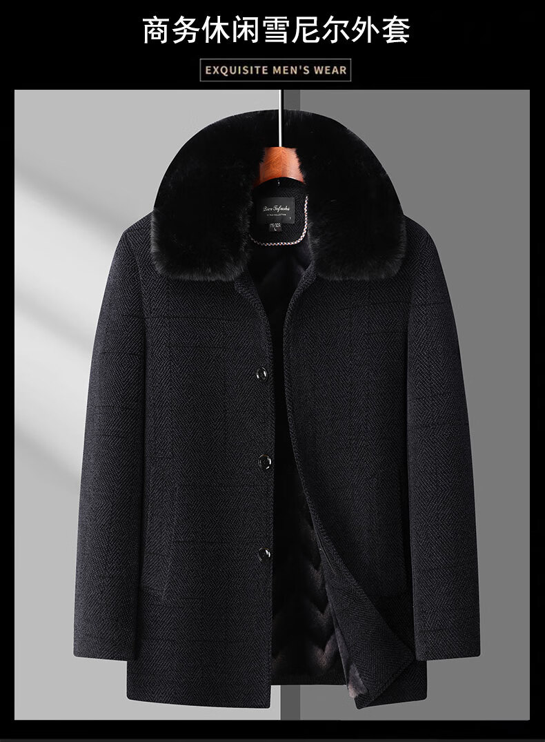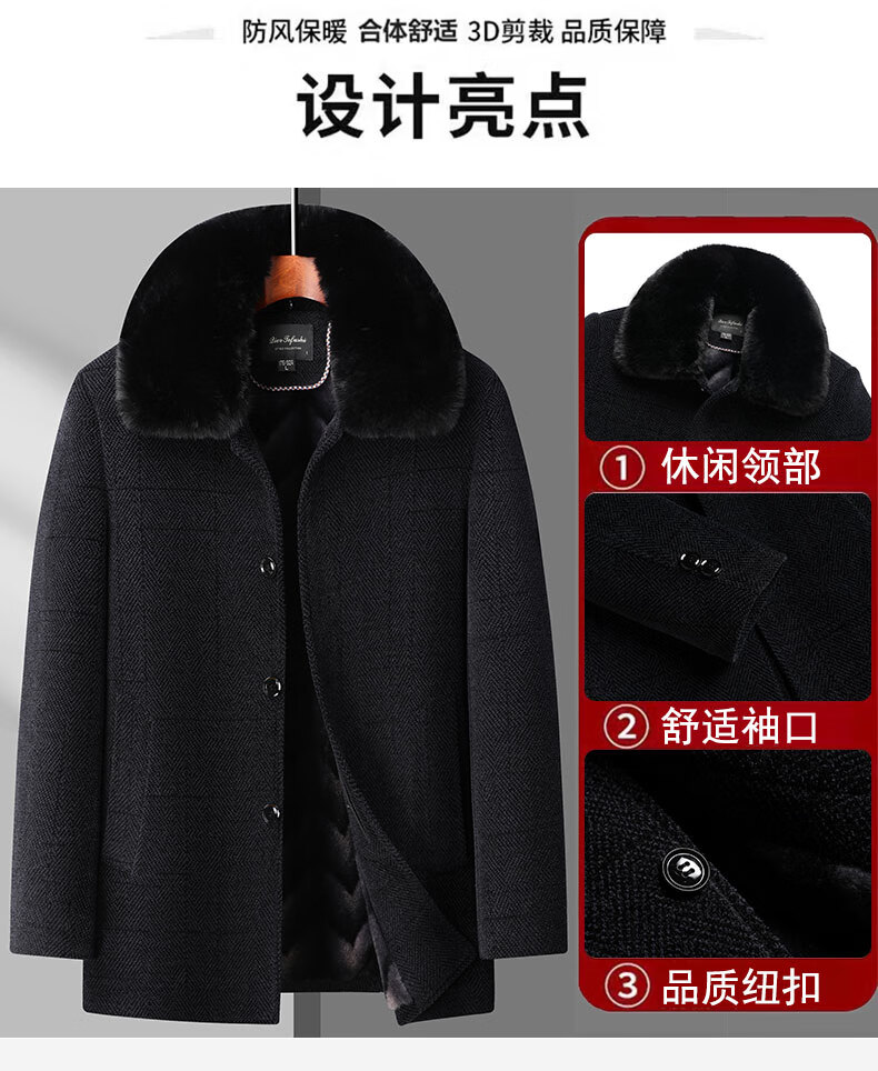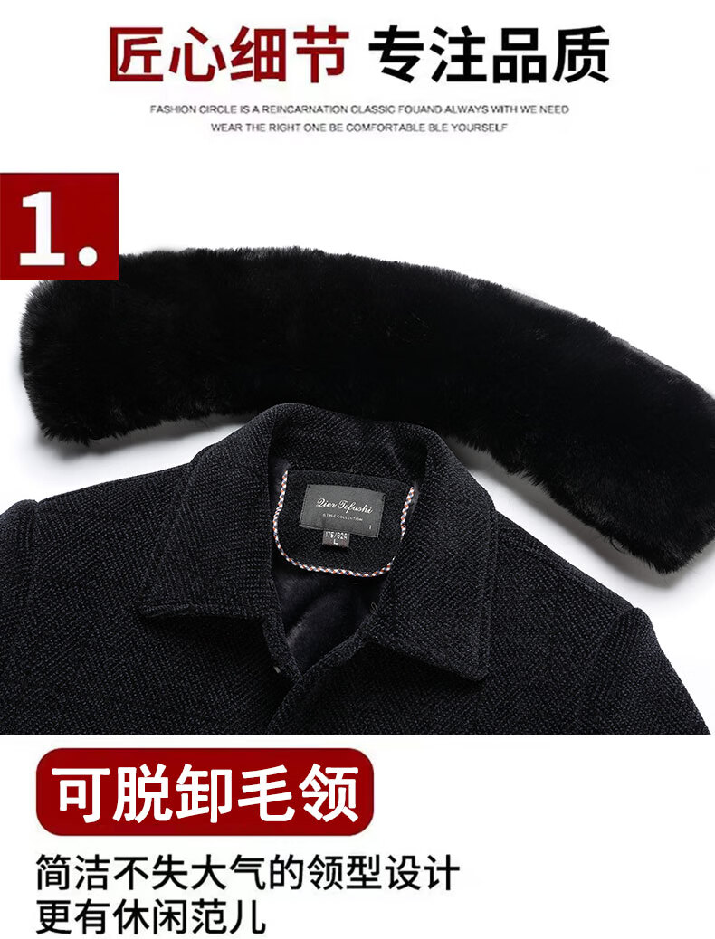 Middle-aged and elderly men's winter coat outer suit for dad 50 years old 60 years old grandpa plus velvet thickened 70 elderly cotton clothes 80 cotton clothes large fur collar black blue 185/XXL suitable for 135-150Jin Jin equals 0.5 kg one size