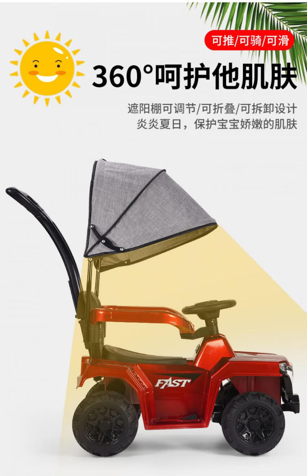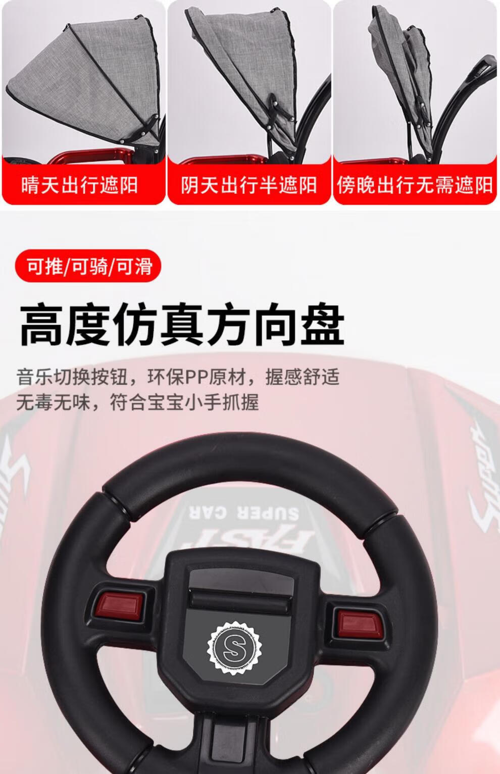 MDNG electric twist car large four-wheel push car charging remote control car children and adults can sit in the new model and can go out Chinese red electric model + hand push can control the direction
