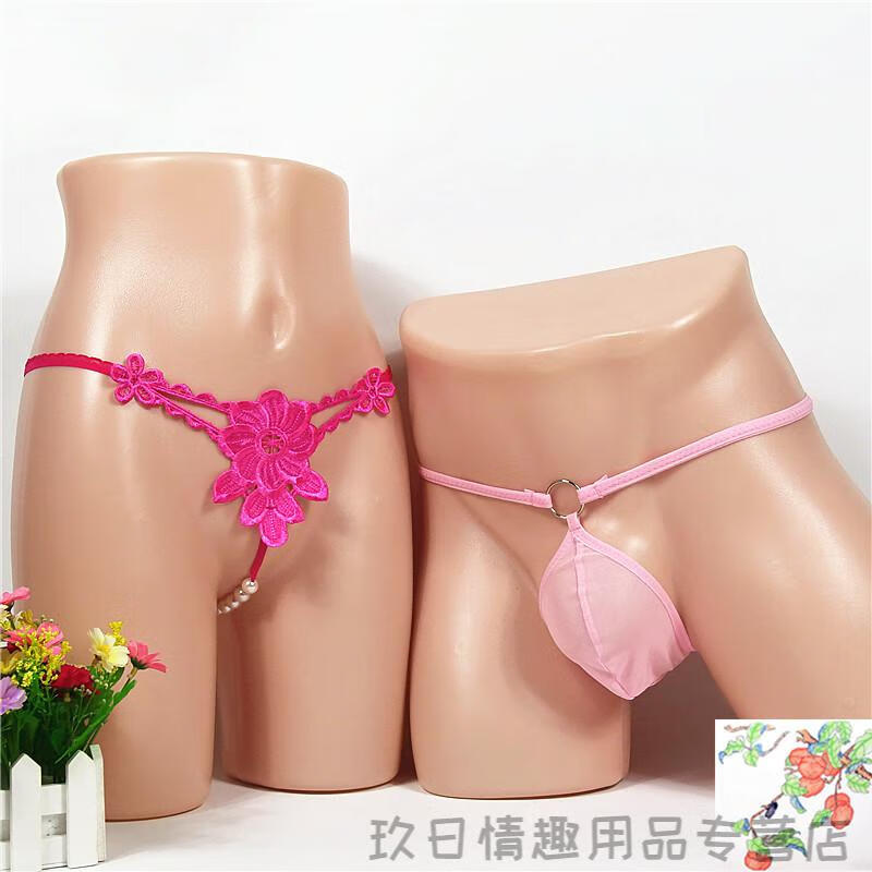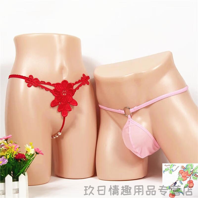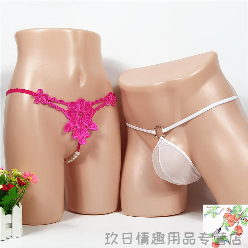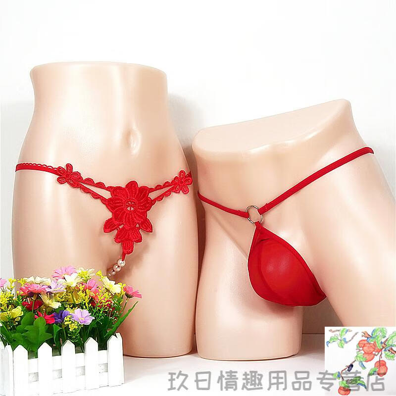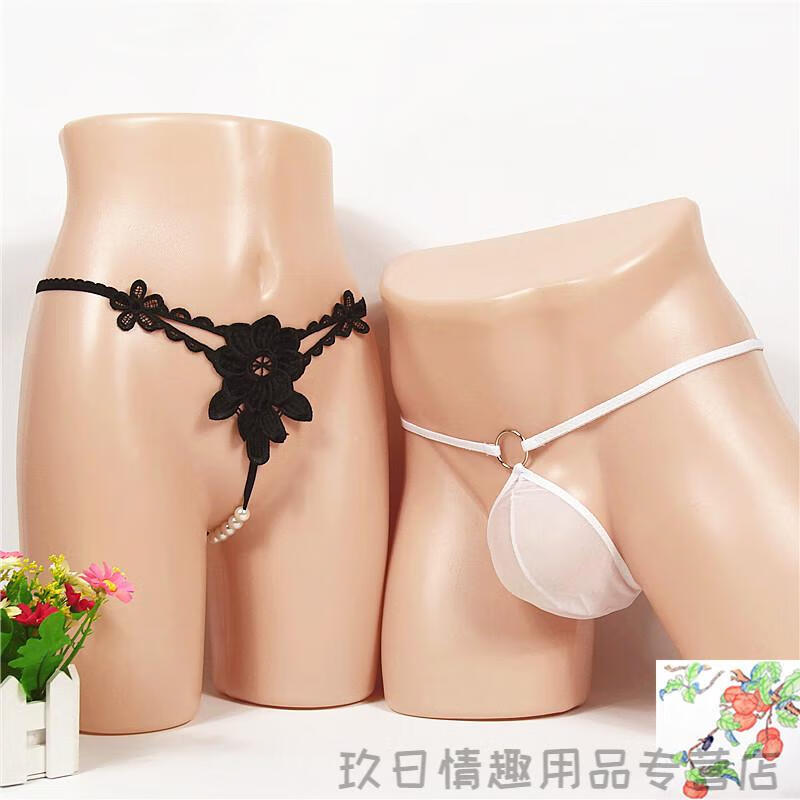 Men and women sexy couple underwear set underwear 2023 new sexy mesh fully transparent thong passion beads black + black