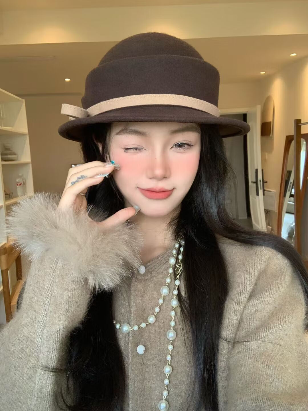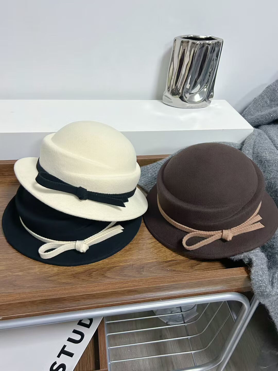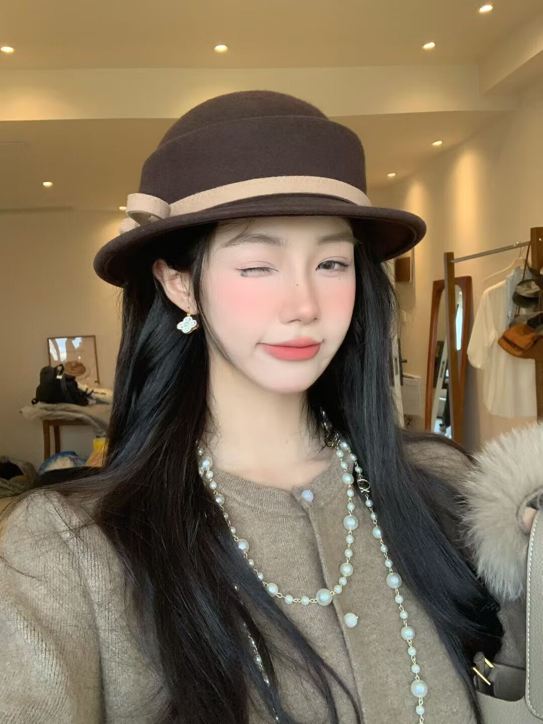 Zhi Yunyan Hepburn style woolen beret women's autumn and winter French retro basin hat wool top hat elegant temperament bow decoration coffee color M 56-58cm