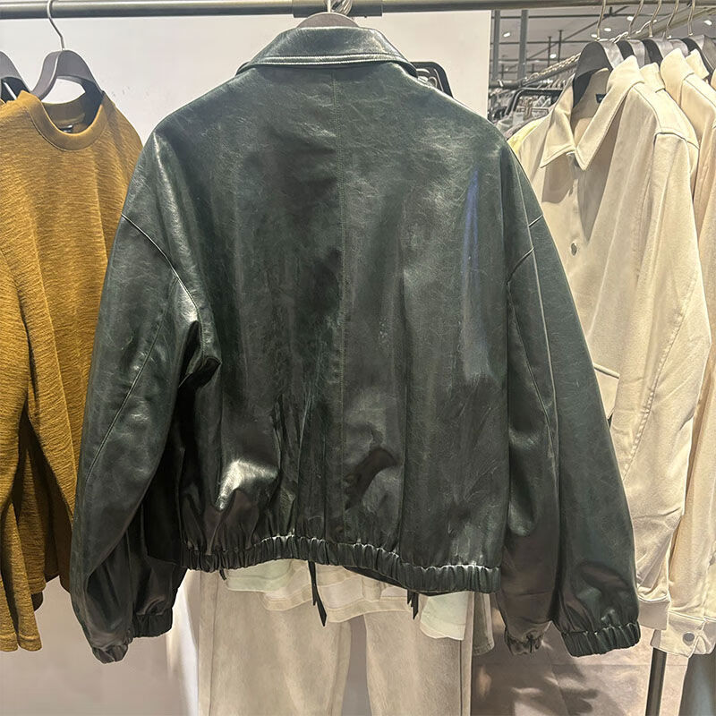 2024 Autumn New Trendy Men's Retro Versatile PU Leather Jacket UMF140040 Dark Green S S