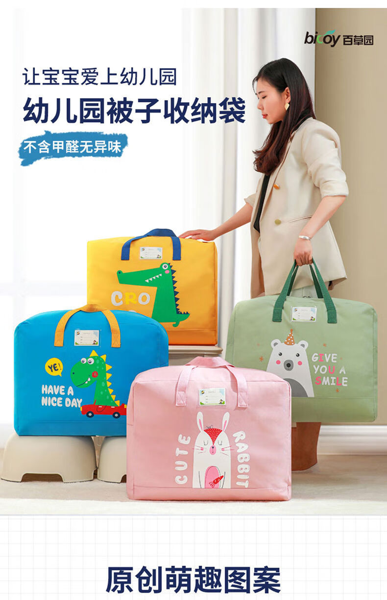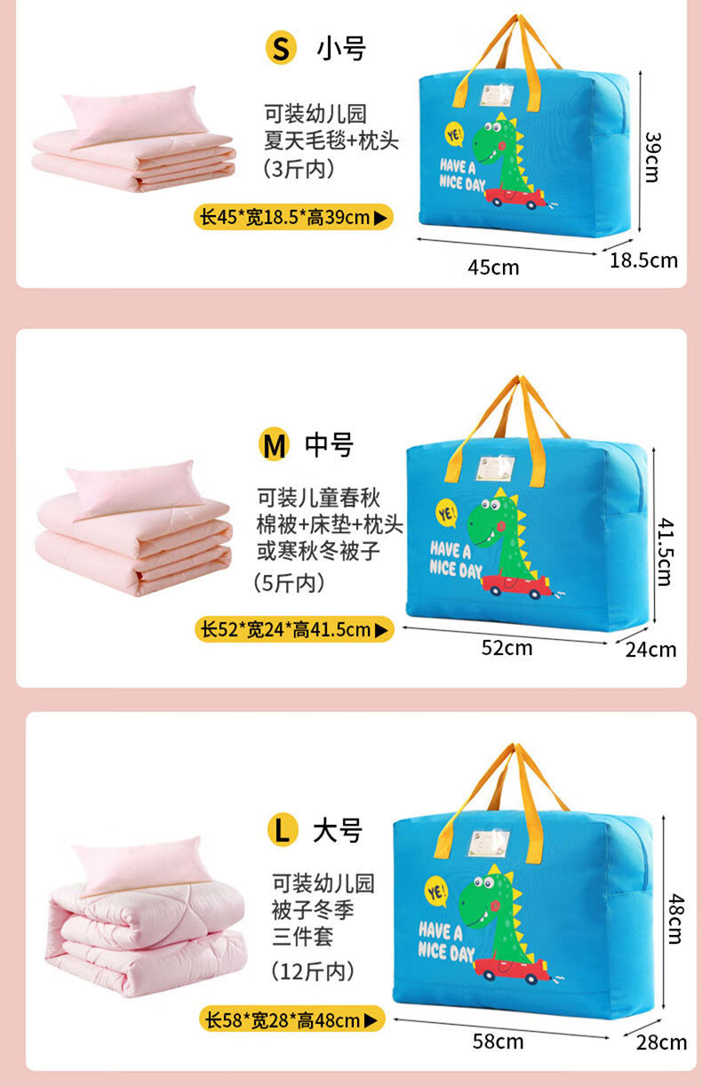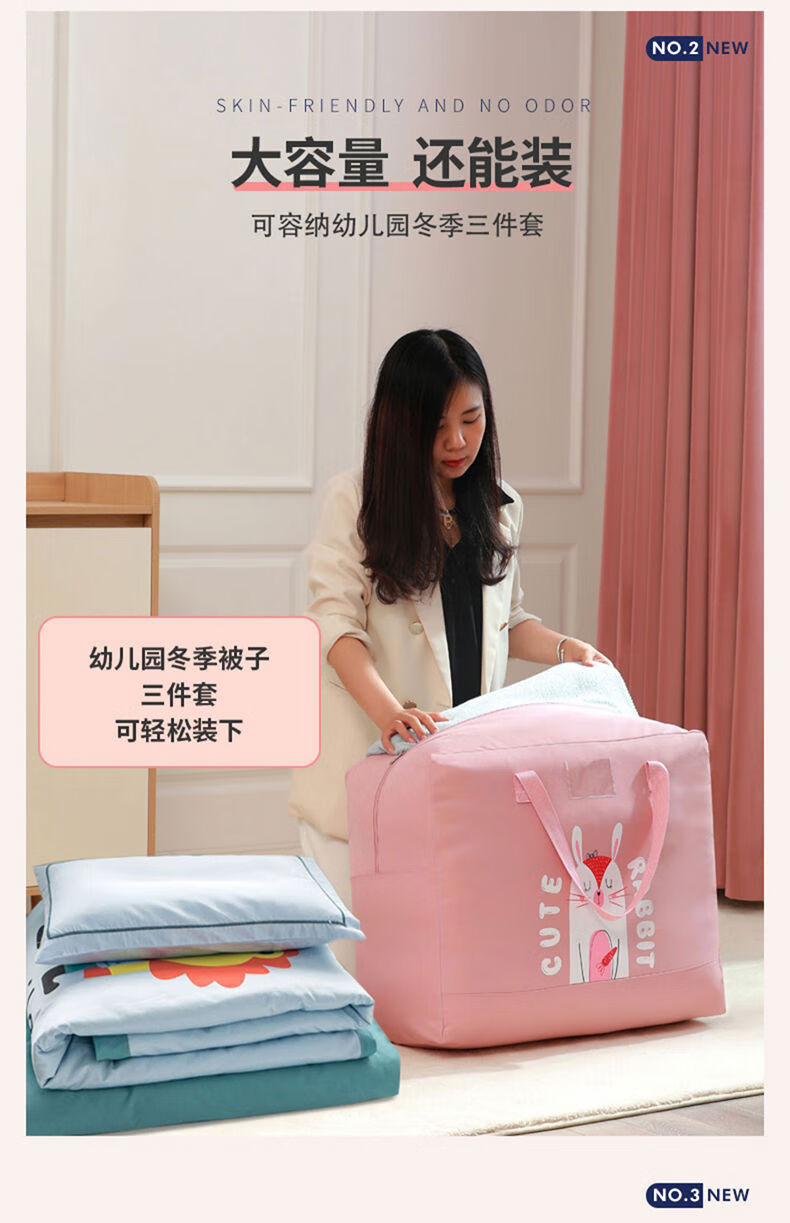 Baicaoyuan Kindergarten Quilt Storage Bag Bedding Organizer Bag Children's Quilt Clothes Moisture-Proof Bag Large Capacity S Size 45*39*18 Points 5cm Cherry Pink Cute Rabbit 5 Points 0 Upgraded Thickened Oxford Cloth