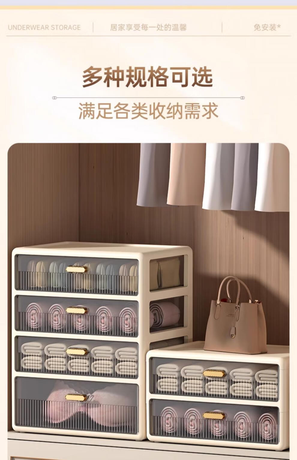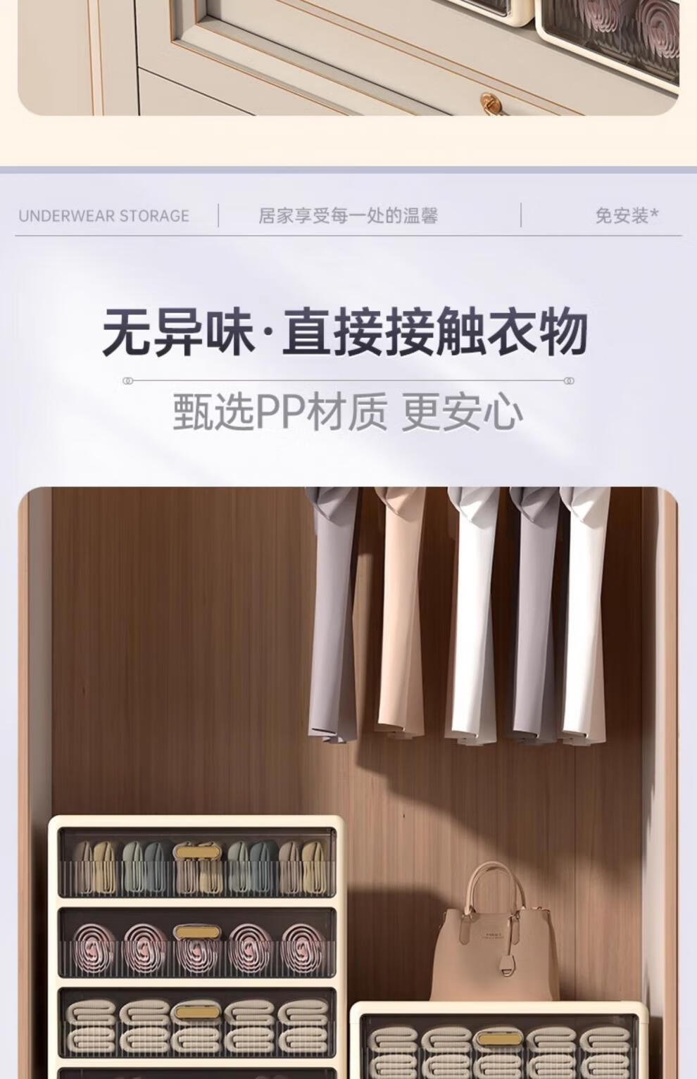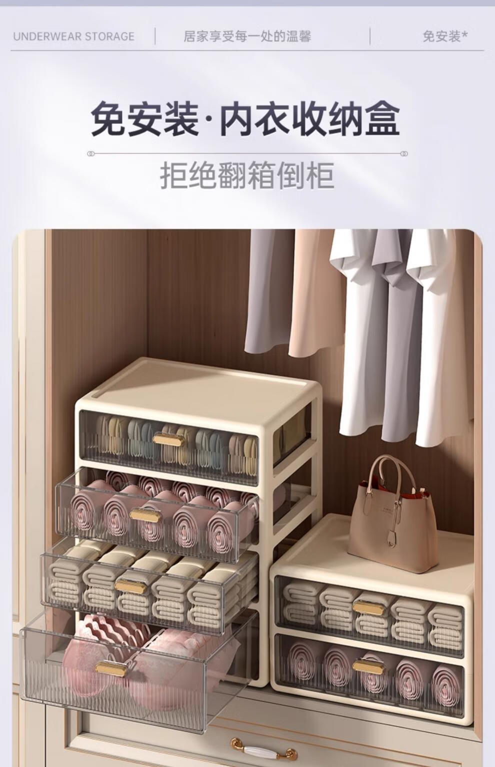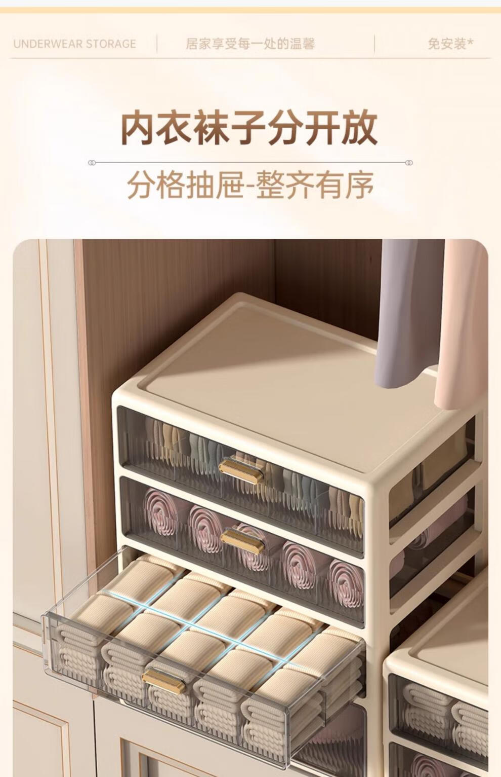 Three-in-one storage box for underwear, underwear and socks, drawer-type organizer, artifact, divided household plastic, 3-layer underwear + underwear + sock box, milk coffee color