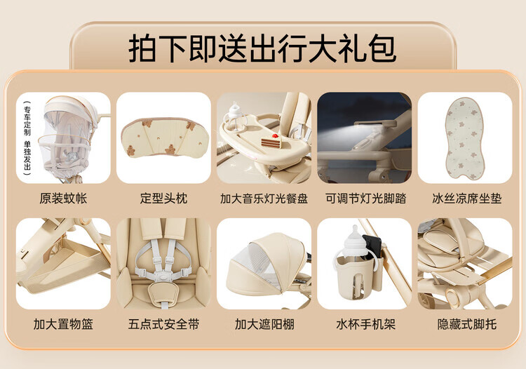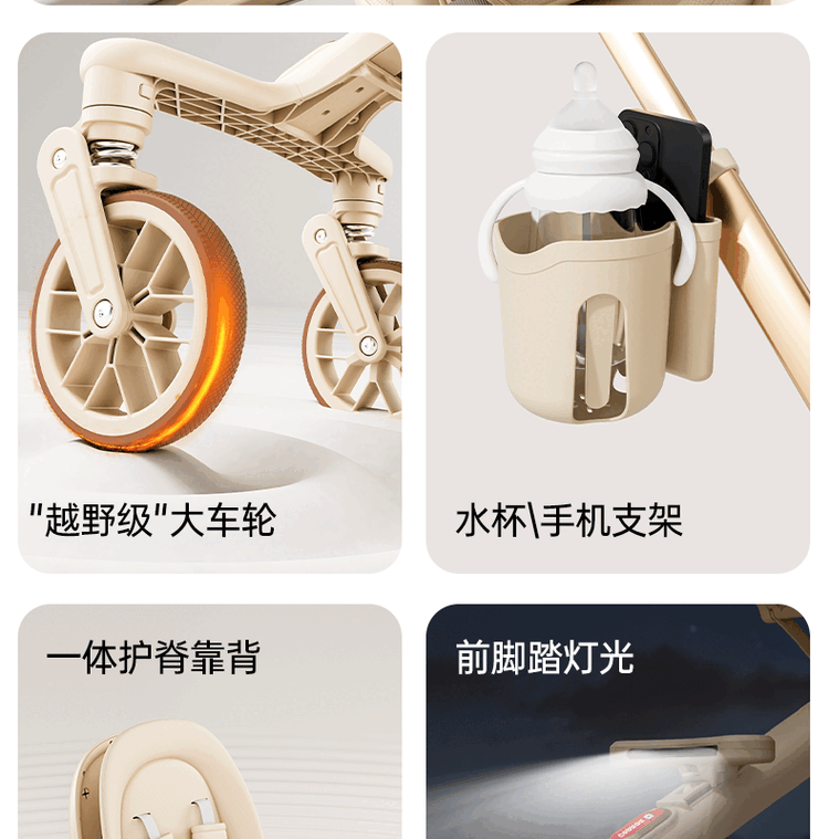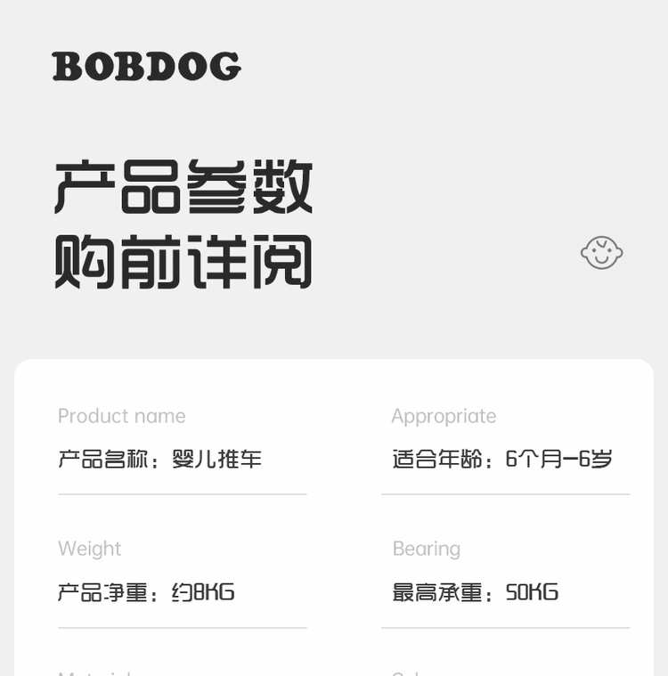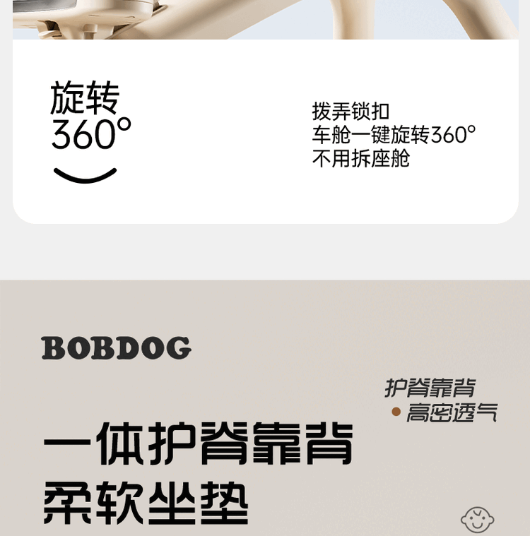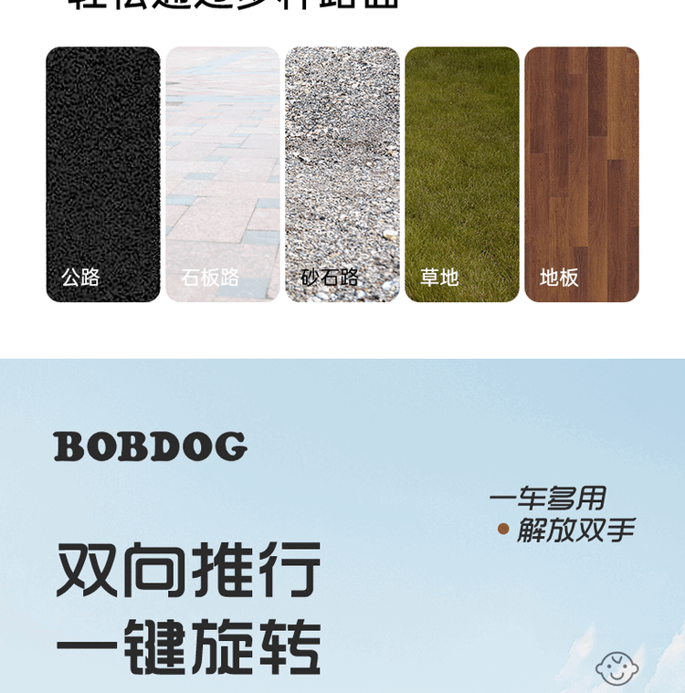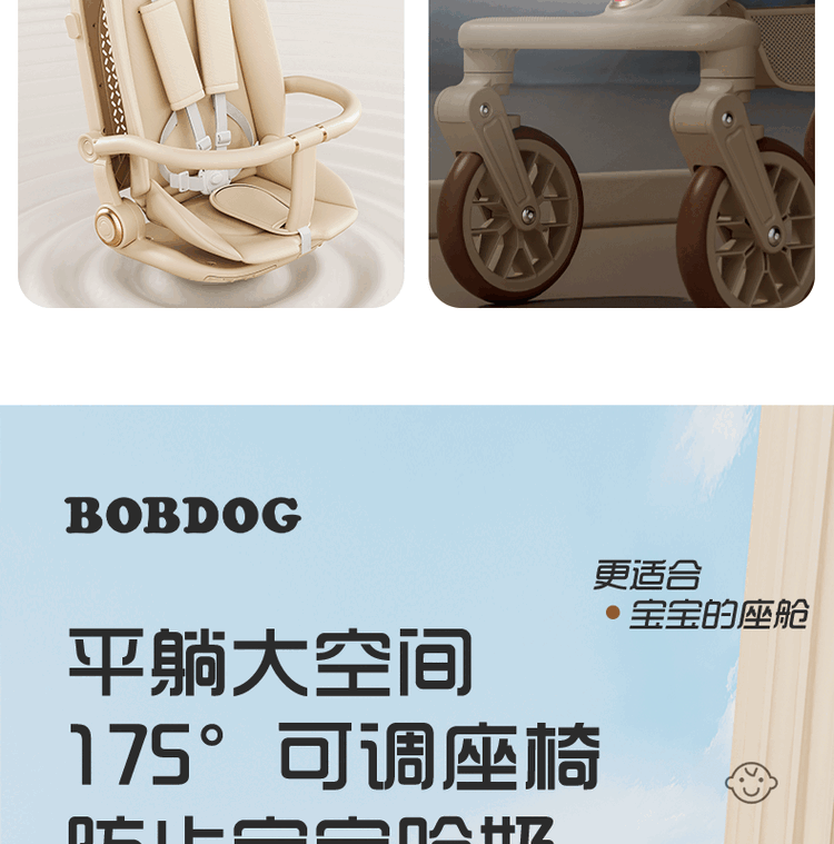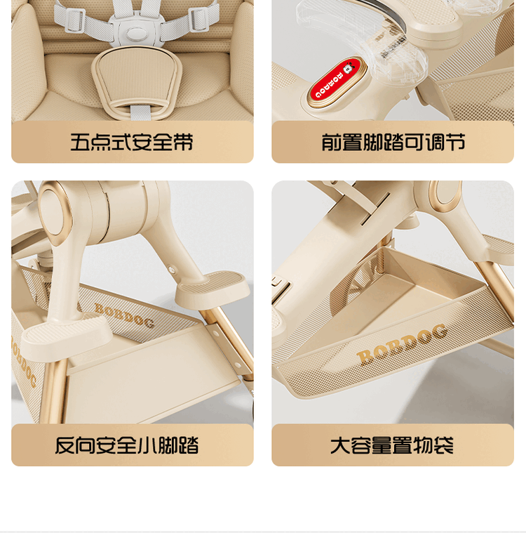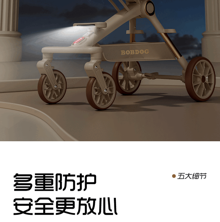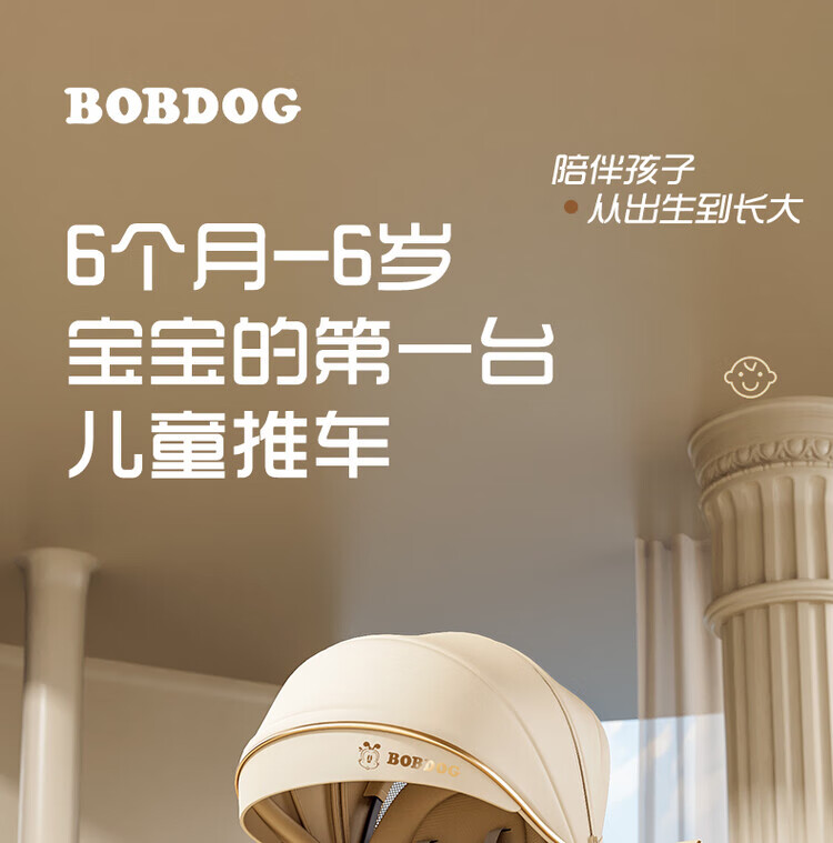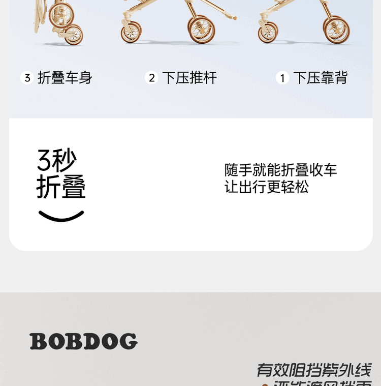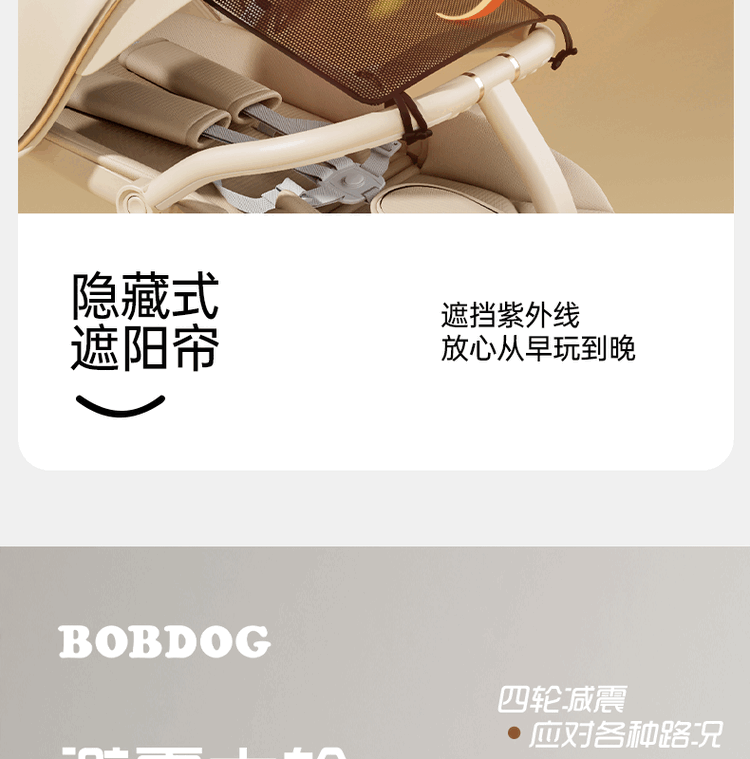 BOBDOG Baby Walking Artifact High View One-click Folding Baby Walking Two-way Four-Wheel Shock Absorbing Can Sit and Recline Stroller Official Authentic Naked Car-No Shed-No Bottom Pocket