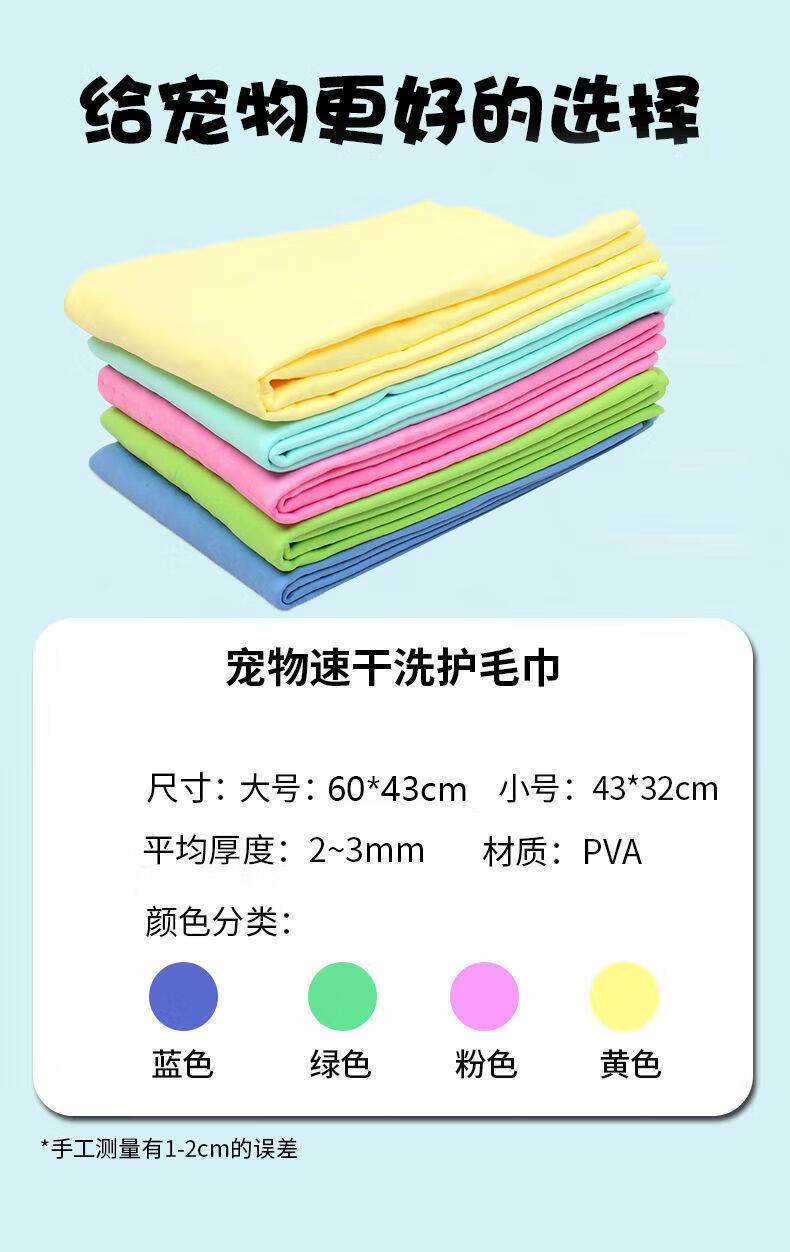Pengyi pet quick-drying deerskin absorbent towel thickened cat bath absorbent towel imitation deerskin towel does not shed hair huge thick large bag 66CM*43CM mixed color non-stick hair quick-drying type 1 pack