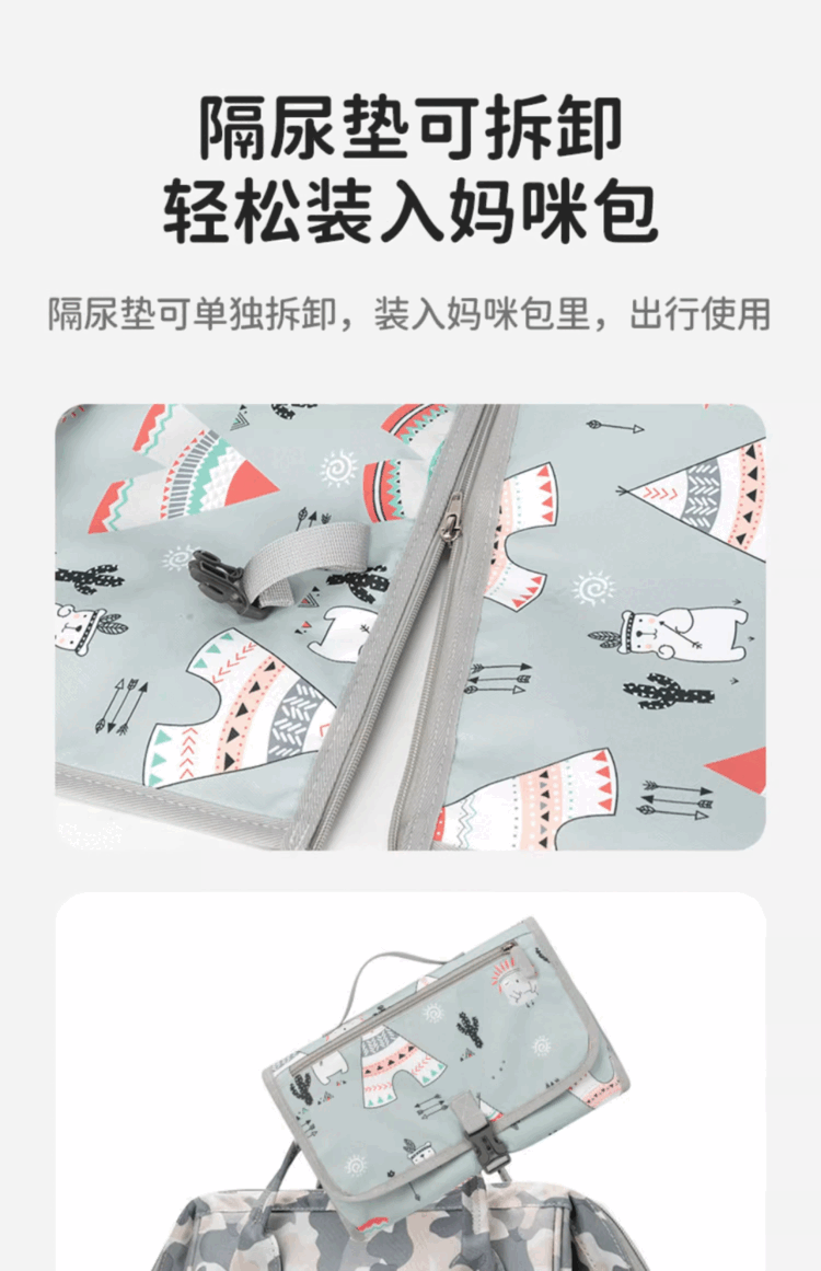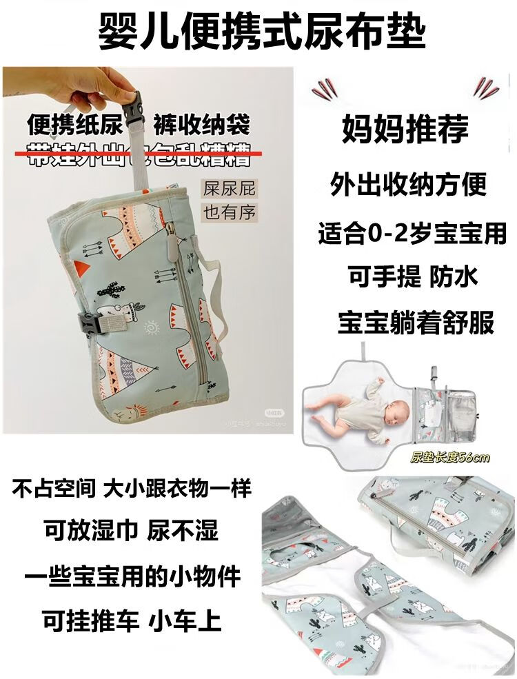Portable baby changing pad, waterproof oxford cloth urine barrier, portable tissue paper diaper storage mommy bag, gray portable baby changing pad